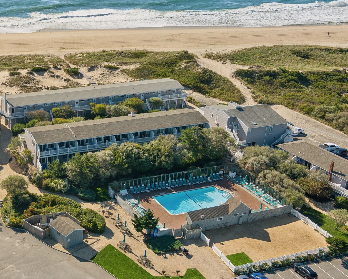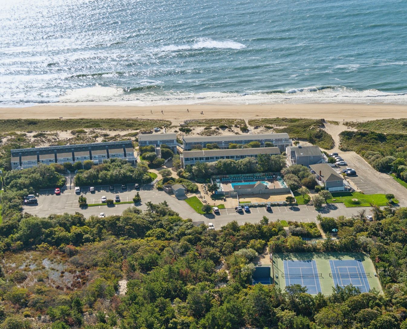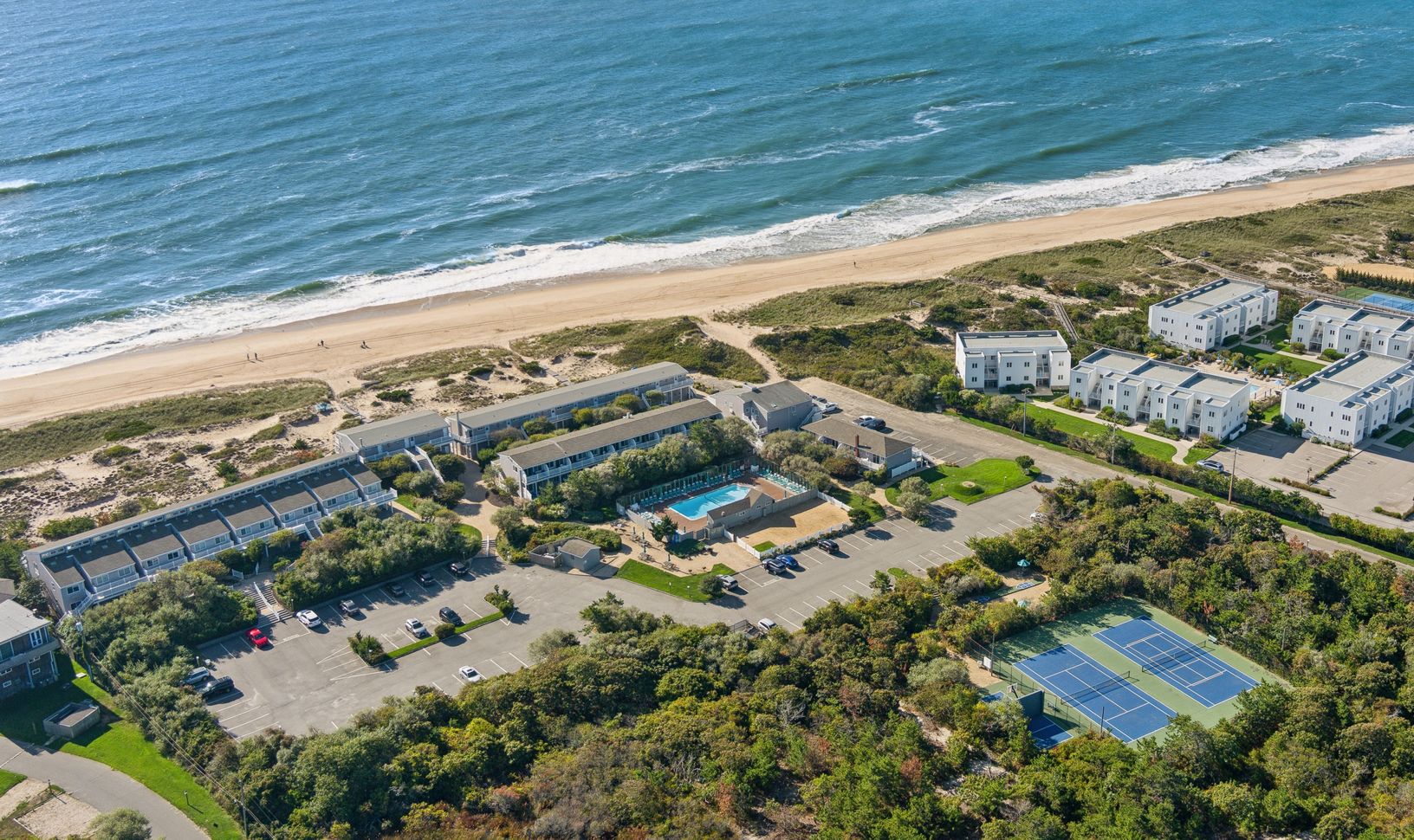 Unit # 68 A rare opportunity to purchase a second story, year round, 1 bedroom, 1 bath air-conditioned co-op unit with private balcony that enjoys a view of the ocean waves as they break along a pristine sandy beach of the Amagansett Dunes. When not pampered with chaise lounges, towels & umbrella cabana service either surf-side or heated pool-side; take in a work-out on one of the lighted two community tennis courts, shoot some hoops on th