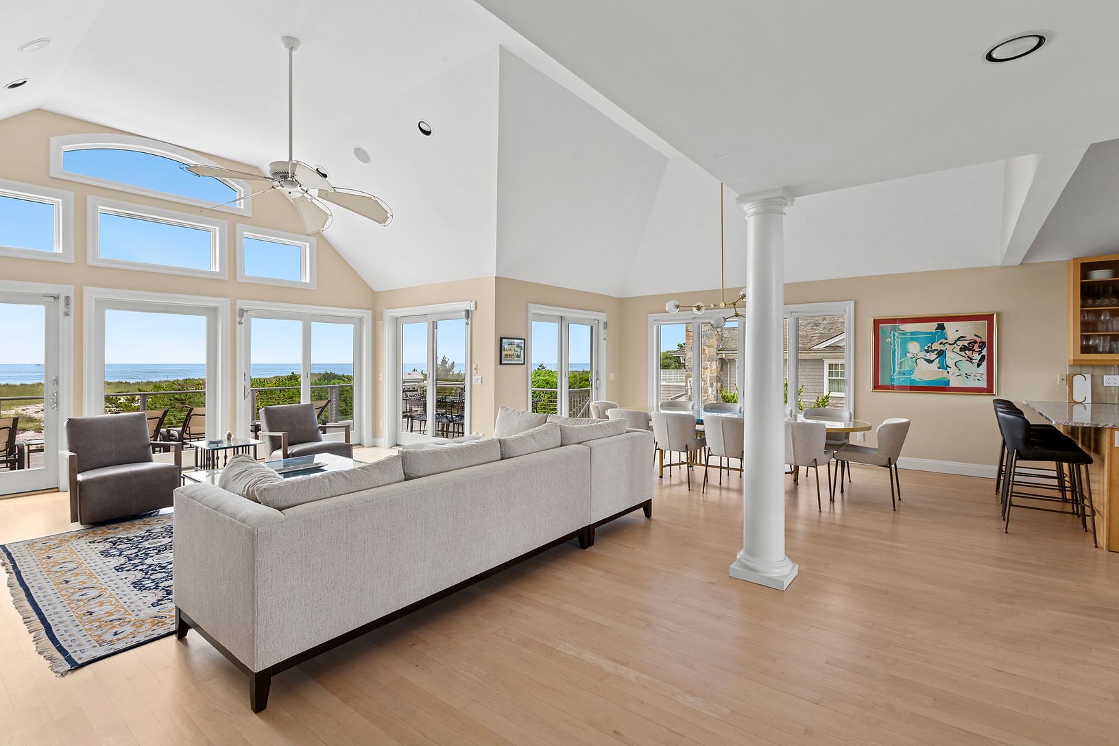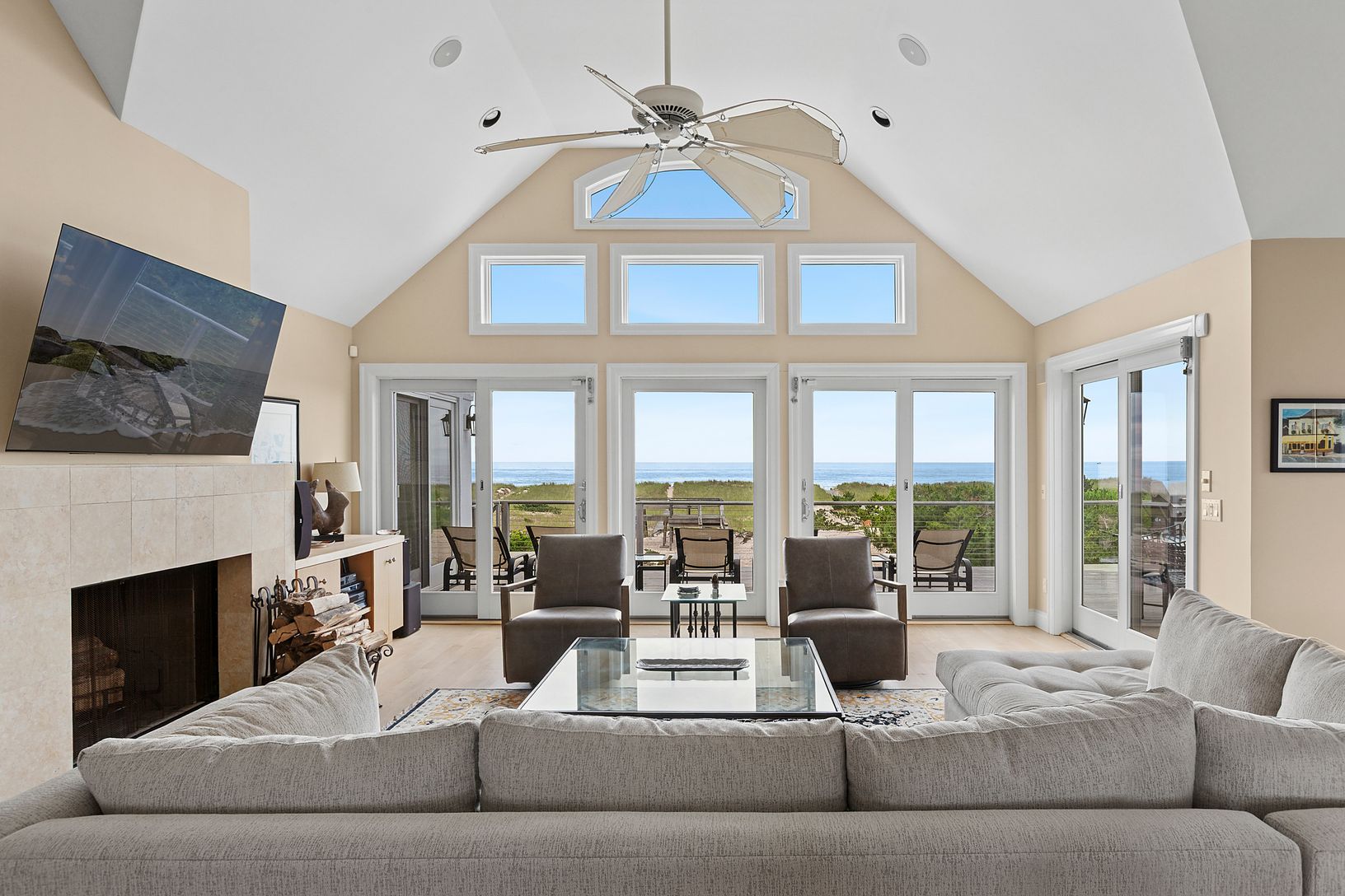 Introducing a Coastal Paradise! Nestled in the coveted Village of Westhampton Beach, this stunning oceanfront gem on Dune Road between the bridges awaits you! Set on approx. 100 feet of direct oceanfront, this over 4,000 sq ft stunner offers luxury, privacy, and unbeatable views. The first floor features four spacious bedrooms, three full baths, an expansive family room, and seamless flow to the Brazilian mahogany deck, where a heated gunite p