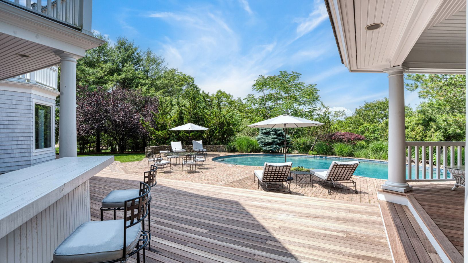 Ensure your Hamptons vacation oozes style and class with Little Peconic Bayview, perched atop one of the highest elevations in Southampton. This stunning 4,700 square foot home is centered around a grand foyer, surrounded by large panel windows and an abundance of light. The beautiful formal dining room leads you ou