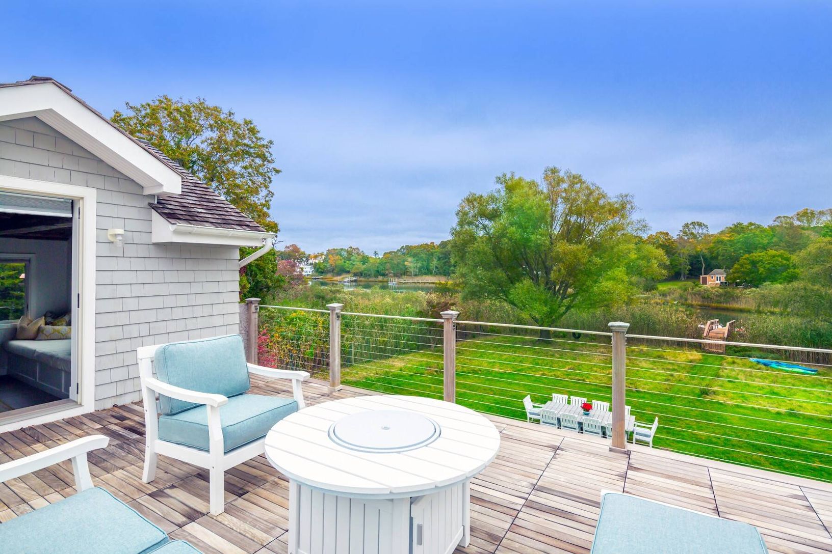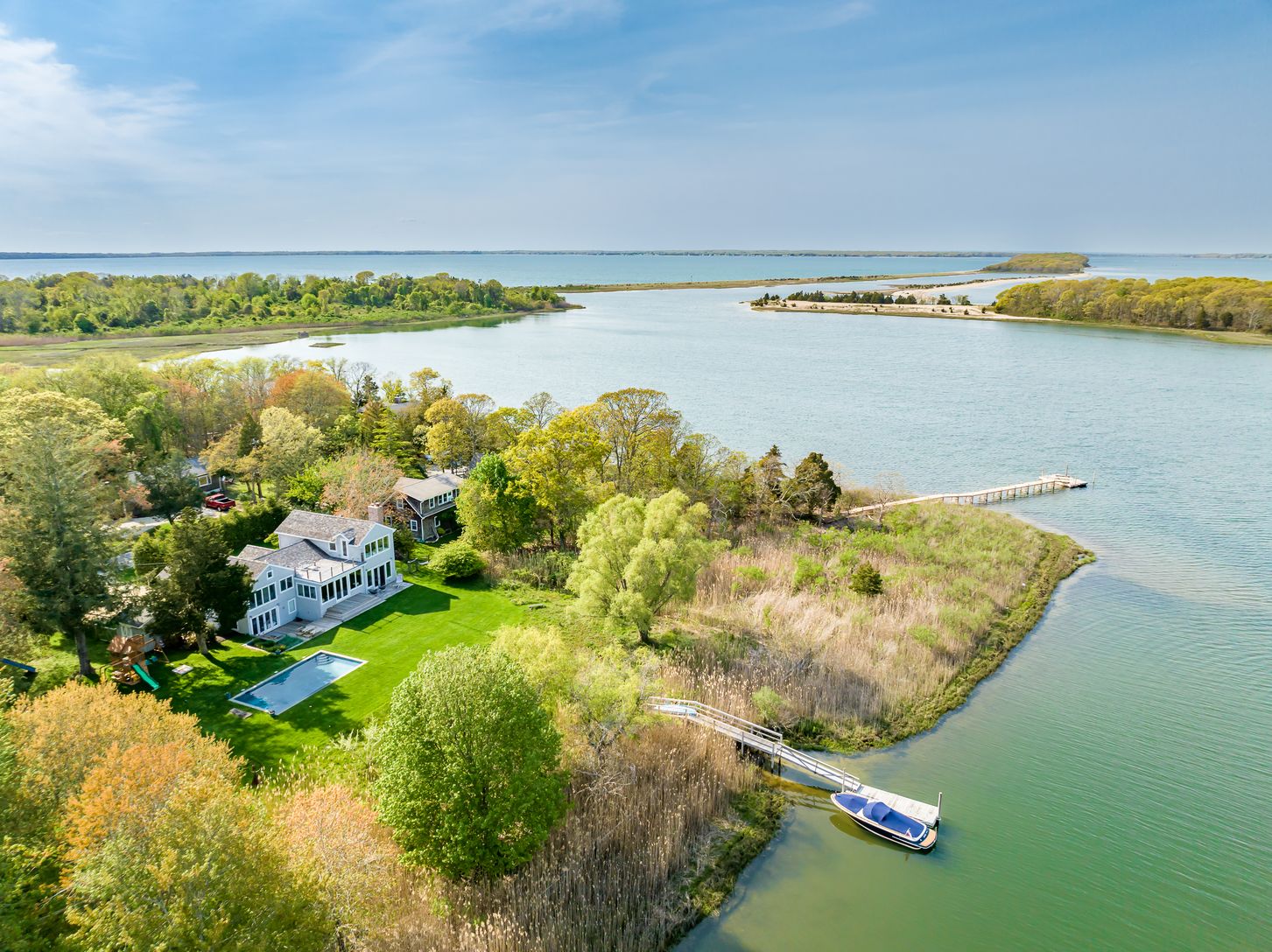 Enjoy Sag Harbor waterfront living in this recently updated compound on and generous 6 bedroom home with private dock. This property sits on Noyack Bay with access to open water, Several renovations have modernized this recently purchased two lot offering on a total of 3.5 acres of secluded waterfront property. A rolling yard of pastoral acreage, salt water heated pool and a two private boat docks on the lot of the main house and additional do