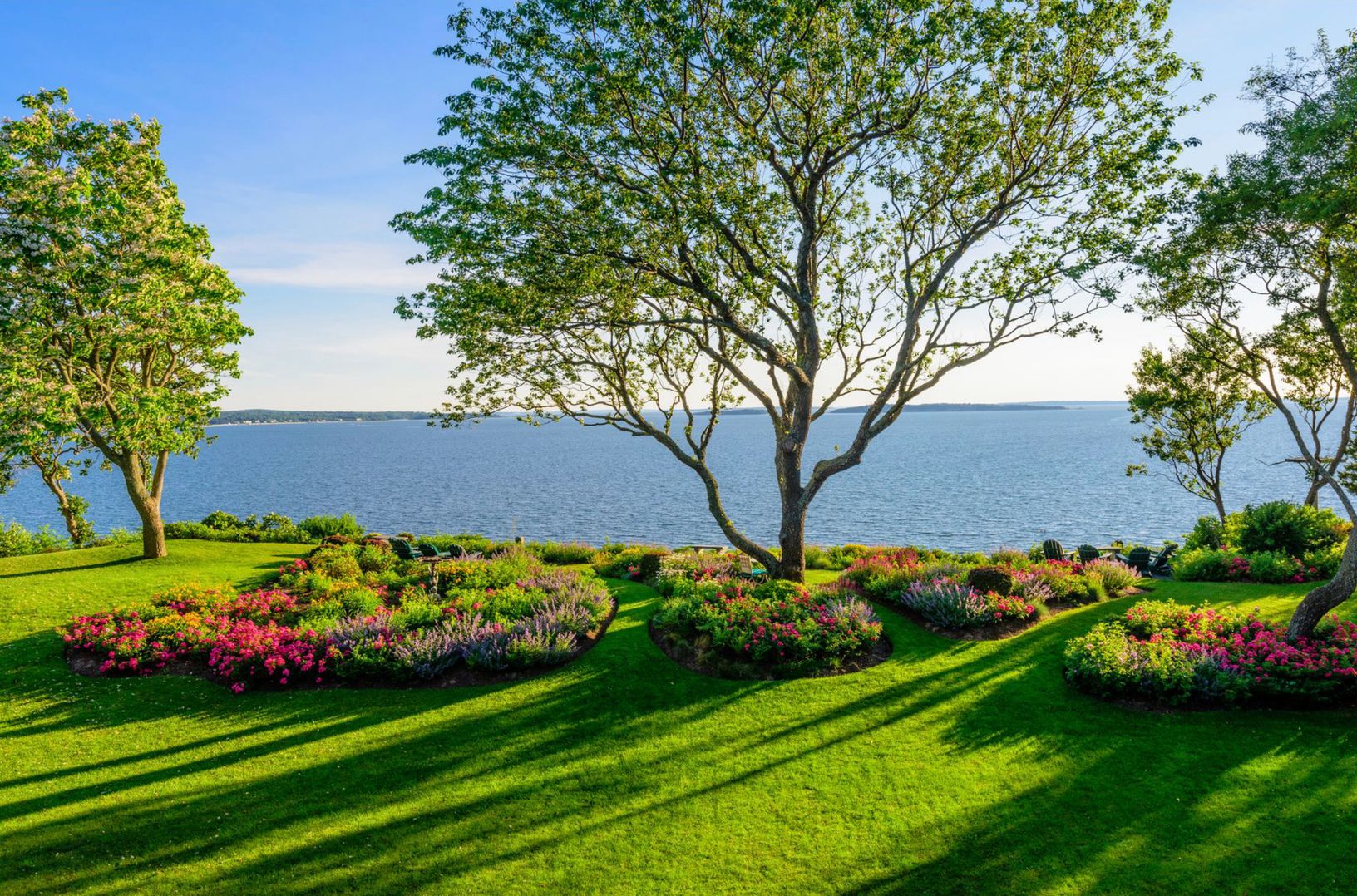 This exquisite custom built waterfront home is located in the coveted waterfront enclave of West Banks, North Haven and is situated on almost 3 acres of magnificently landscaped grounds with private gardens, panoramic water views and spectacular sunsets. The main floor of this 8300+/- sq. ft. residence features a gracious 30ft living room with wood burning fireplace and water views,, formal dining room, chef's eat-in kitchen, family room with