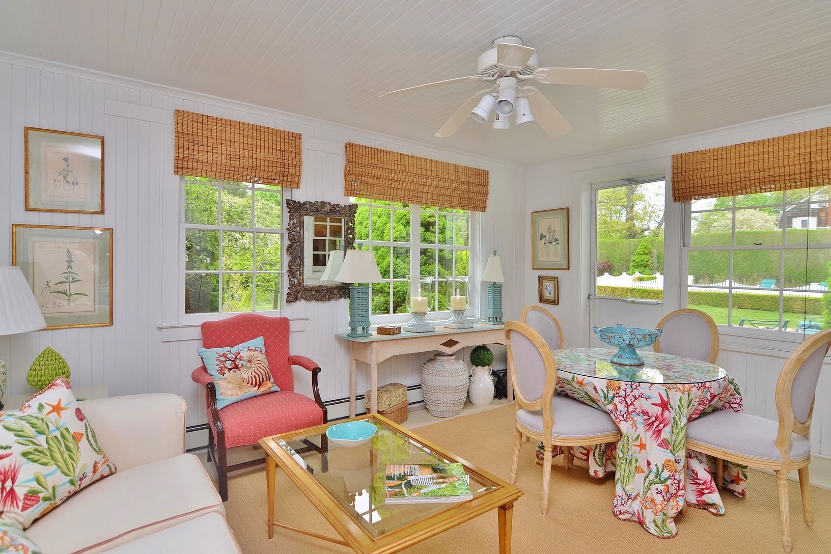 Behind the hedges find this quiet and private Westhampton Beach village home. Traditional charm and graciousness throughout. Newly redone chef's kitchen, formal dining room, cozy living room with fireplace, den with fireplace and 4 Bedrooms, 3 Baths. Beautiful four seasons sun room with views of the lush and tranquil landscaping, stone patio and gunite pool. A minute to main street with its resort shops, restaurants and cafes, the perform