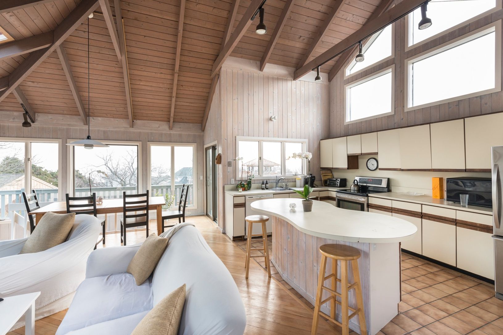 Nestled in Hither Hills with ocean views, this four bedroom, two and one-half bath home is minutes to the beach. Newly renovated, this home has a gourmet kitchen, soon to come central air on the top floor, fireplace, spacious deck and lovely grounds. Minutes from Montauk Village for shopping and dining.