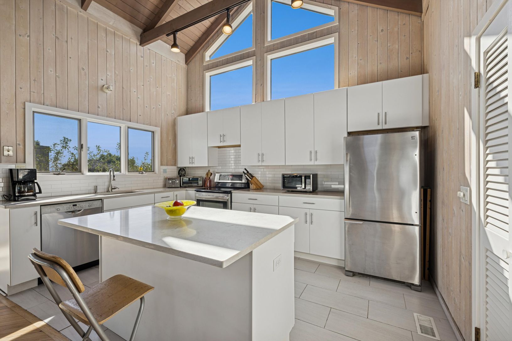 Catch ocean views from this great contemporary in Hither Hills, one of Montauk's most desirable neighborhoods. Minutes to the private ocean access from this great beach house with four bedrooms, two and a half baths, and great room. Newly updated kitchen and bathrooms makes this a must see home. Outdoor shower, CAC, and great decking. A real summer treasure.
