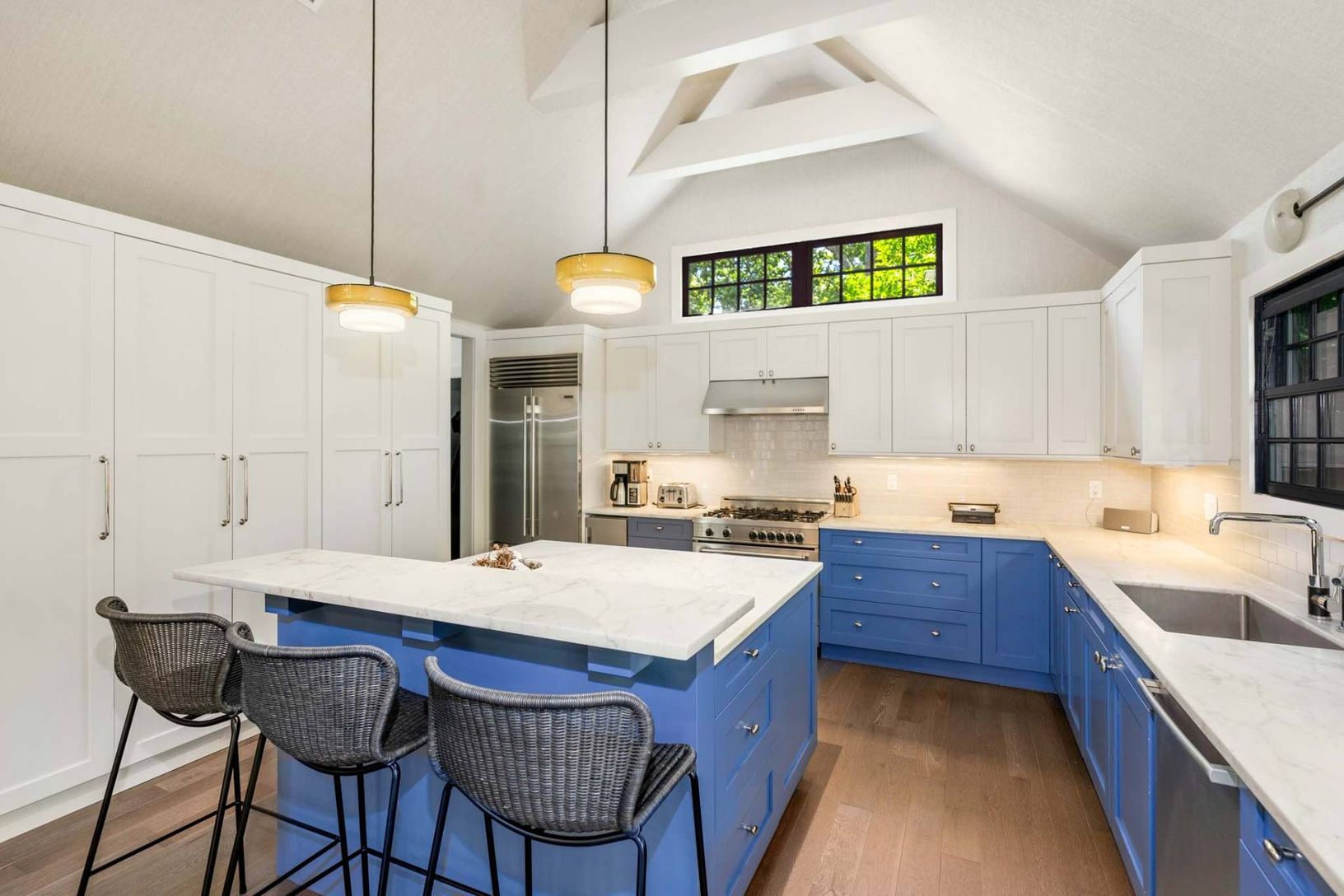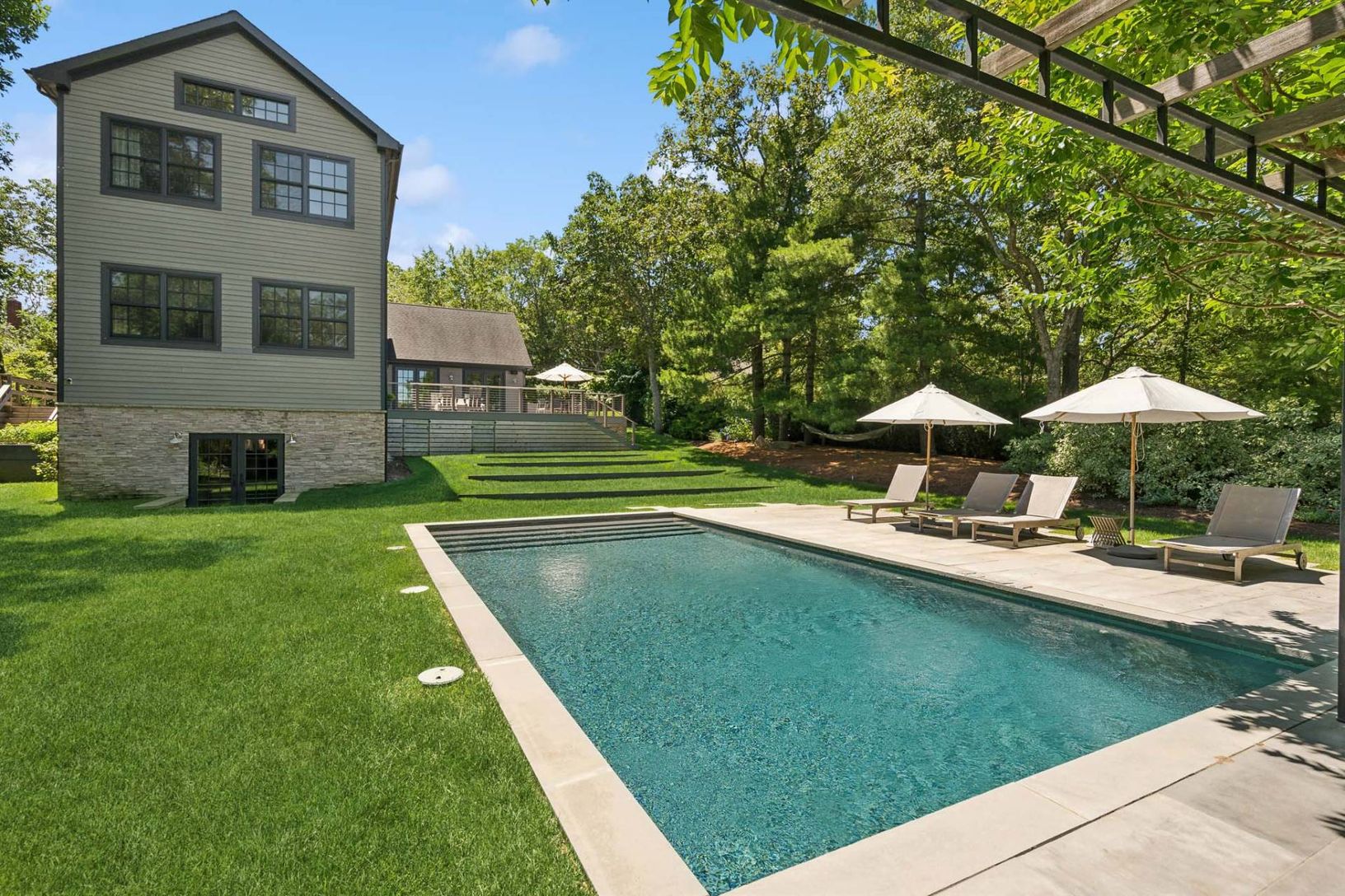 Tucked away on a little-traveled street at one of the highest points in the Village of Sag Harbor, but very close to the Village, this chic and private home feels brand new in every way. Situated on .57 acre with 4 bedrooms and 5.5 baths in 5,600+/- sq. ft. of space, with a heated gunite pool, pool house and outdoor kitchen with a pizza oven, it's perfect for a peaceful getaway or entertaining in style or gathering with your friends and family