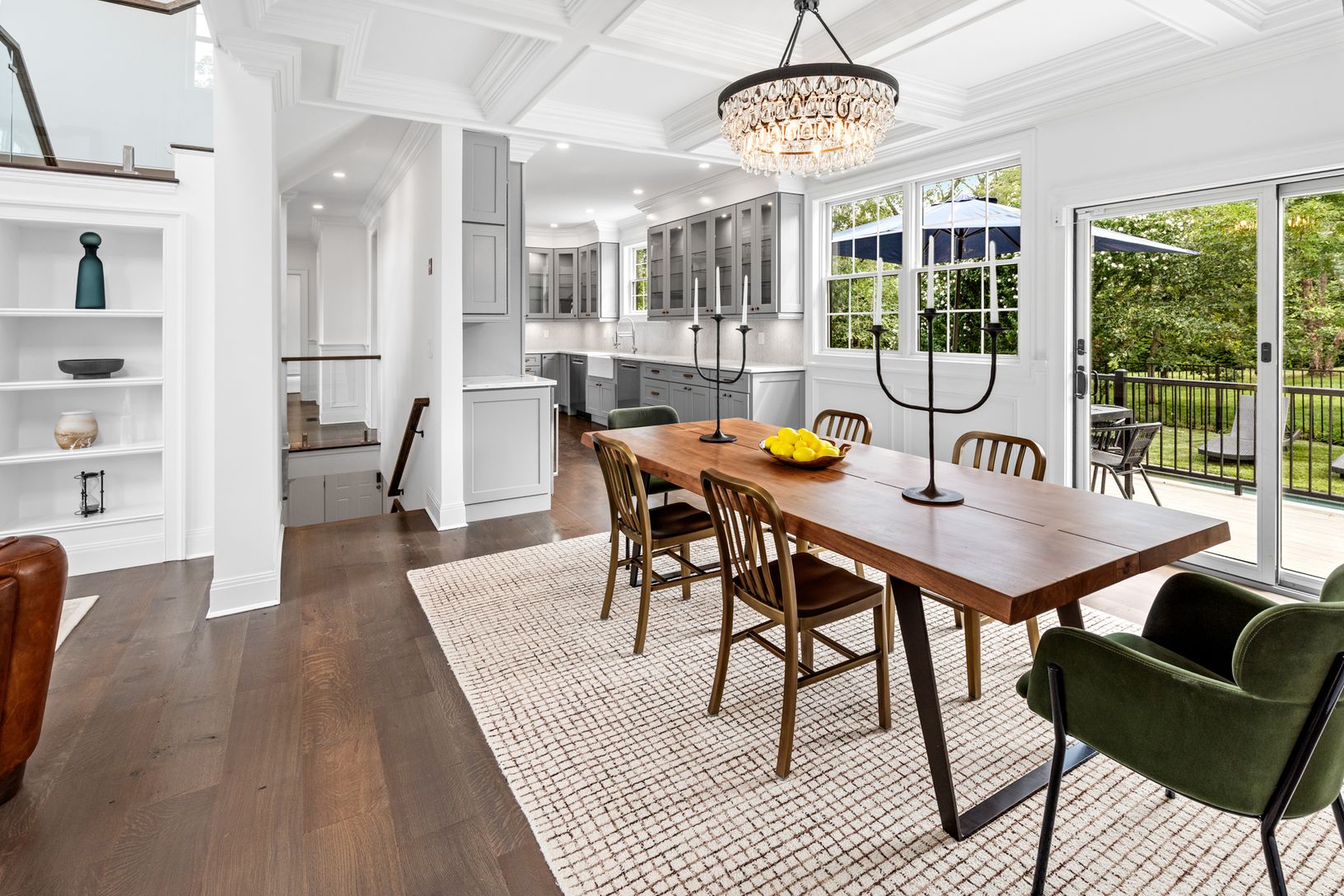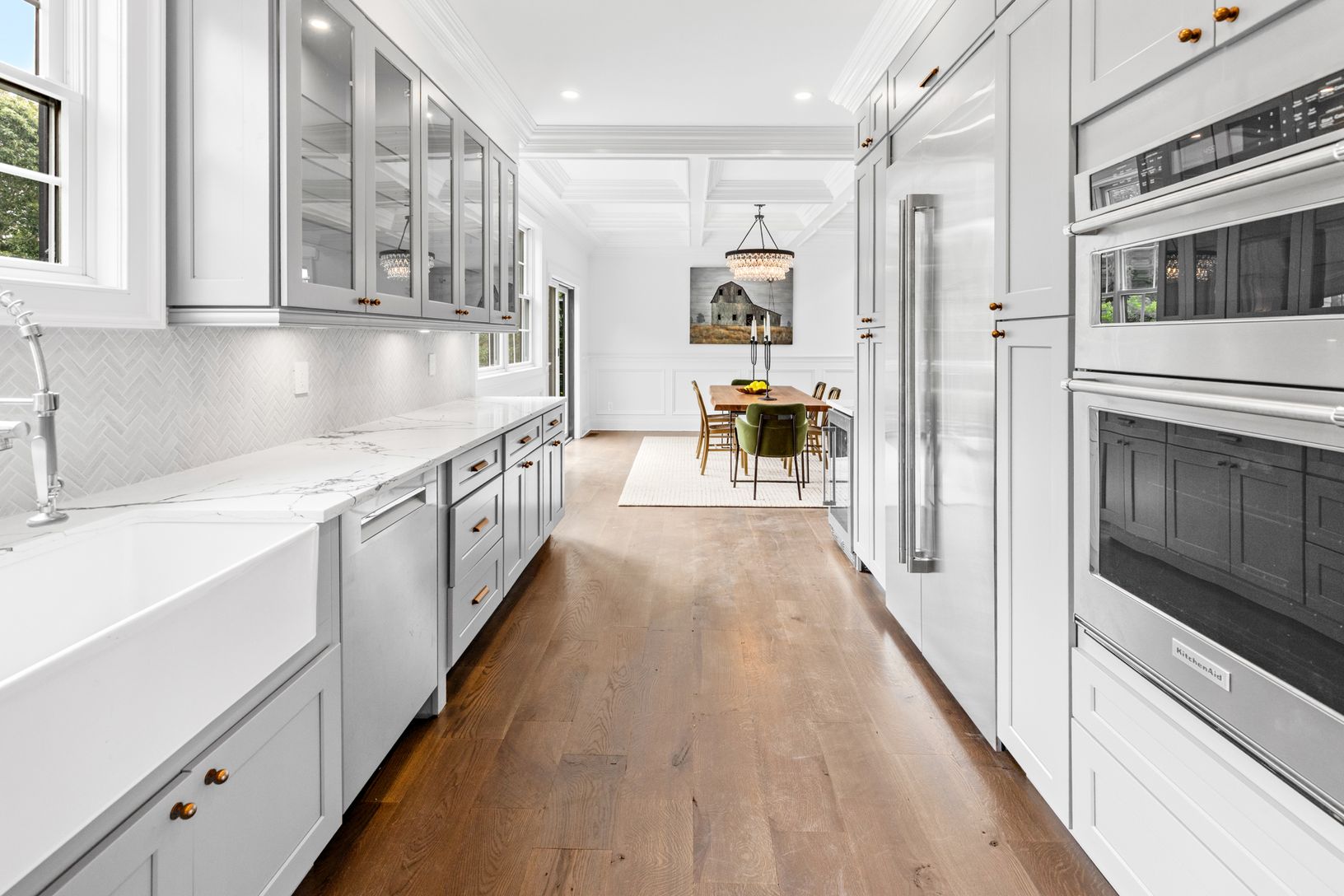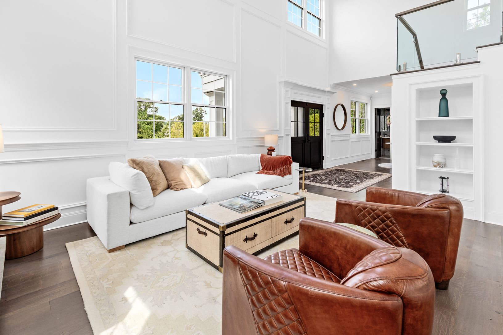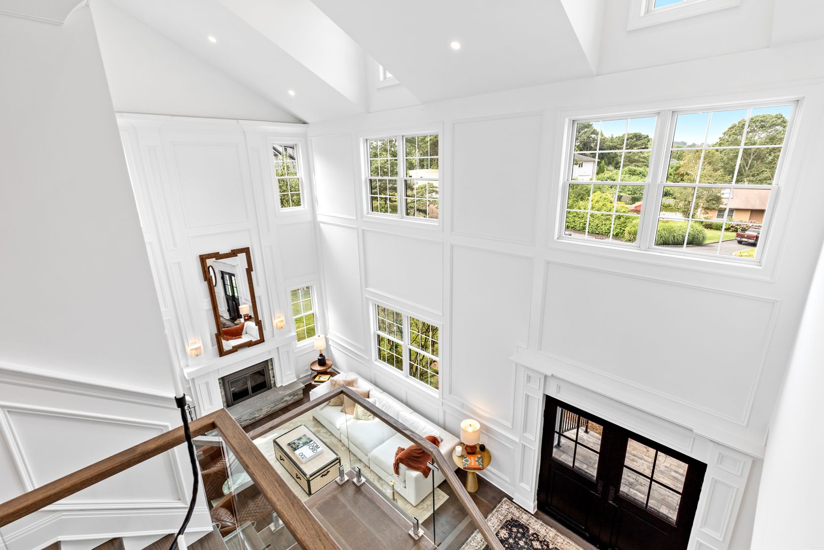 From the moment you enter, you’re greeted by soaring ceilings, wide-plank hardwood floors, and glass that fill the h