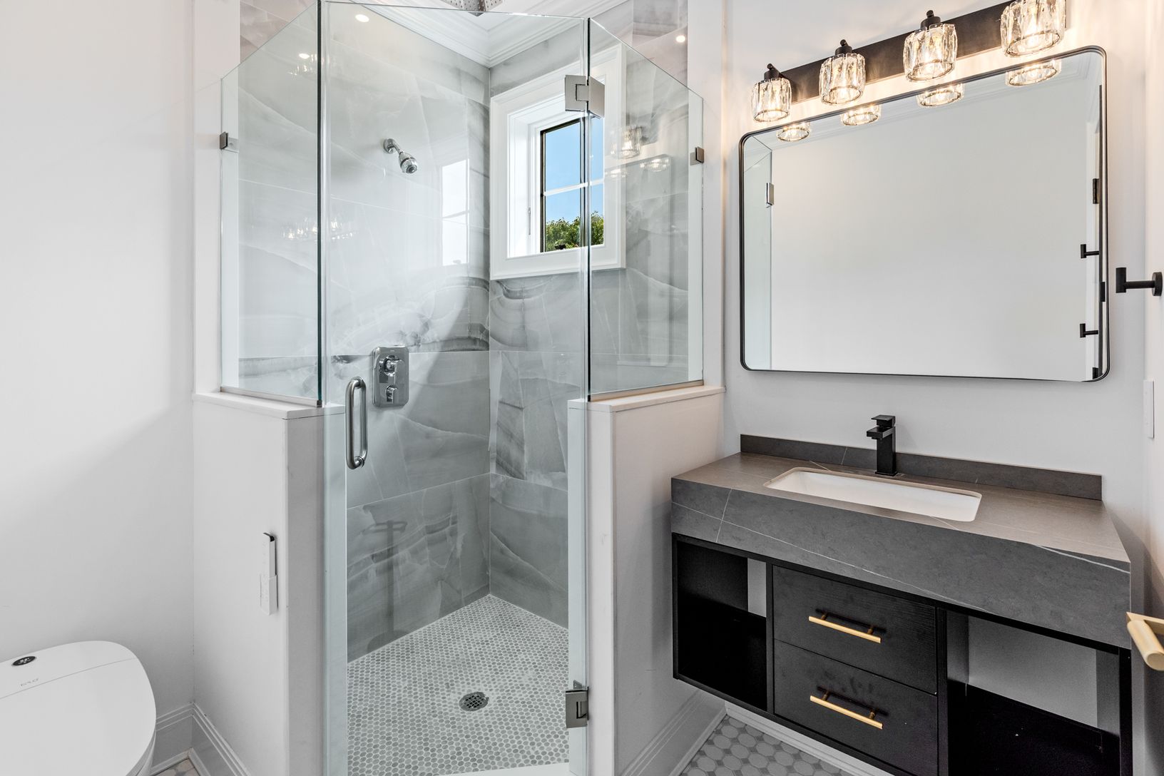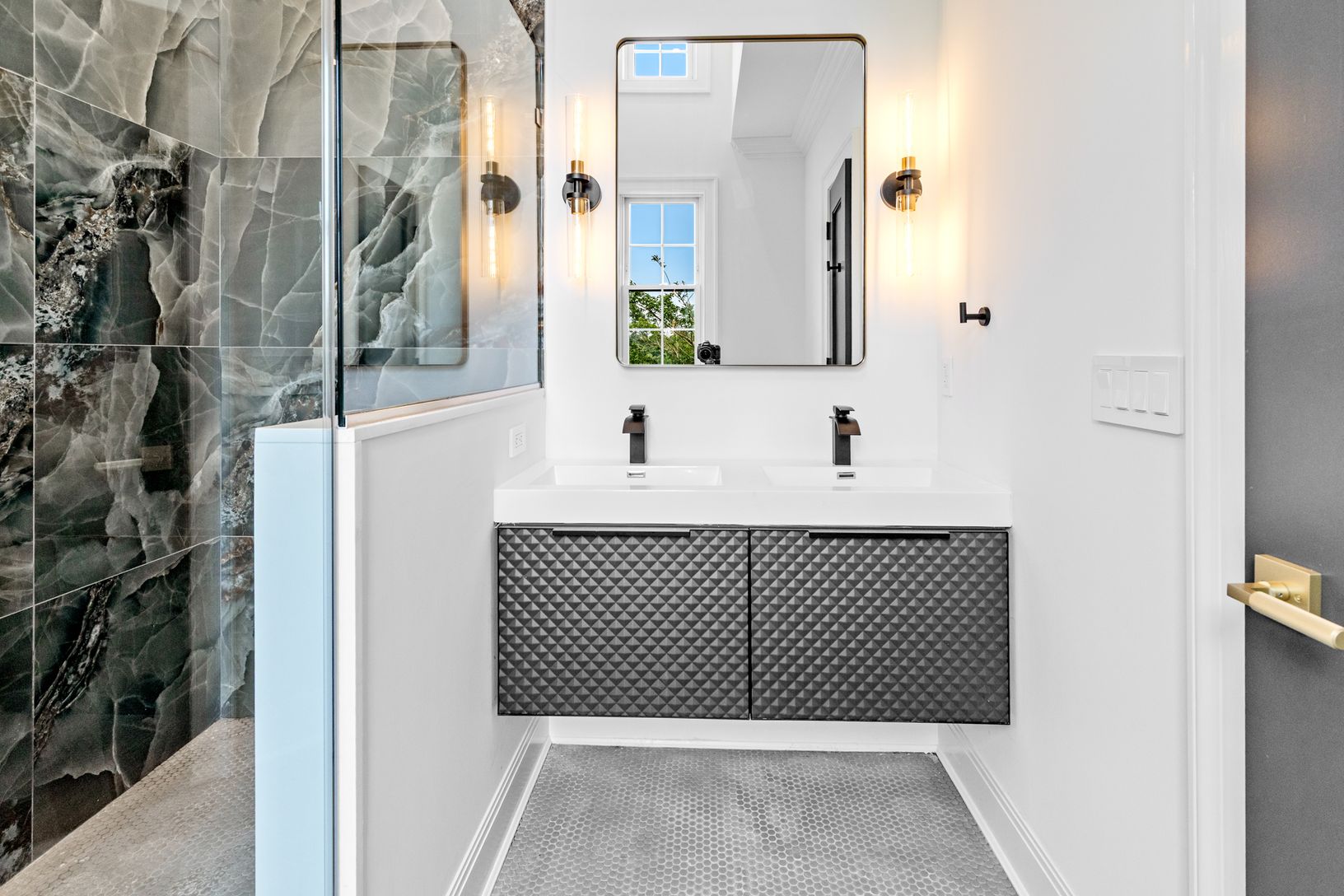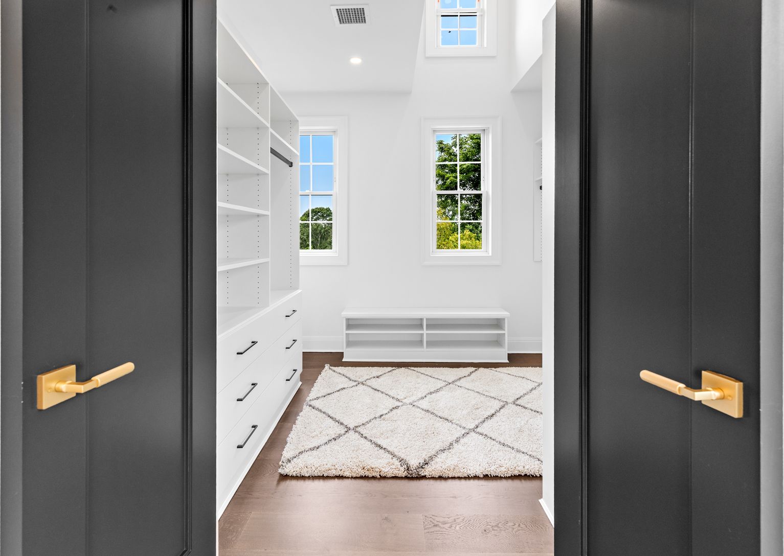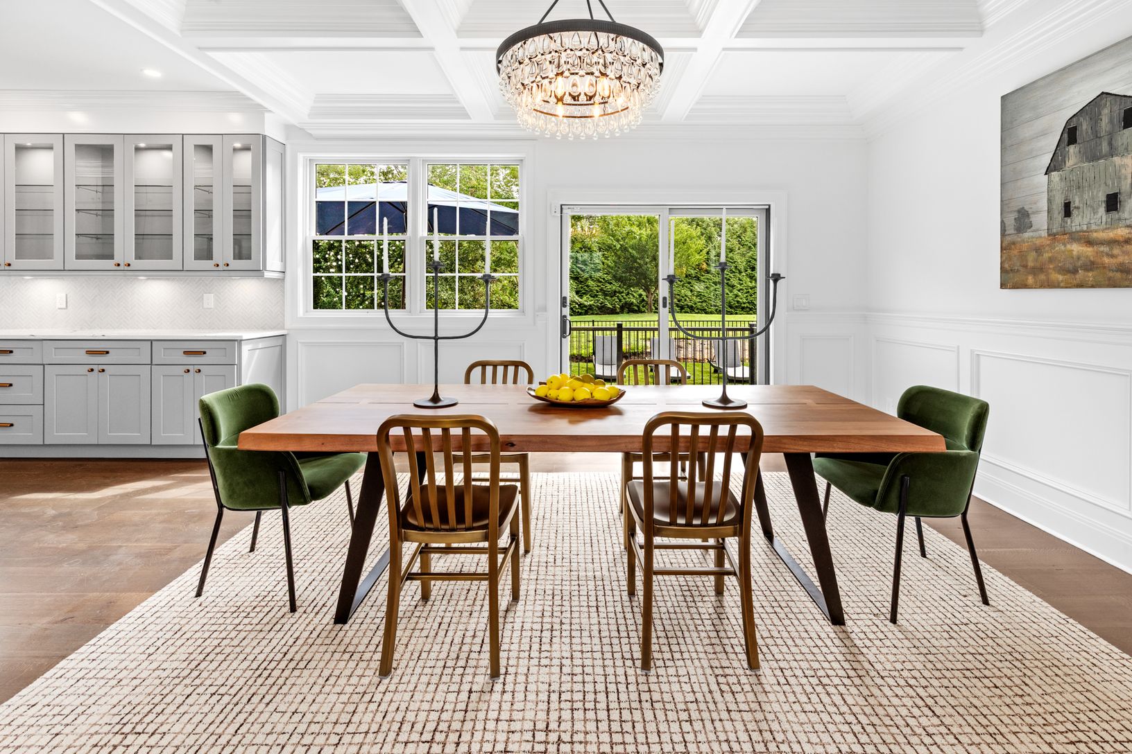 From the moment you enter, you’re greeted by soaring ceilings, wide-plank hardwood floors, and glass that fill the h