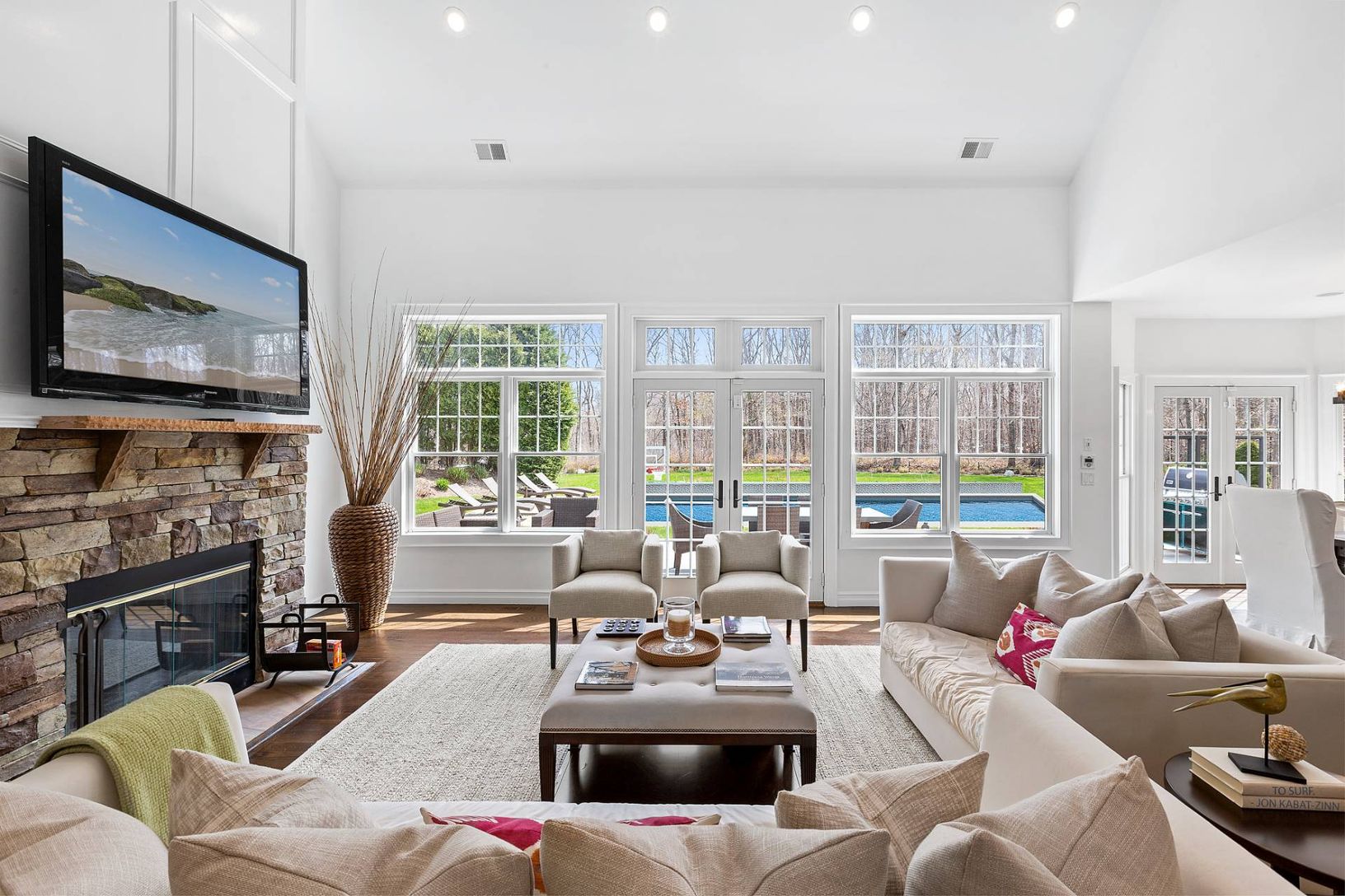 Located on a quiet street amongst beautiful neighboring homes, this fabulous propoerty has it all. Enter from the lovely front porch into a double height entryway. To the left is a billiard/TV room and to the right is a large dining room off the kitchen, In front of you is a great room with a fireplace and high ceilings that looks over the expansive backyard. To the left is a spectacular primary bedroom with a stunning bath. To the right is a