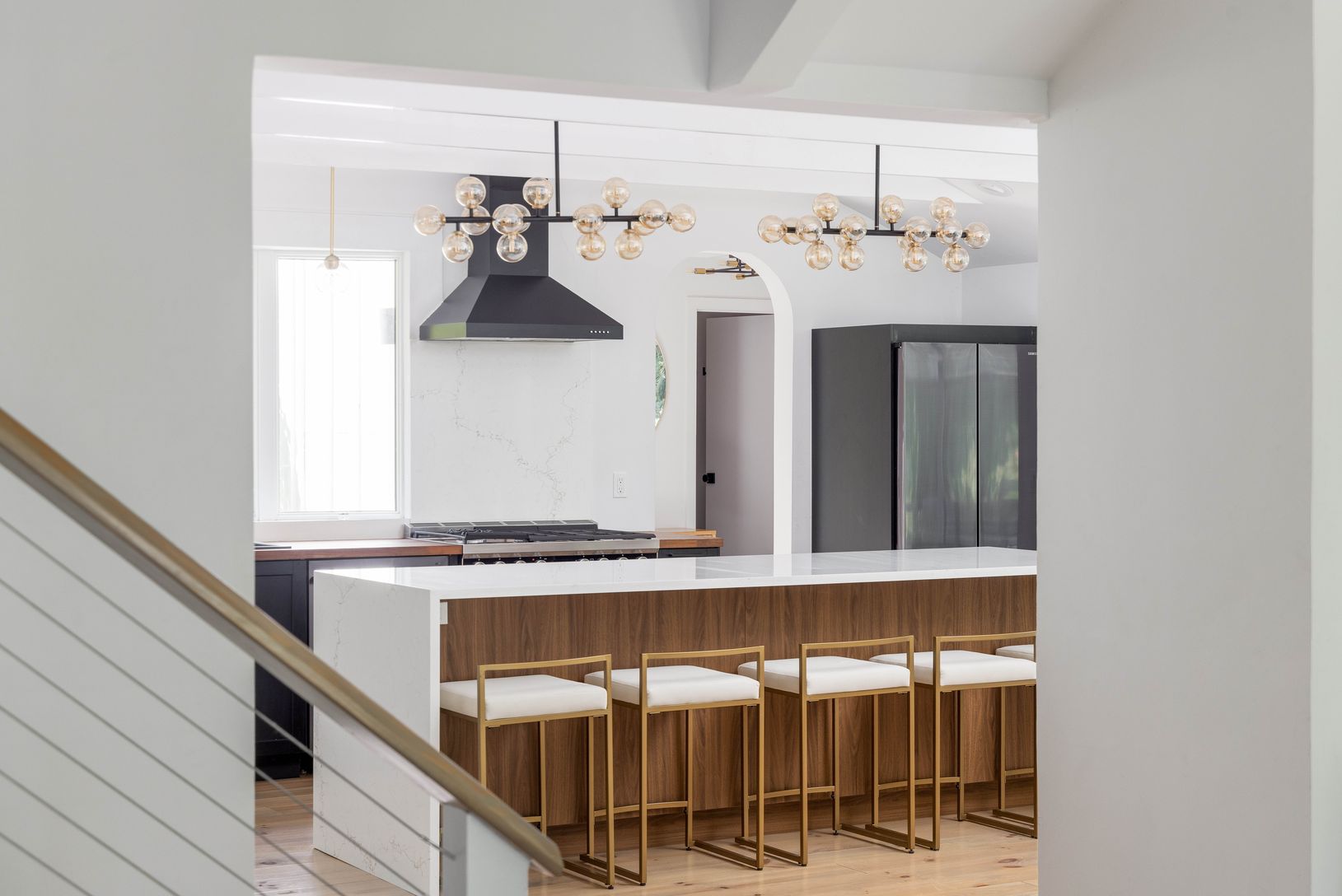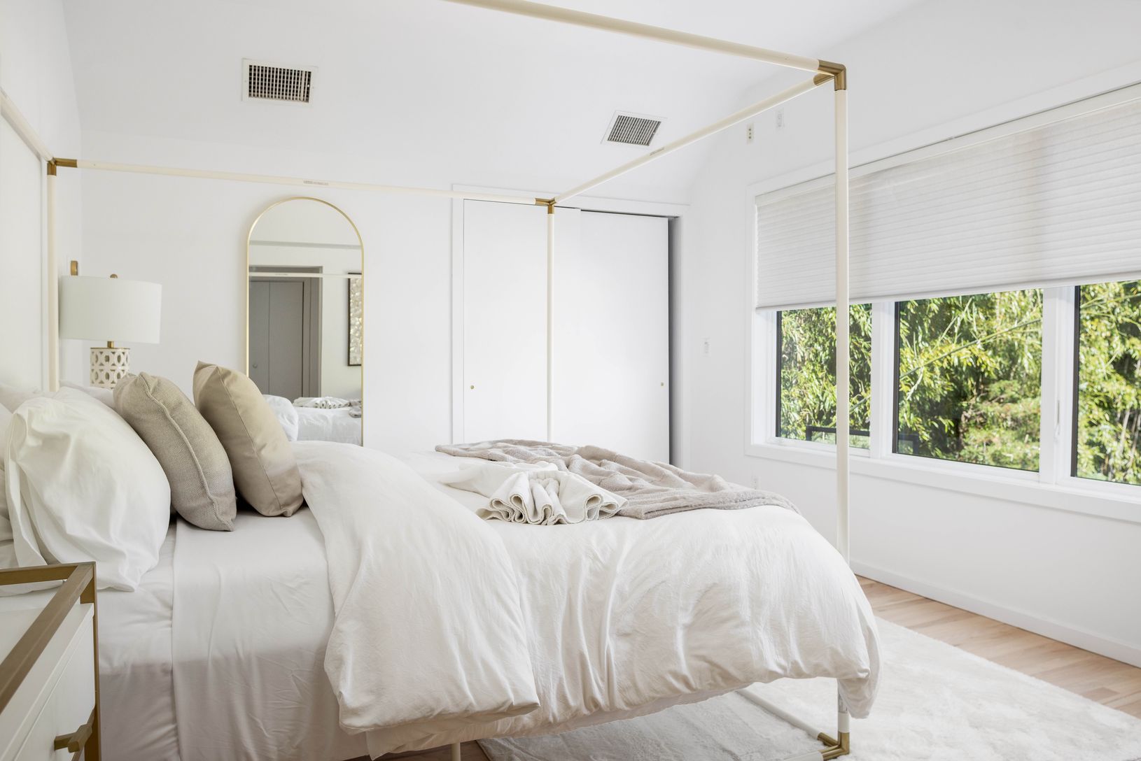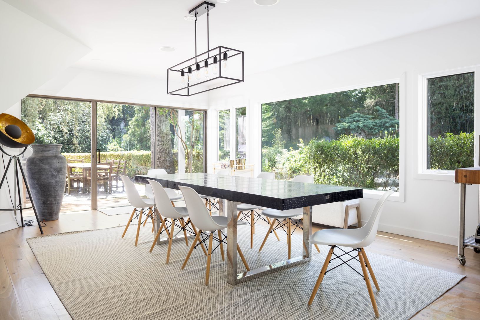Inside, the vaulted great room opens to a wall of glass framing sweeping bay views, while the modern kitchen connects seamlessly to multiple dining and lounge areas. Highlights include a waterfall island, floor to ceiling windows, a six person breakfast nook, and a double sided fireplace. Sliding gl