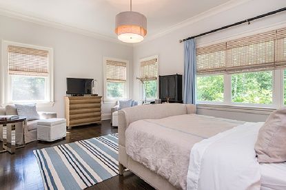 This designer's home offers the complete Hamptons luxury lifestyle. The graciously appointed interior flows easily to an outdoor living/dining patio, heated gunite pool, hot tub, tennis court, and exquisitely landscaped garden and lawn. The main floor has a living room, great room open to eat-in kitchen, formal dining room, butler's pantry, powder room, and en-suite bedroom. Upstairs has the master suite, a second bedroom suite with a sitting