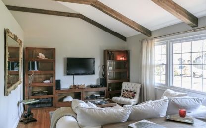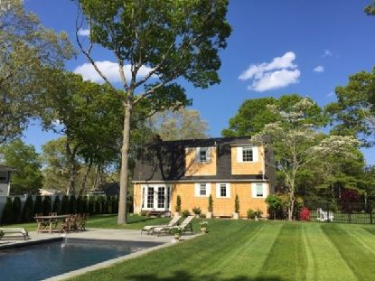 This beautifully done 3 bedroom, 2 bath home seamlessly blends country charm with the chic, sleek creature comforts of modern life. Updated with stylish designer touches and the soul soothing colors of a seaside retreat.Hand-honed wooden beams trace the high lines of the cathedral ceiling,from the sitting room to the cozy eat in kitchen.The family room hosts a wood burning fireplace and light, airy French doors which lead to the expansive lawn