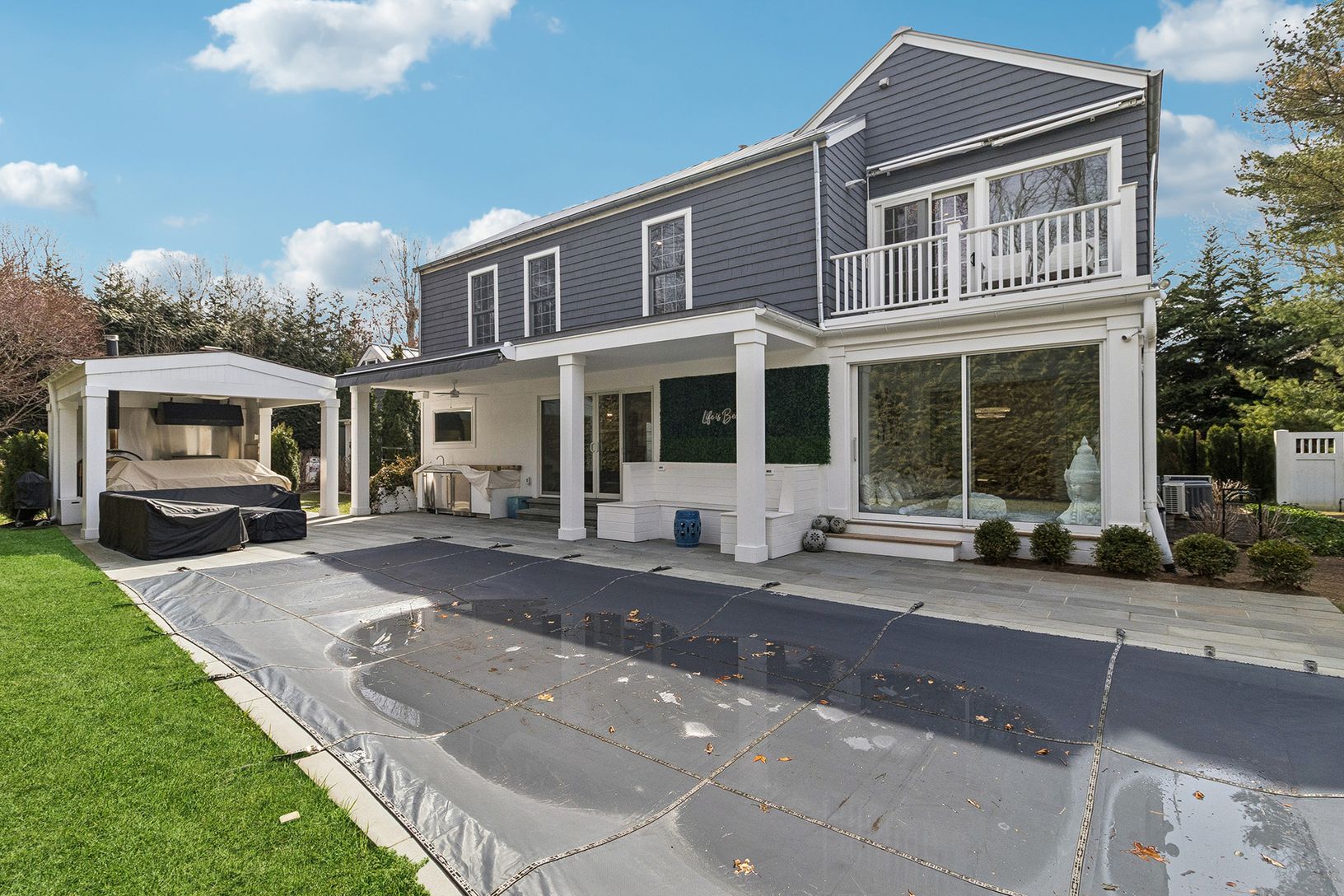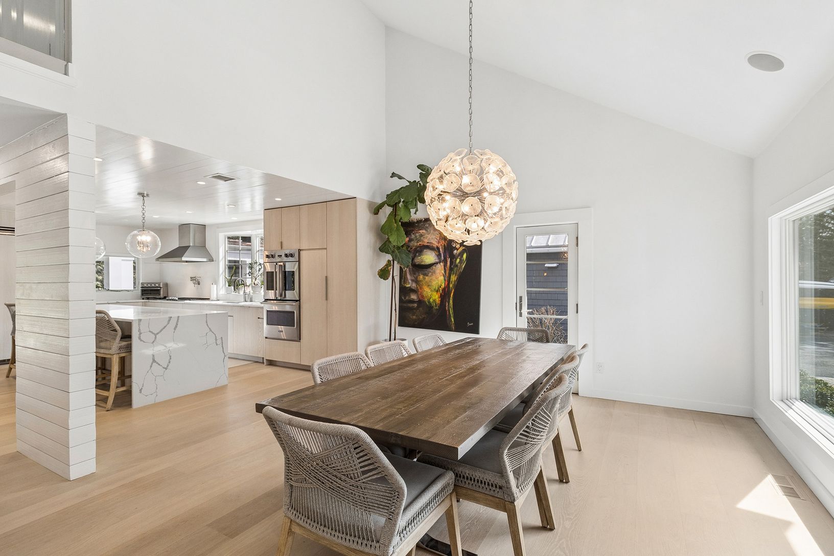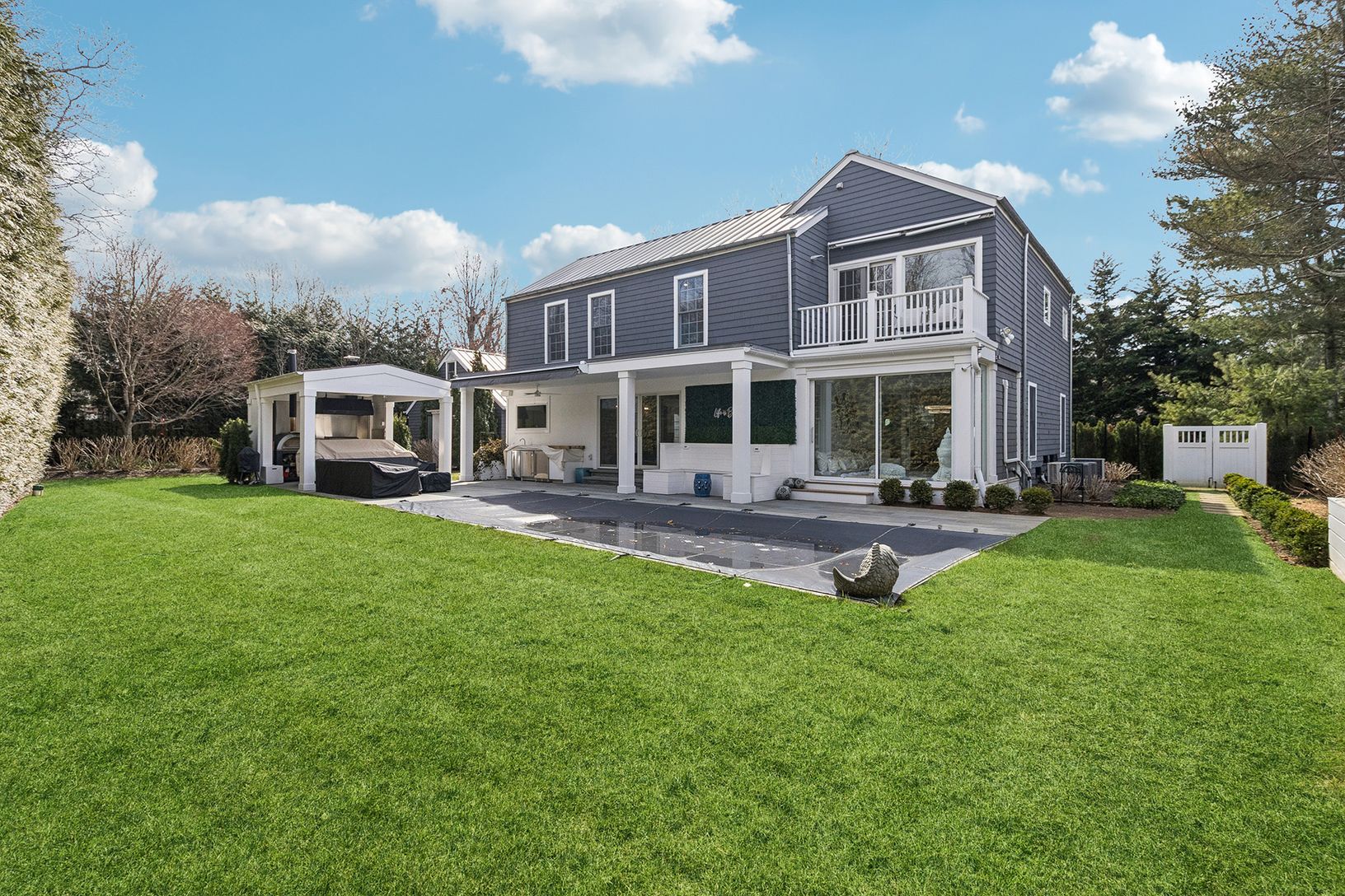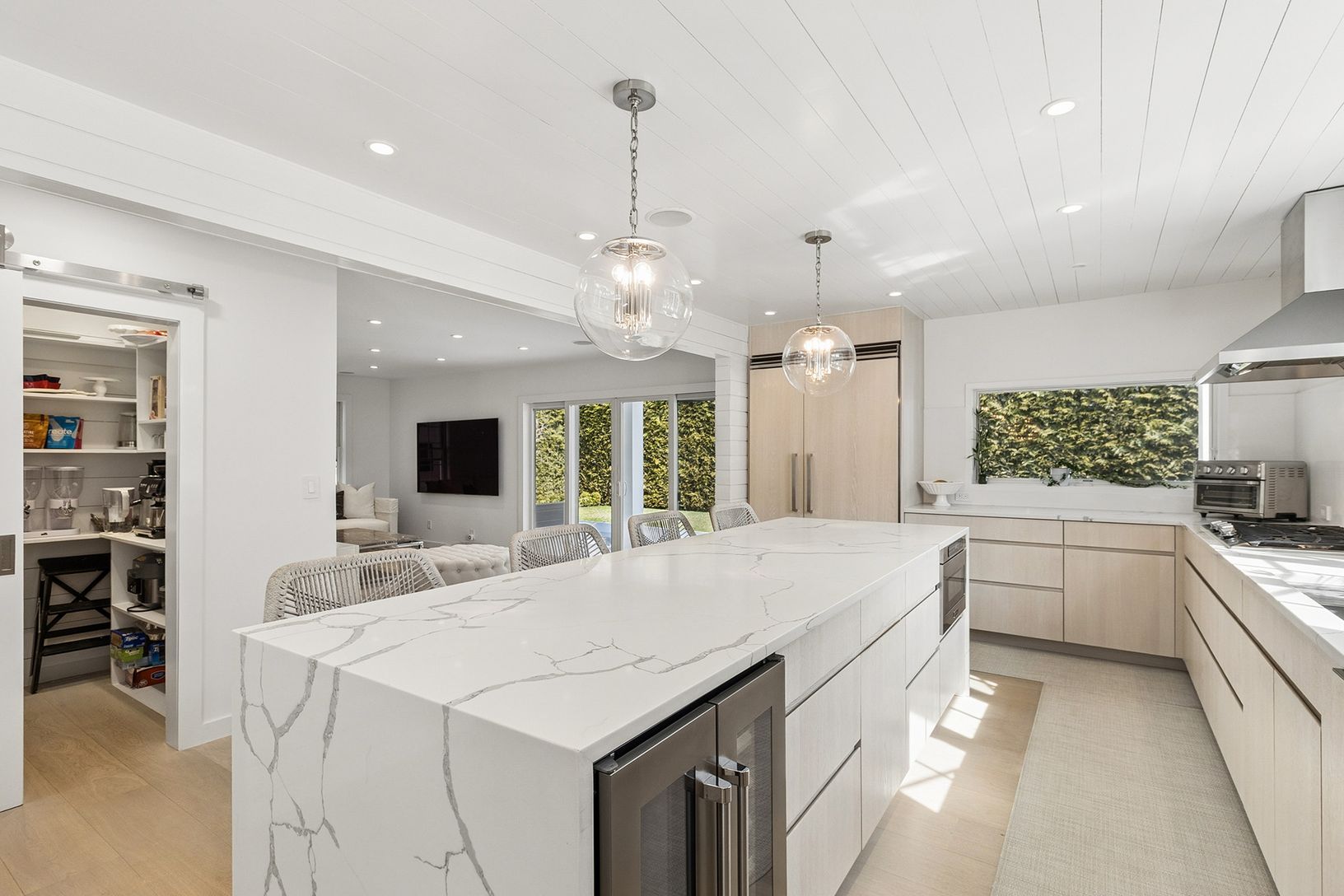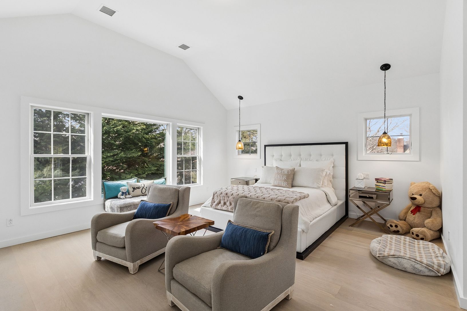 Nestled within the desirable East Hampton Springs, this fully renovated gated residence is set on +/- 0.40 beautifully landscaped acres, offering a seamless blend of modern design and luxury living. The home showcases an open-concept layout enhanced by double-height ceilings and wide-plank hardwood floors throughout. At the center of the home, a spacious living and dining area is anchored by a charming wood-burning fireplace, creating a warm y