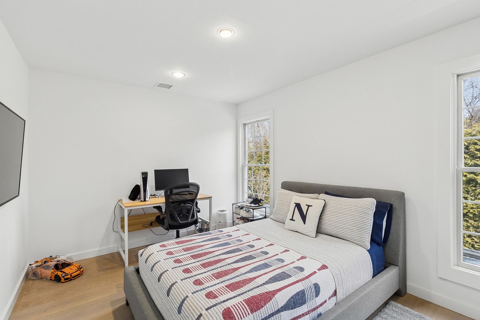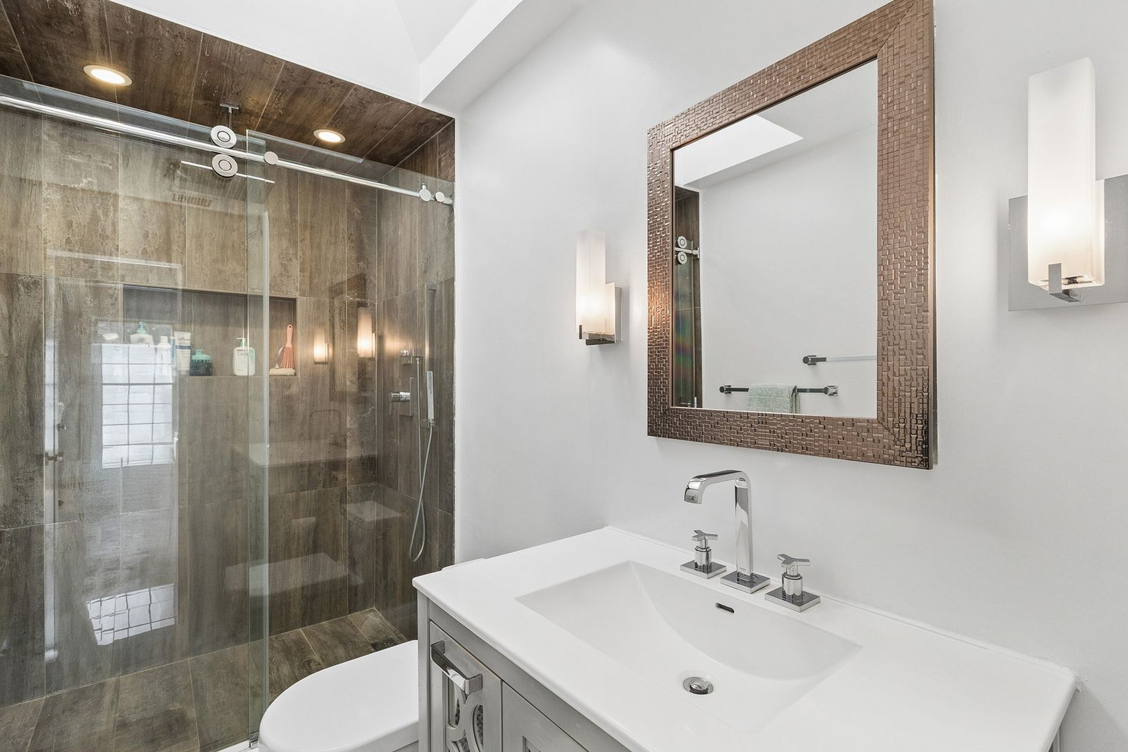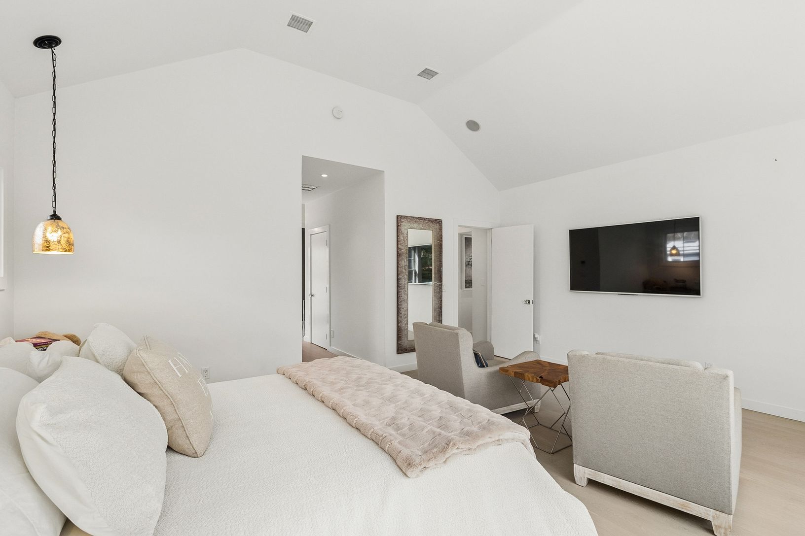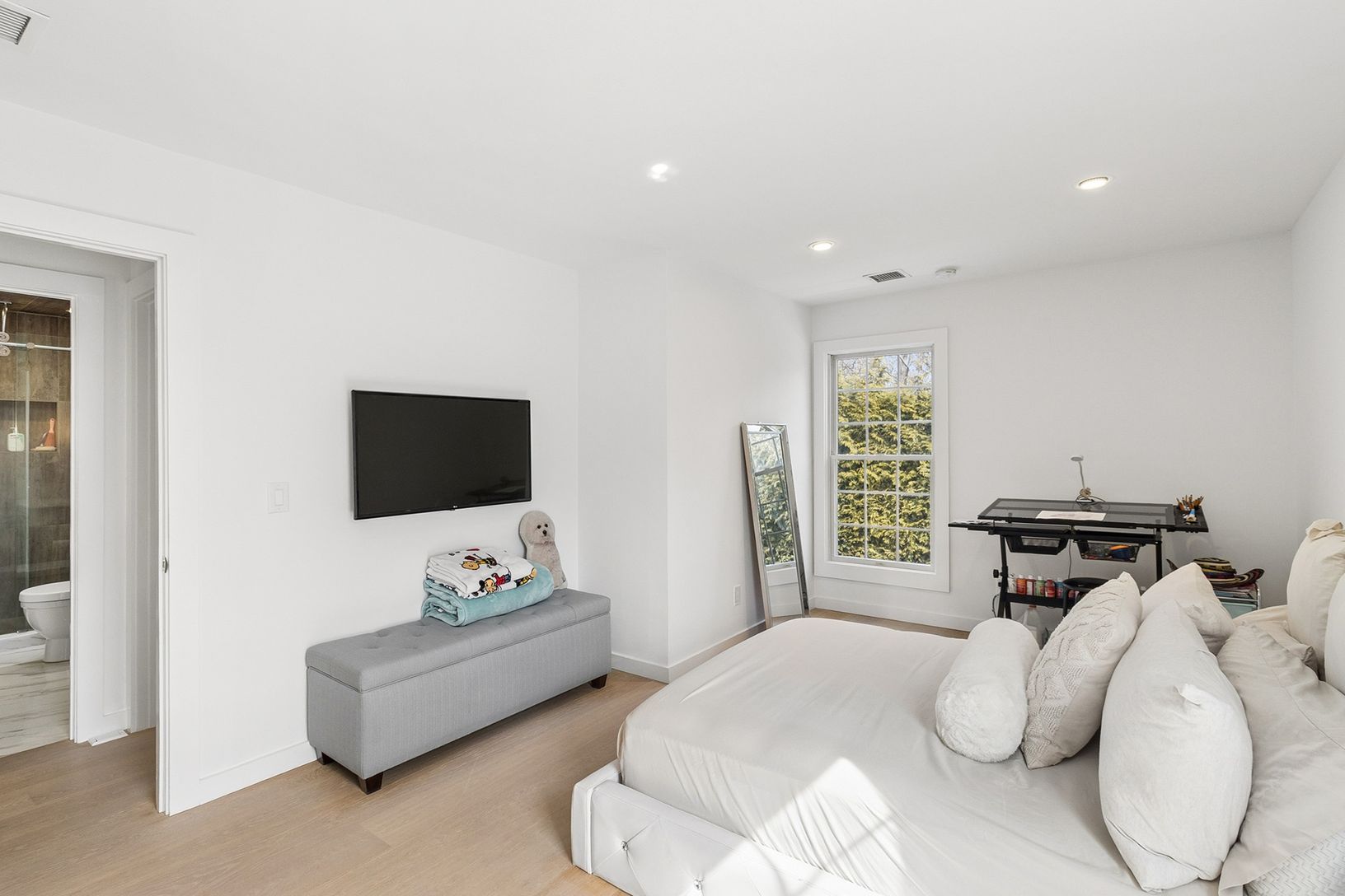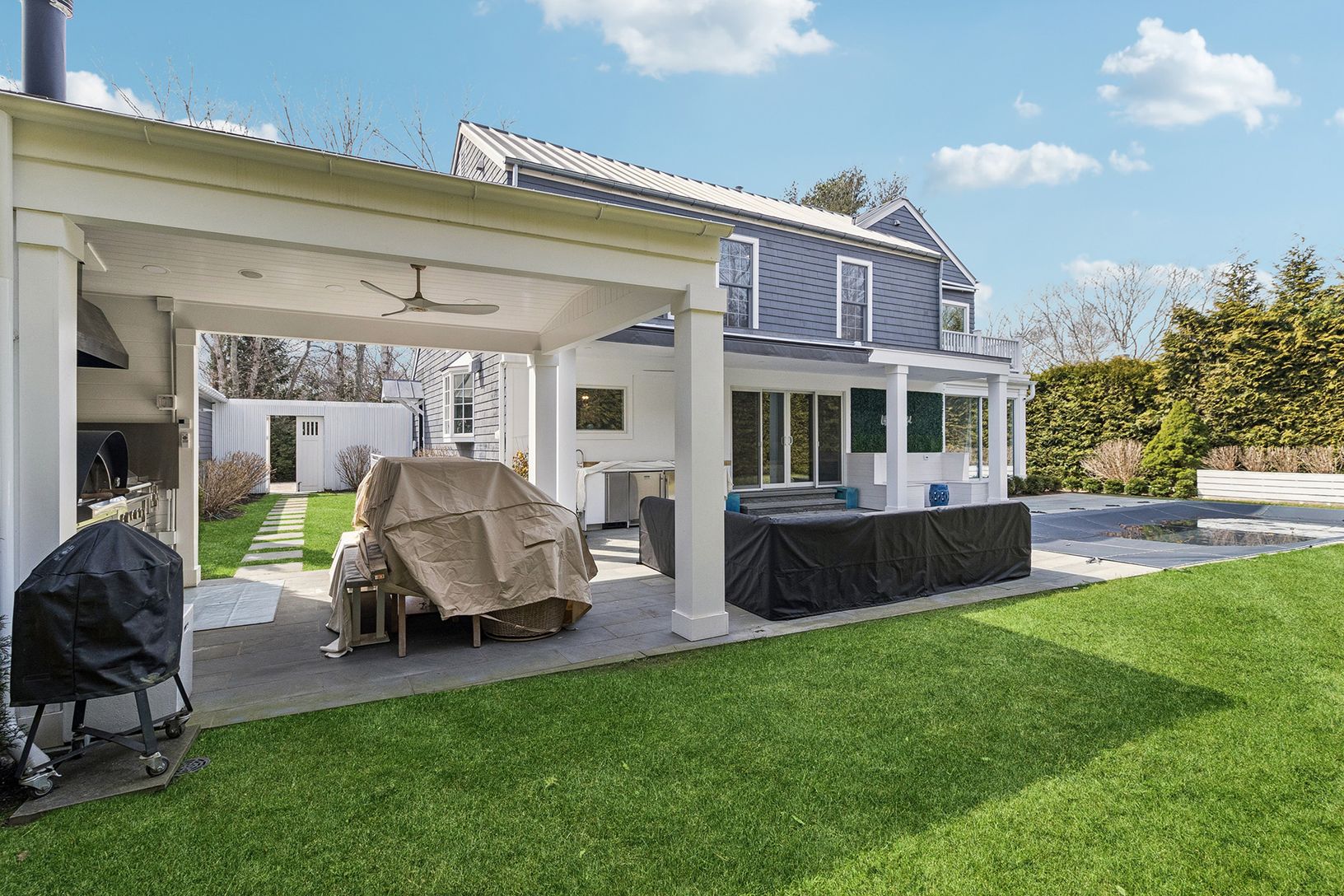 Nestled within the desirable East Hampton Springs, this fully renovated gated residence is set on +/- 0.40 beautifully landscaped acres, offering a seamless blend of modern design and luxury living. The home showcases an open-concept layout enhanced by double-height ceilings and wide-plank hardwood floors throughout. At the center of the home, a spacious living and dining area is anchored by a charming wood-burning fireplace, creating a warm y