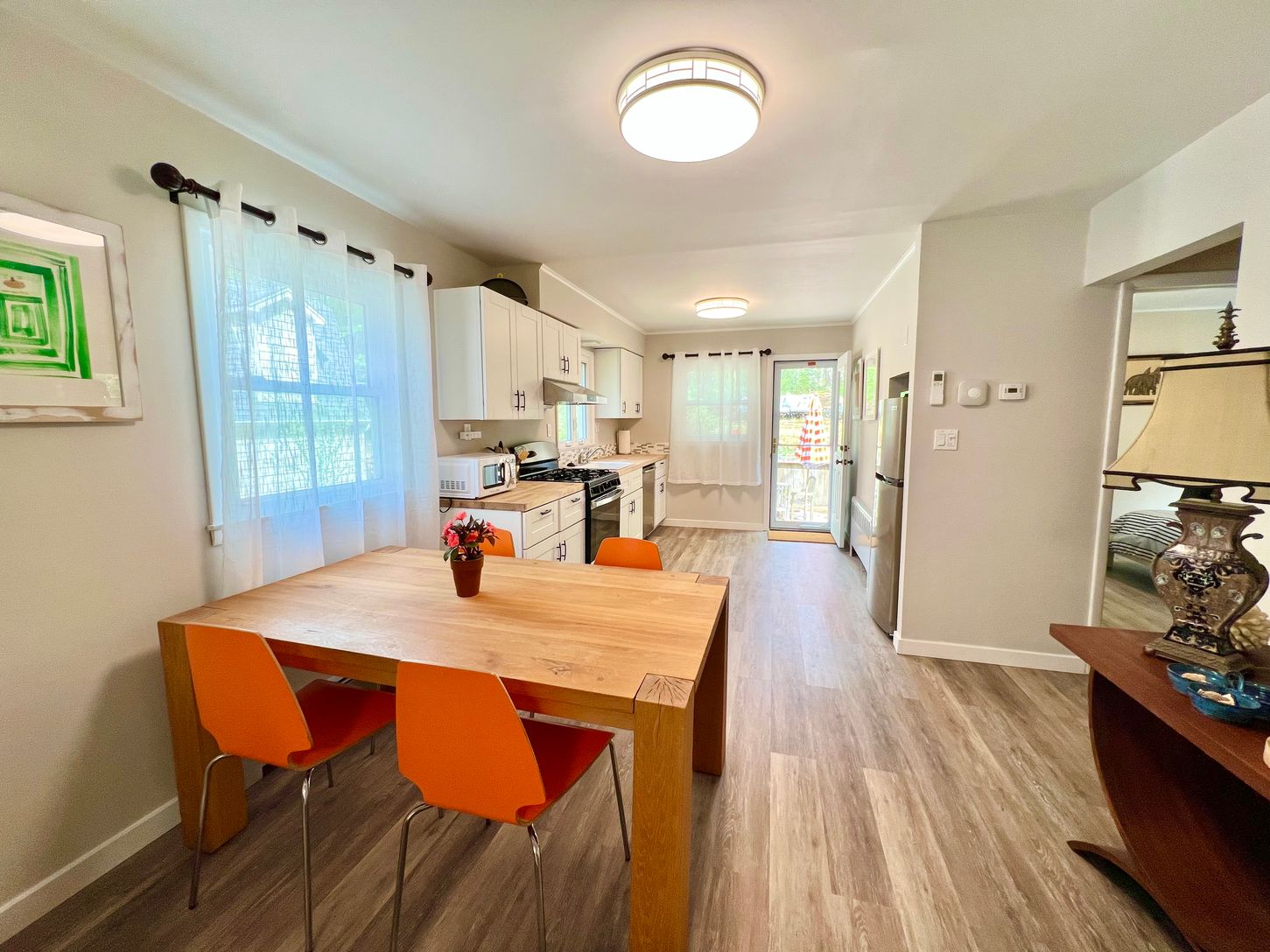 Experience year-round living in this charming cottage, ideally situated just a quarter-mile from the stunning beach Long Beach! Recently updated with modern amenities, this delightful retreat is designed for comfort and style, making it an ideal home in every season. With two cozy bedrooms and a stylish bathroom, the open kitchen and living room create a welcoming space for relaxation and entertaining. Enjoy the quaint patio, perfect for alfre