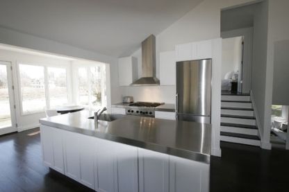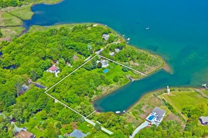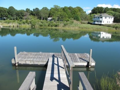 Spectacular waterfront on 2.4acres+/- with new gunite heated pool and dock Traditonal style 4 bedroom , 3 1/2 bath recently renovated in a sleek and minimalist European style with large loft-like stainless steel kitchen, spacious living room with fireplace, dark wide plank floors, and your own personal koi pond. Enjoy outdoor dining and relaxing by the water in privacy with views over Noyac Creek out to the bay. Convenient to Morton Wildlife P