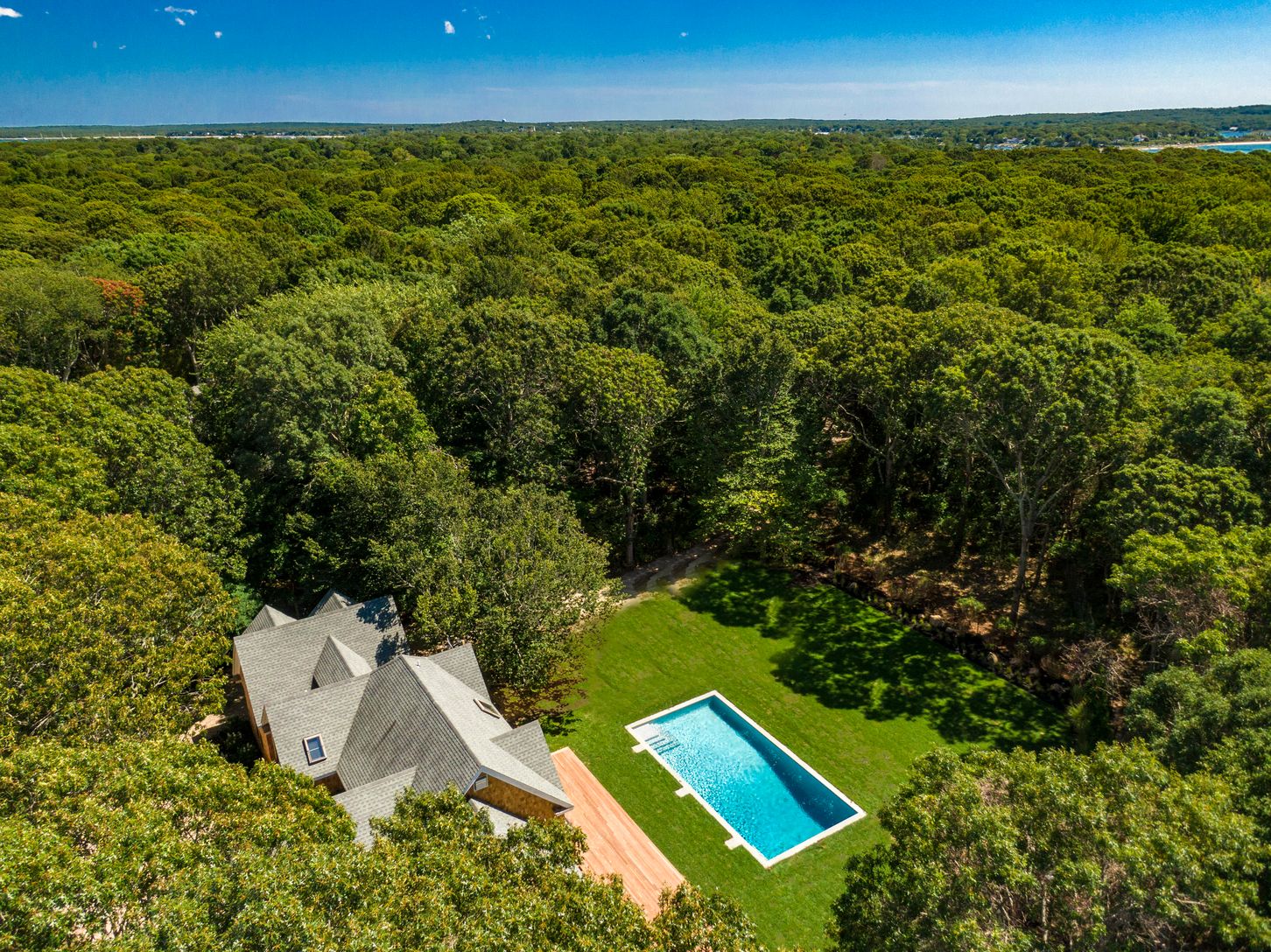 This sensational 4,500 sq ft, 6 bed, 6.5 bath designer modern re-construction is sited on 1.84 acres at the end of a quiet cul-de-sac on a private road in scenic North Haven.