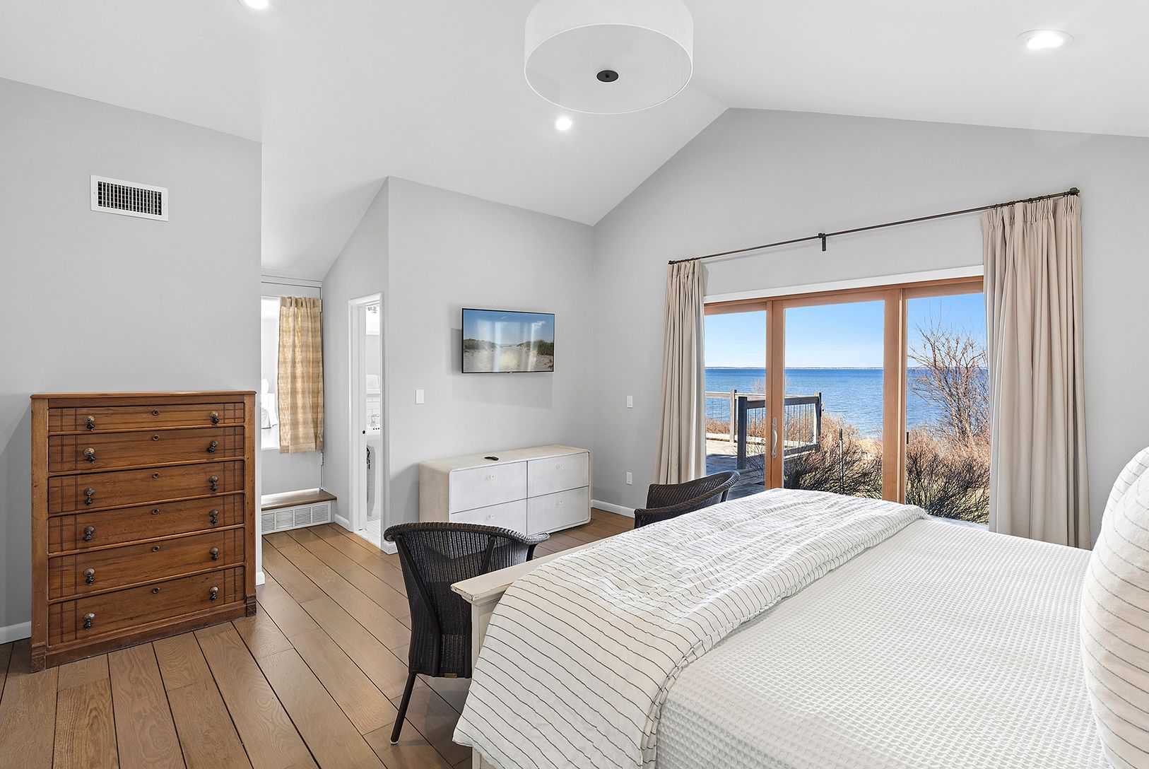 Introducing 22 Peconic Crescent. This newly renovated waterfront home offers a rare opportunity to own a turnkey property directly on Peconic Bay in Hampton Bays. Spanning approximately 1,900 square feet, the residence features 3 bedrooms and 3 full bathrooms and is perfectly positioned to capture swee