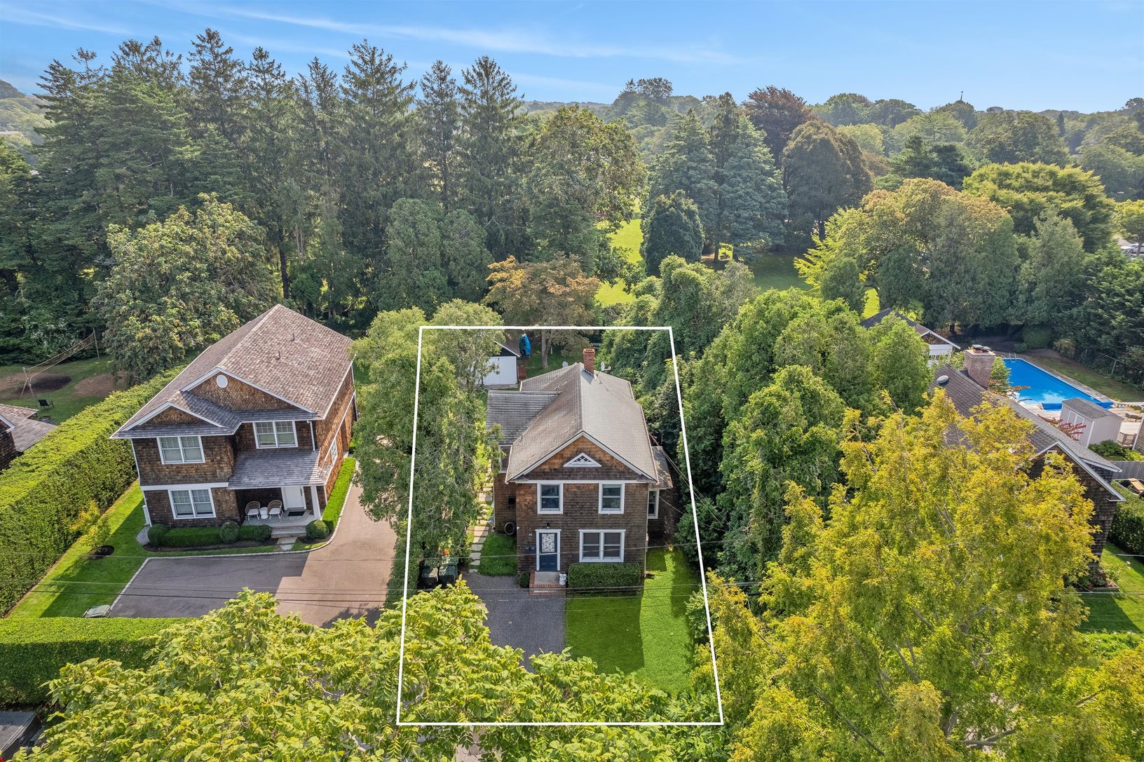 One of the very few remaining legal 2-family houses right in the heart of East Hampton Village. Highly desirable location on a quiet cul de sac street, adjacent to the beautiful Village park, near shops, restaurants, transportation and our gorgeous ocean beaches. The house has been renovated and is currently configured as two apartments, one upstairs, one down with two bedrooms and one bath each, plus laundry on both floors. The shy quarter ac