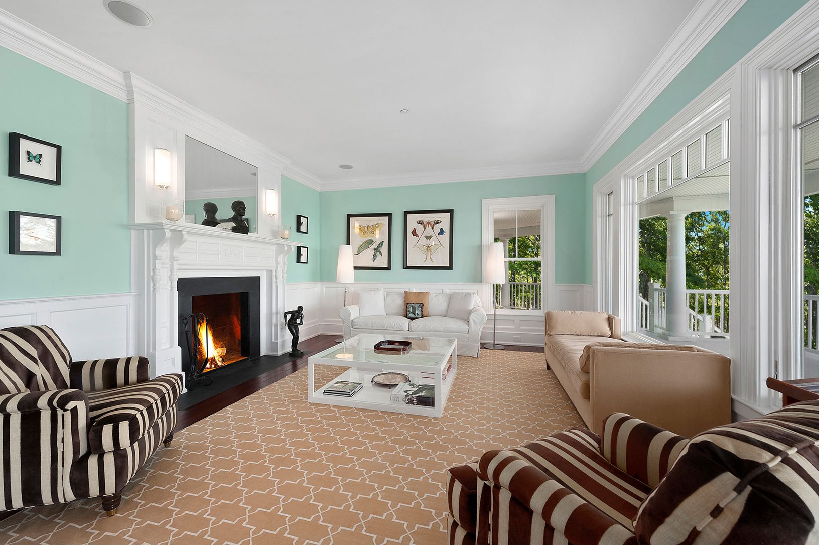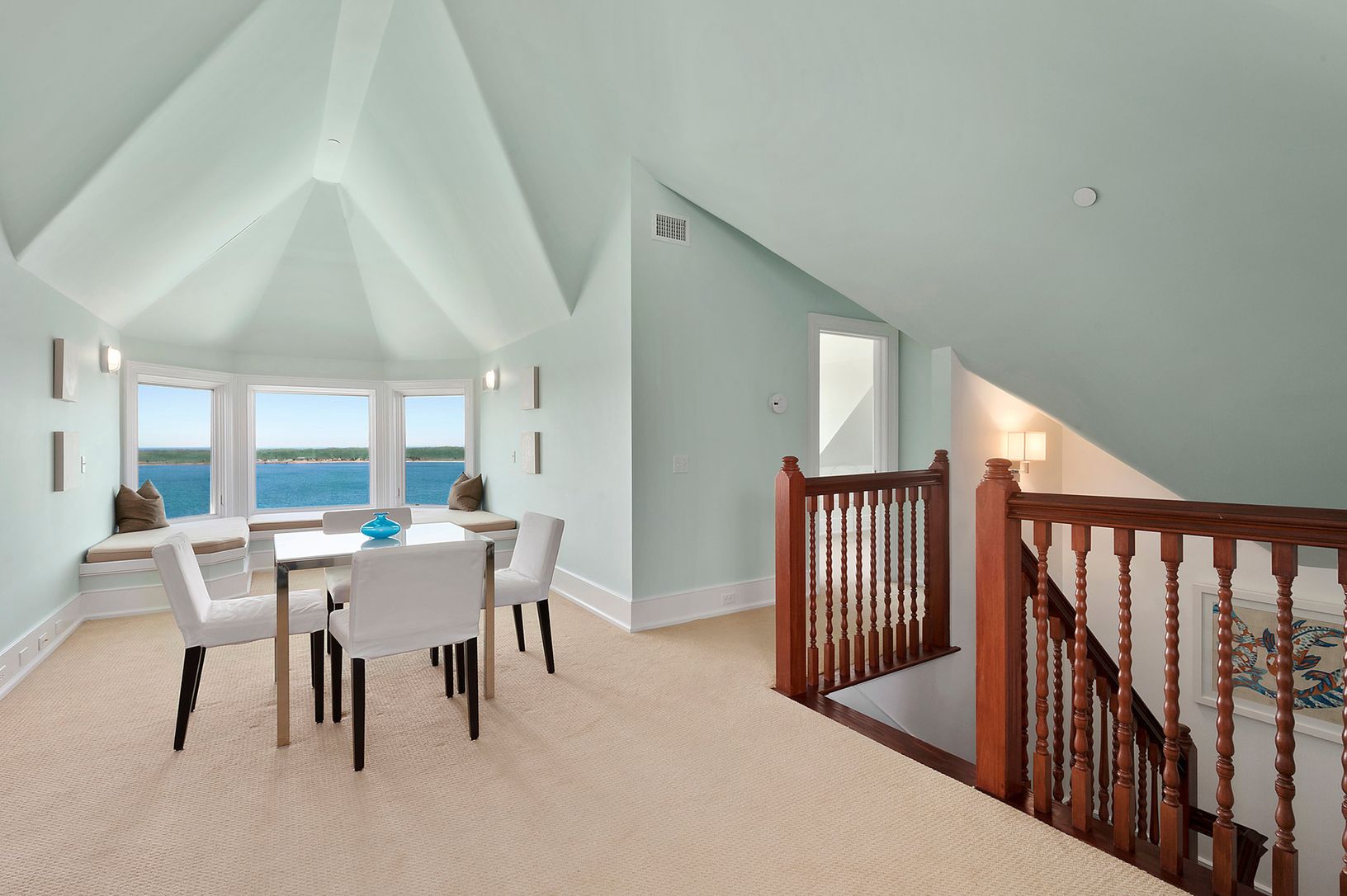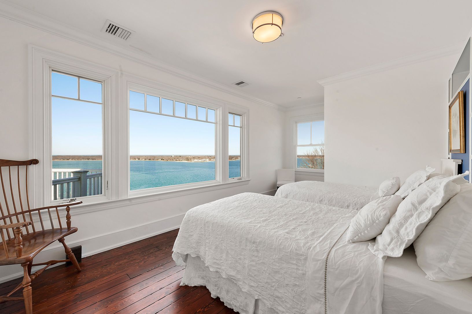 This 1884 Queen Anne style waterfront estate possesses an extraordinary provenance, and has been lovingly restored, retaining its original character. Set on 1.87+/- elevated acres with 200+/- ft. of sandy beachfront on Shelter Island Sound, the sweeping sunset views from four levels of living space, comprising 7,165+/- sq. ft., offer a bird's eye view all the way to Connecticut. The area, named "Divinity Hill" after this and the adjacent home