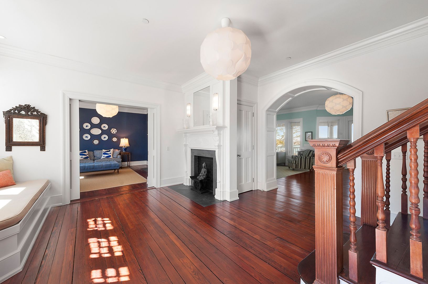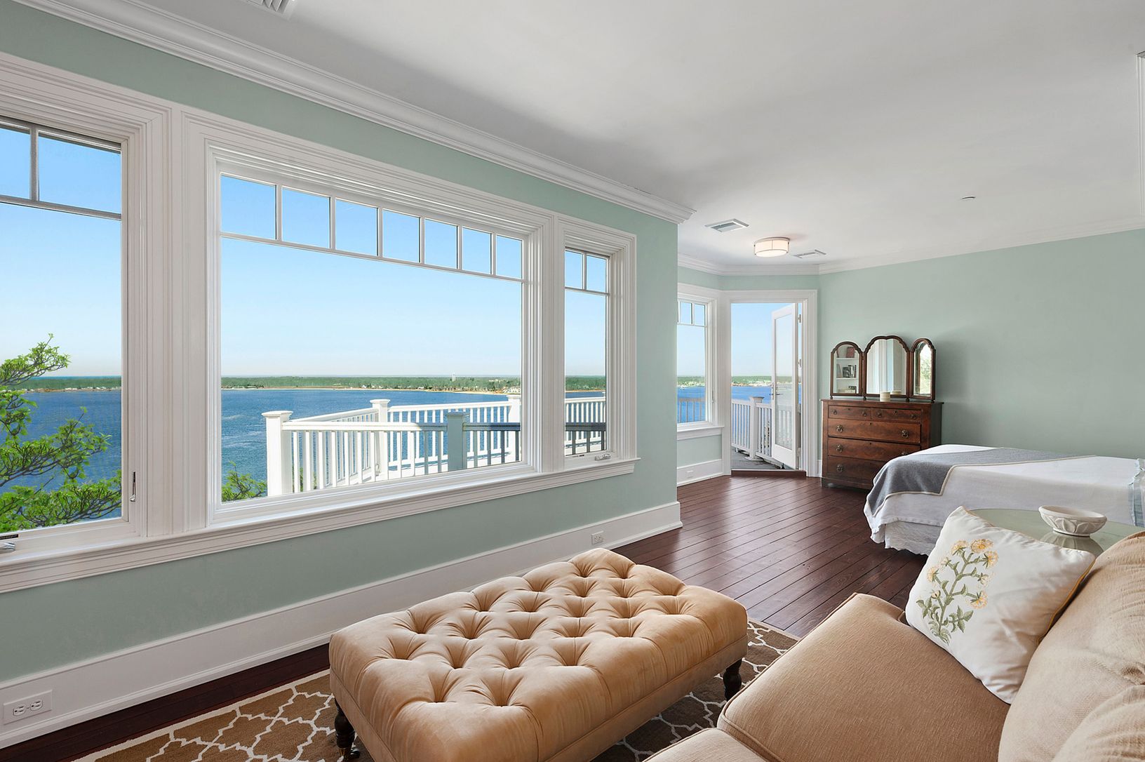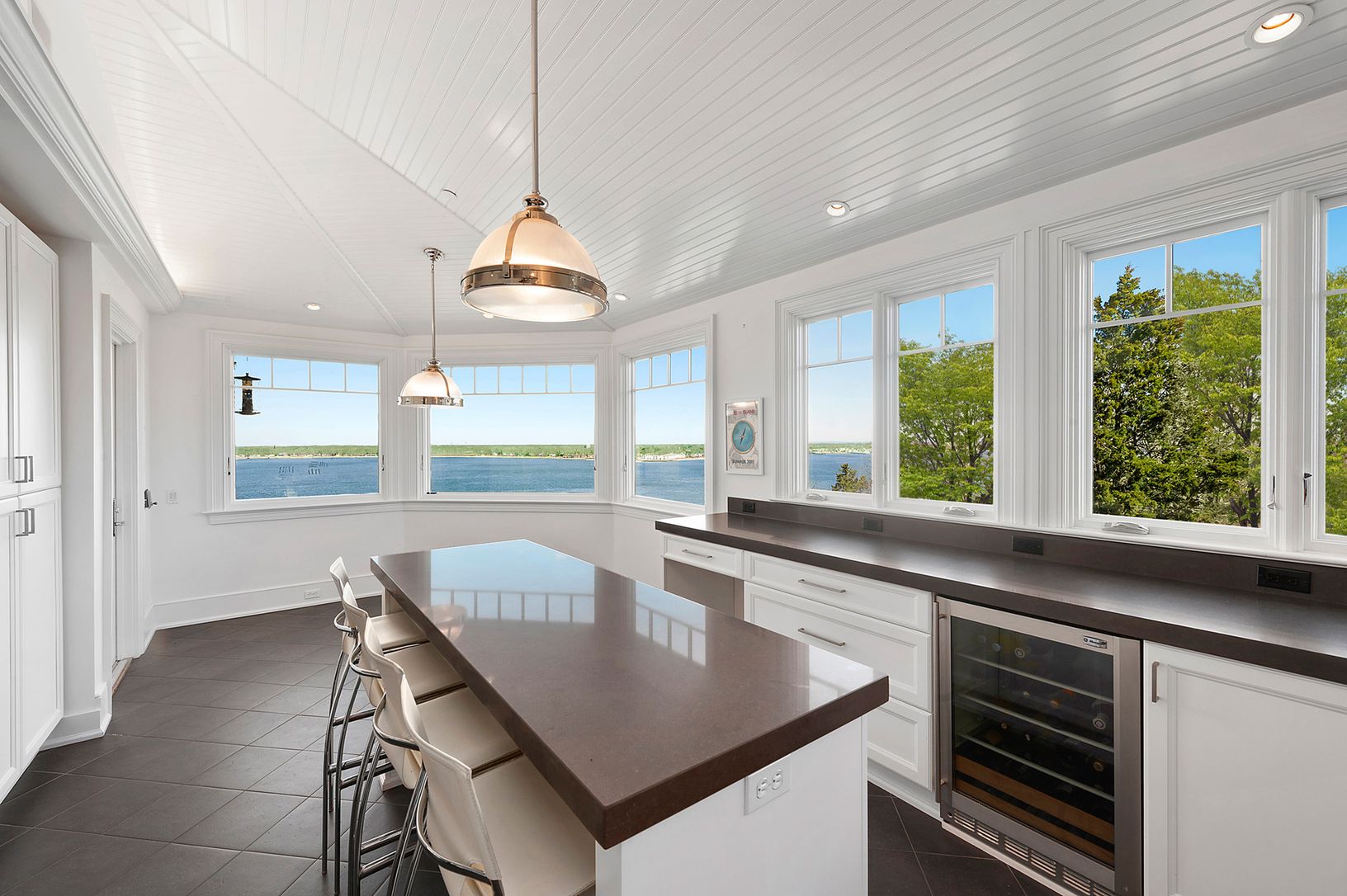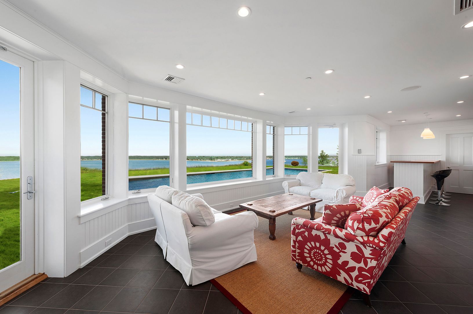 This 1884 Queen Anne style waterfront estate possesses an extraordinary provenance, and has been lovingly restored, retaining its original character. Set on 1.87+/- elevated acres with 200+/- ft. of sandy beachfront on Shelter Island Sound, the sweeping sunset views from four levels of living space, comprising 7,165+/- sq. ft., offer a bird's eye view all the way to Connecticut. The area, named "Divinity Hill" after this and the adjacent home