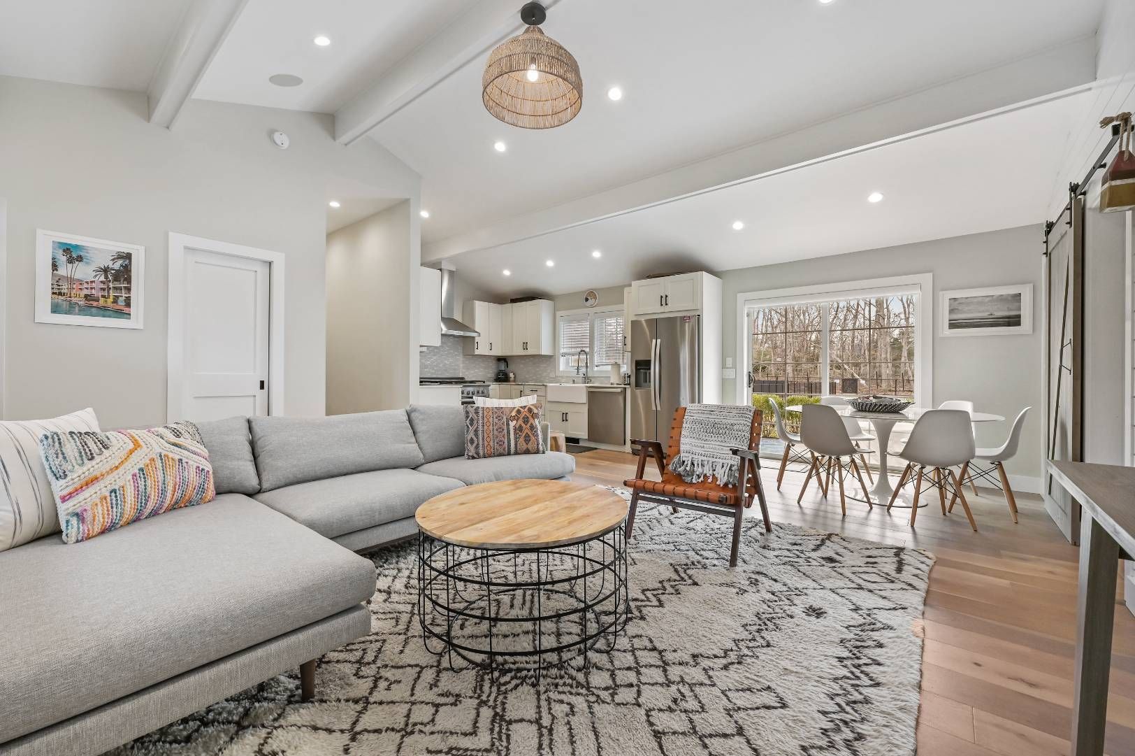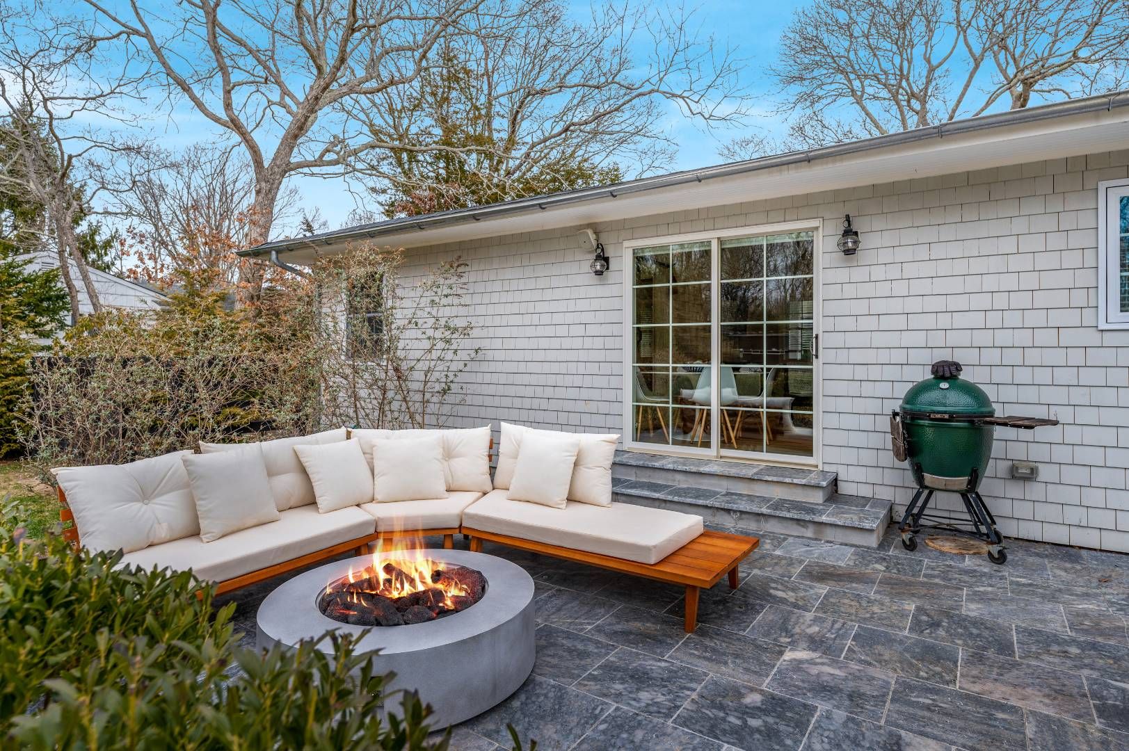 Charming home sits on a quiet street in a prime location near Three Mile Harbor’s marinas, restaurants like Si Si, Sunset Harbor, and Bostwick’s, and popular spots like Maidstone Beach, Round Swamp, and Damark’s. The layout includes four bedrooms—three on one side of the house and a private guest room on the other—plus a finished basement with a large TV and relaxed hangout space. Outside, enjoy a beautifully landscaped yard with a separately