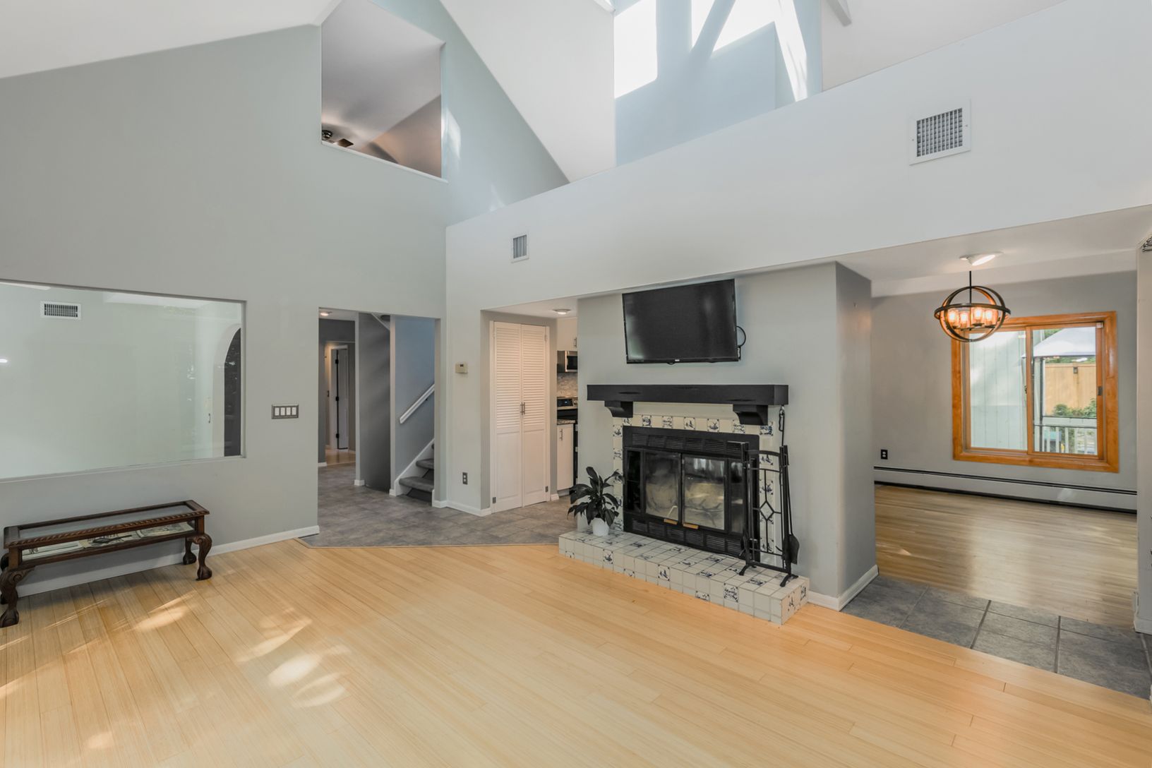 Floors: Hardwood, Tile