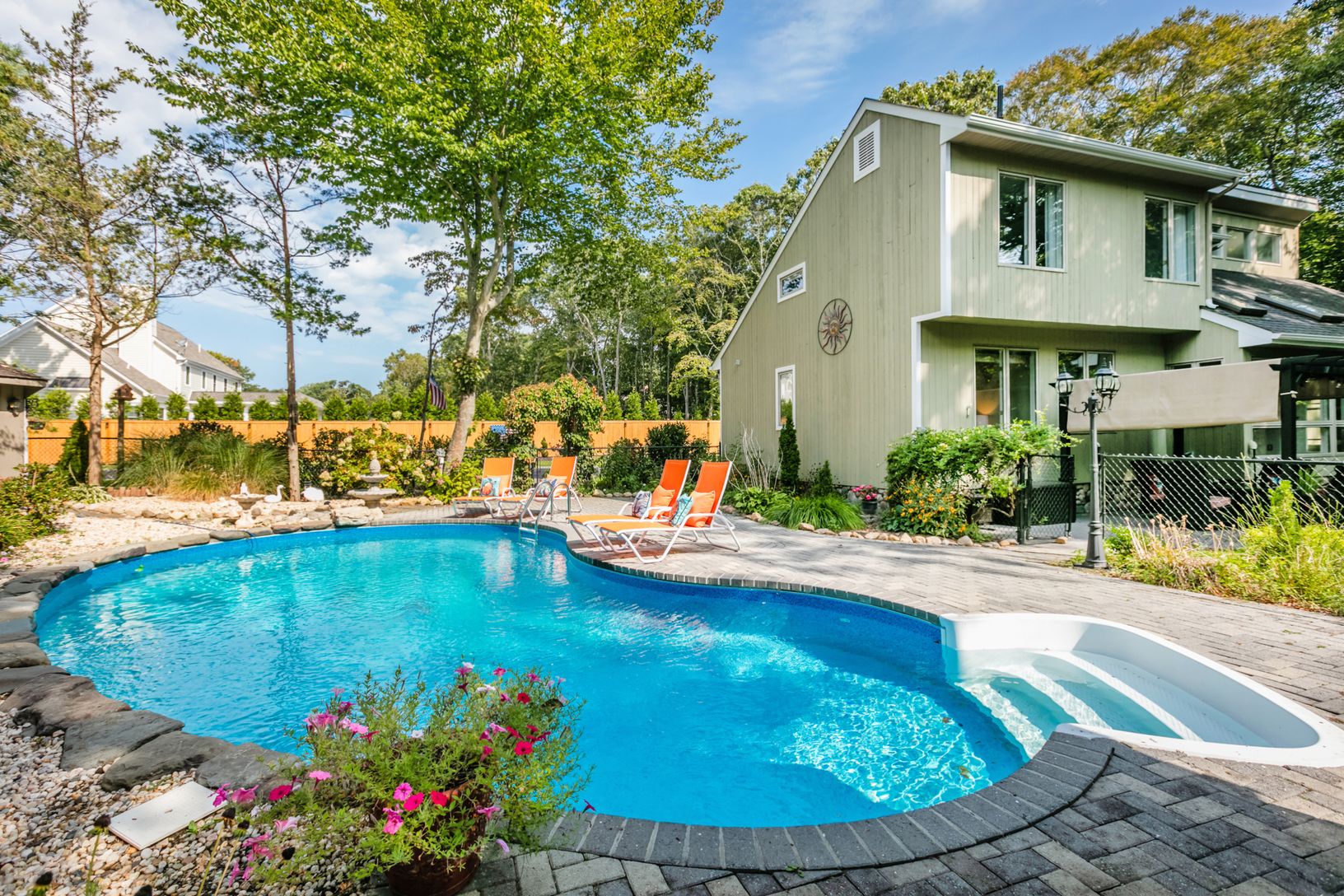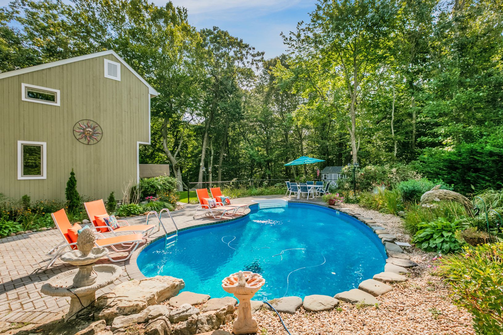 Stunning contemporary nestled on 1.16 private acres in desirable Silver Beeches at Fresh Pond area. This three bedroom, two and one-half bath home is surrounded by nature with an abundance of sunlight throughout. The grounds are immaculate and include a kidney-shaped in-ground pool, multiple decks for entertaining and your own peaceful Zen garden. Feel like your on vacation all year round without ever leaving your own home!