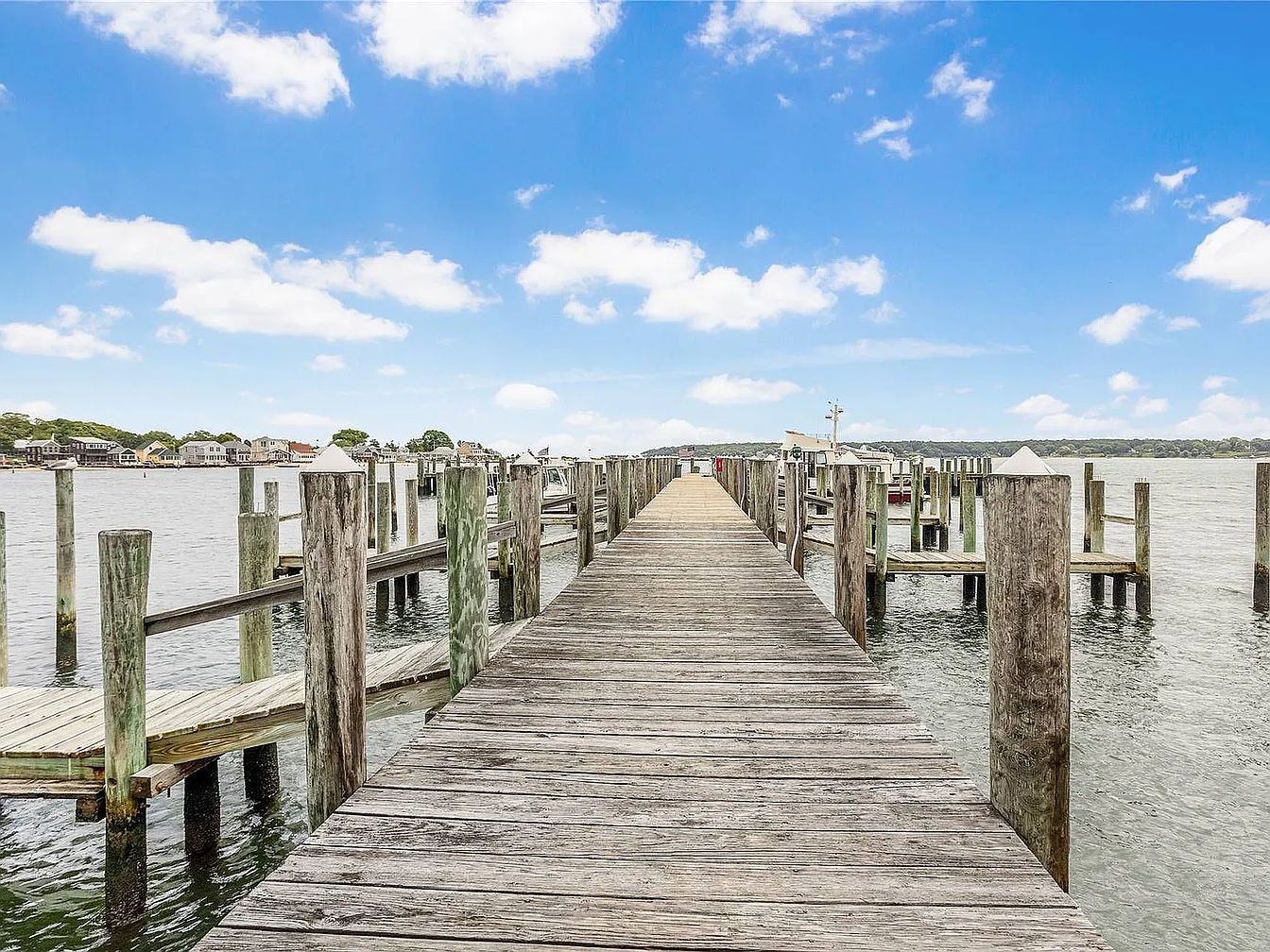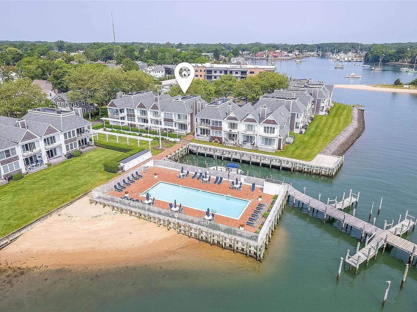 Just a ferry ride from Sag Harbor and the Hampton's, take in expansive waterfront views of the bay and Greenport harbor from the first-floor deck or second floor balcony in this renovated open concept two story townhouse located in the private Stirling Cove condominium association. This light filled townhouse offers a private beach, 60' x 30' heated pool overlooking the bay, two tennis courts, private parking and is two blocks from the heart o