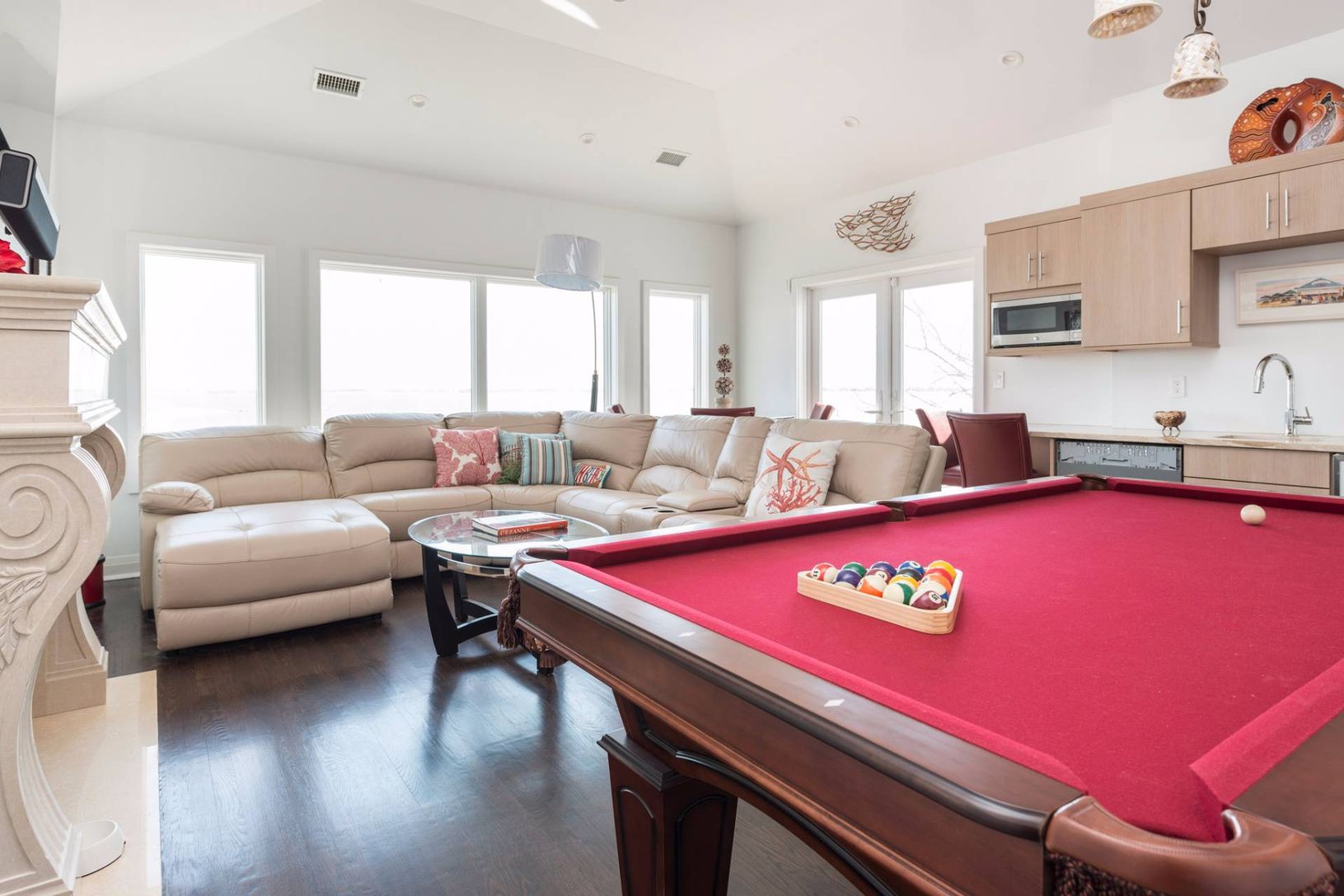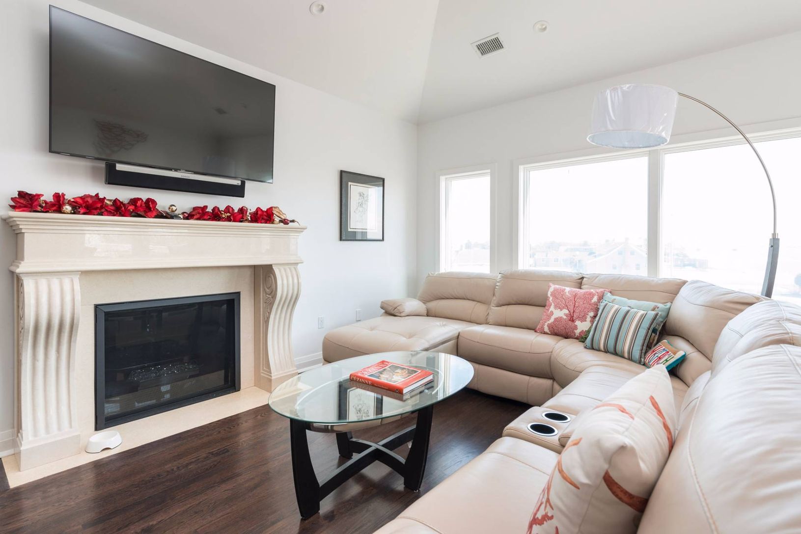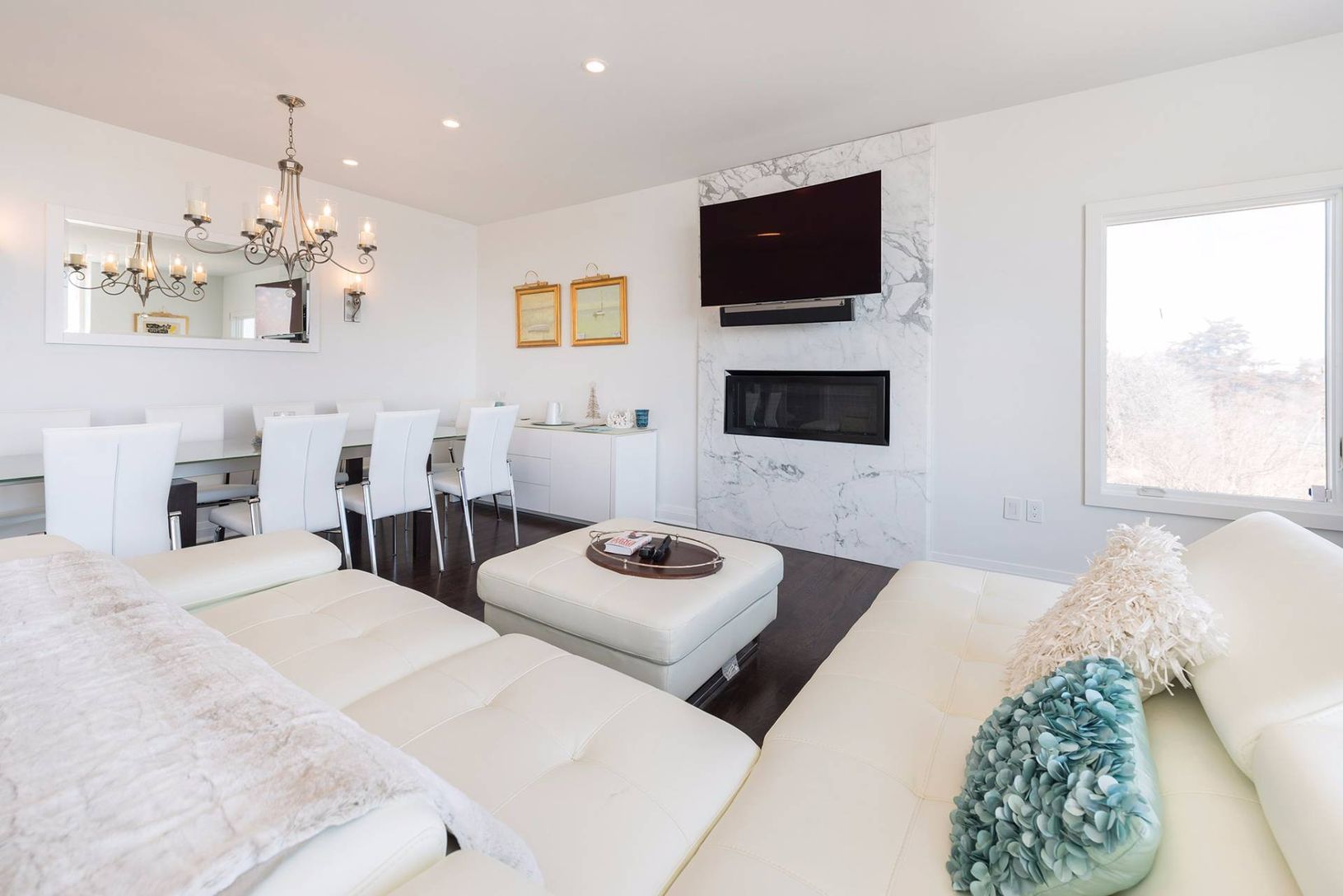Bright, beautiful, white water front contemporary featuring 5,000+/- square feet of living space and water views from almost every room. Home features include an open floor plan featuring a living room with fireplace, gourmet kitchen, dining room, and a beautiful master suite. this home also has a dock for boating. Great rental!