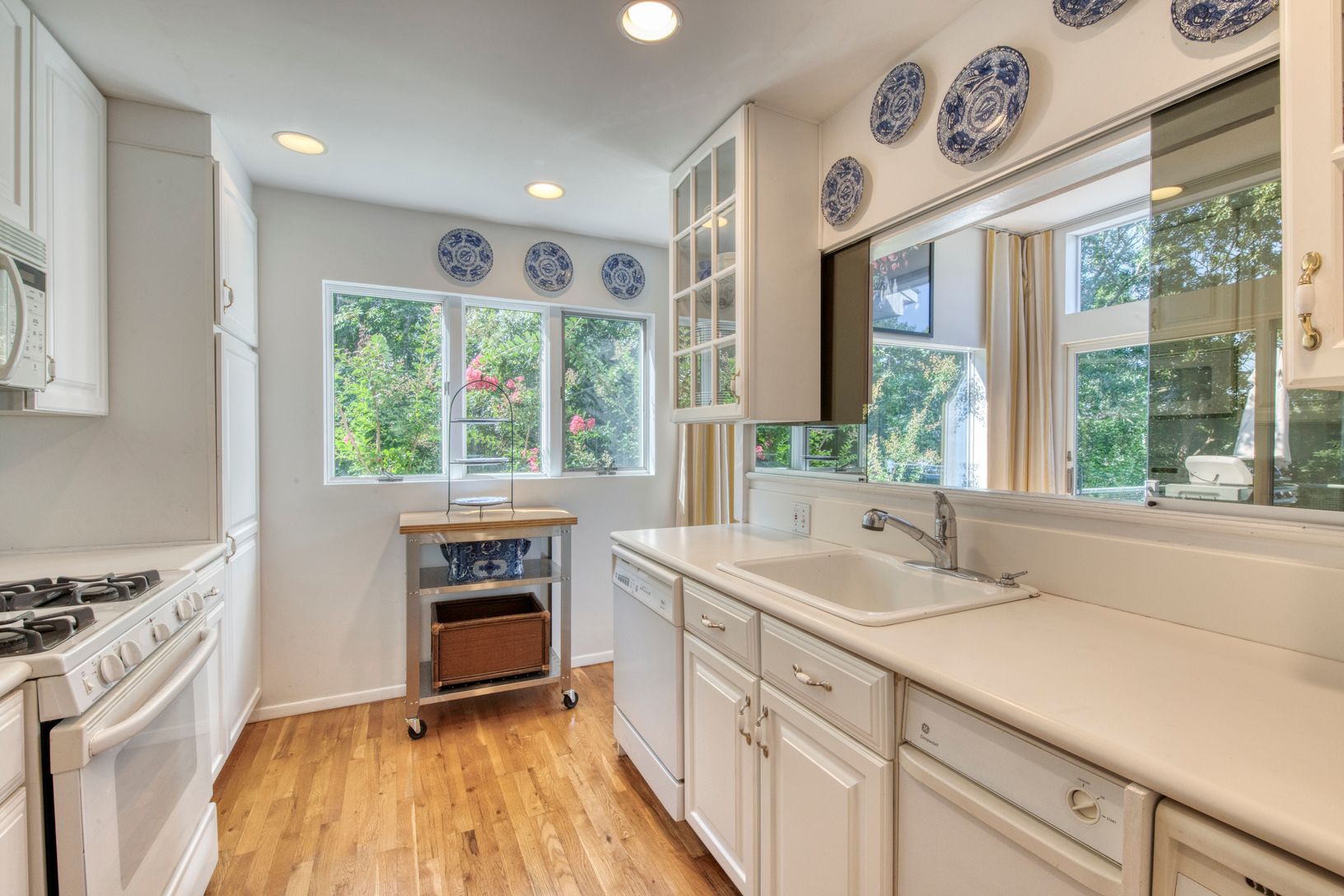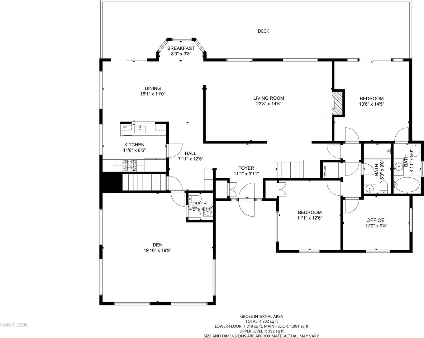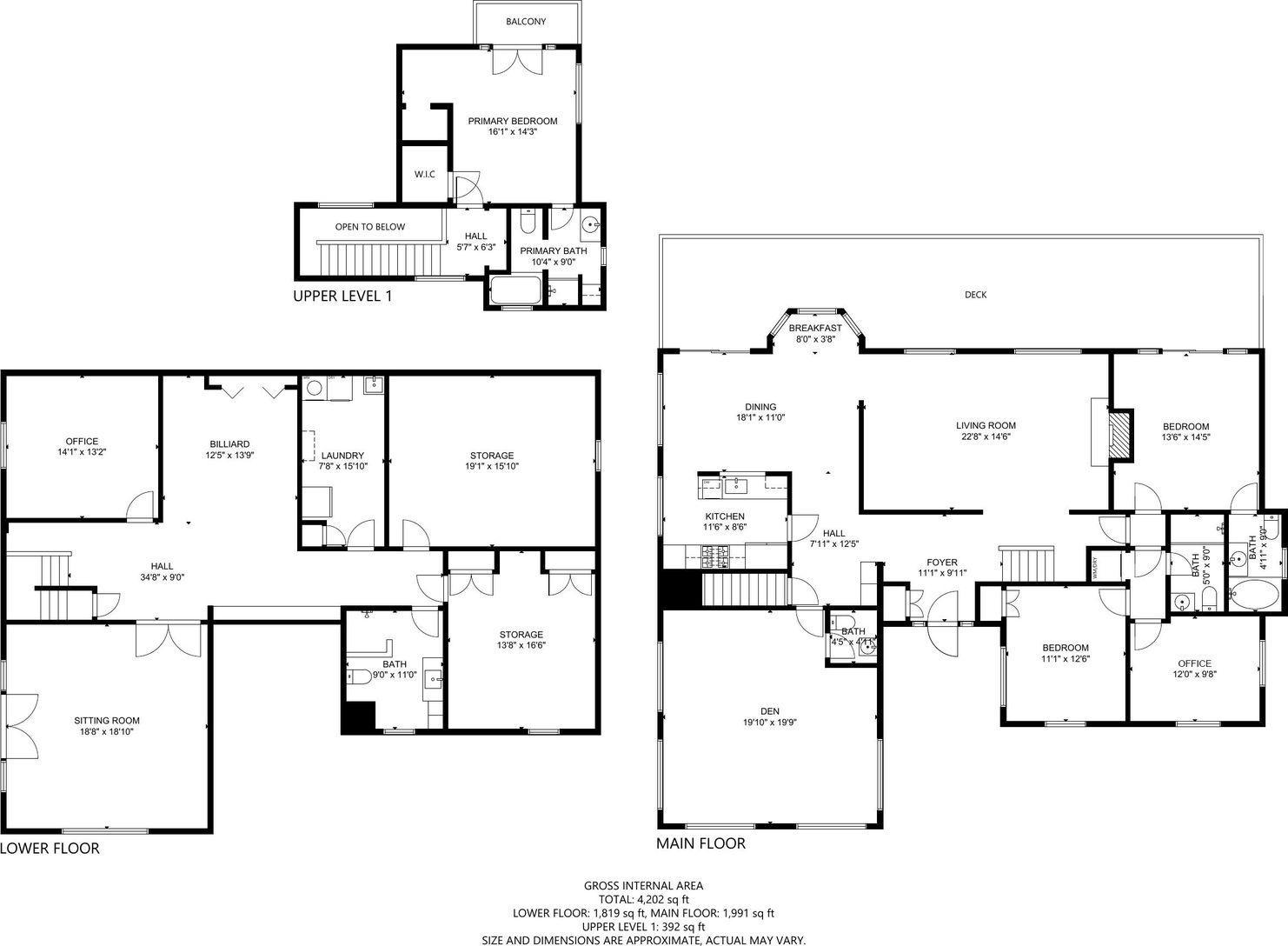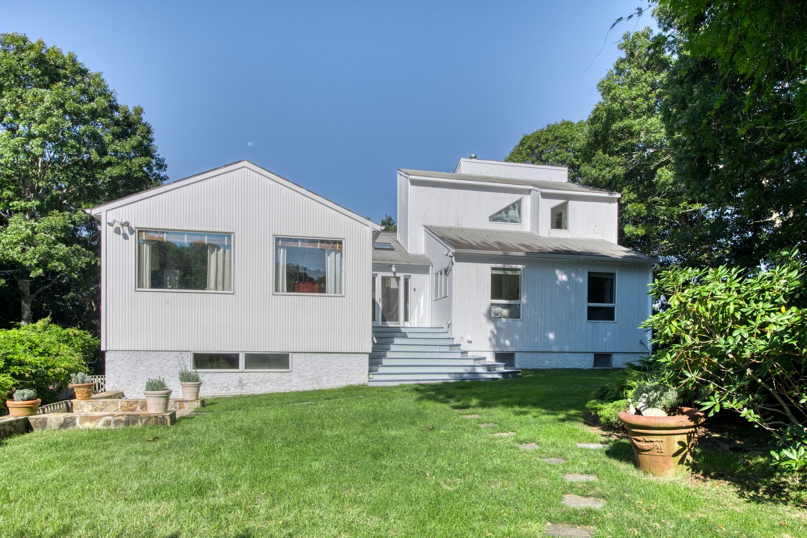 Enjoy amazing sunsets from this contemporary home nestled up high at 22 Three Mile Harbor Hog Creek Road, on 1.8 acres overlooking breathtaking water views. This four bedroom, four and a half bath home offers a sun drenched living room with fireplace, lovely extra large den, and dining area opening to a full length deck. Two primary bedroom options, with laundry upstairs and a large laundry room on the lower level which offers an additional 19