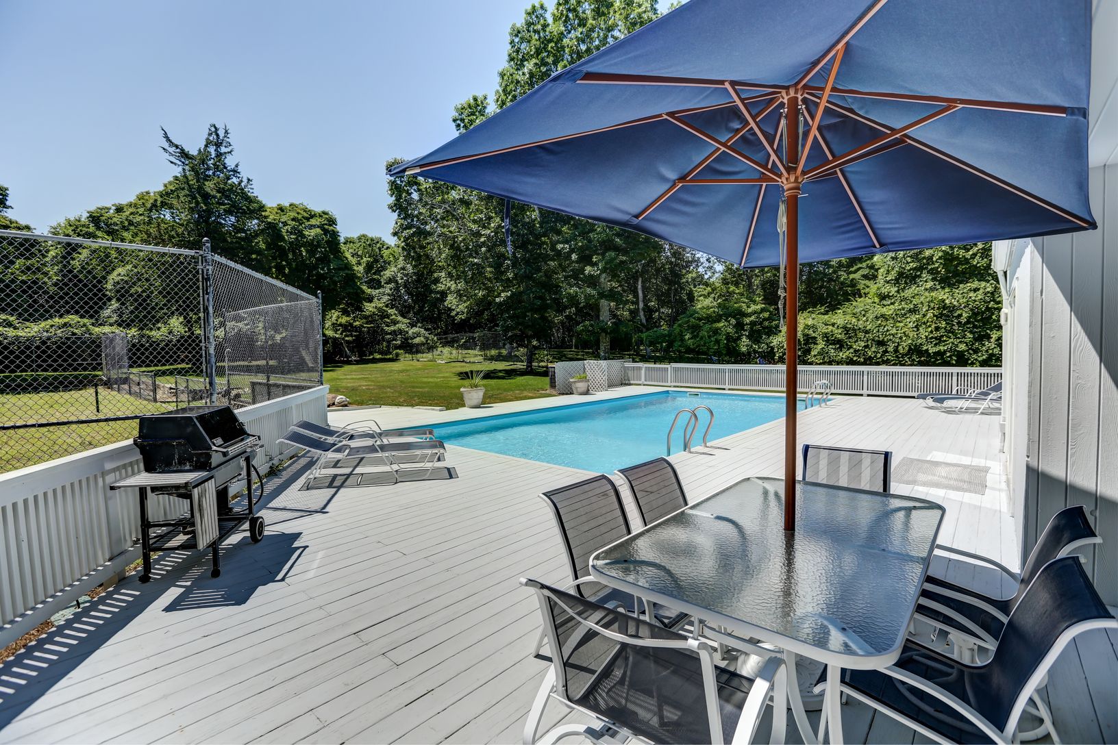 Light, bright and beachy with pool and tennis. Features include 4 bedrooms, 2.5 baths, open kitchen, separate dining area, vaulted ceiling in living room w/fireplace, CAC, full basement 2 cedar closets, garage, a 36 foot pool and a regulation size Har-Tru tennis court. Southampton Village, Ocean and Bay beaches are in close proximity and there are three world renowned golf courses just 3 minutes away,