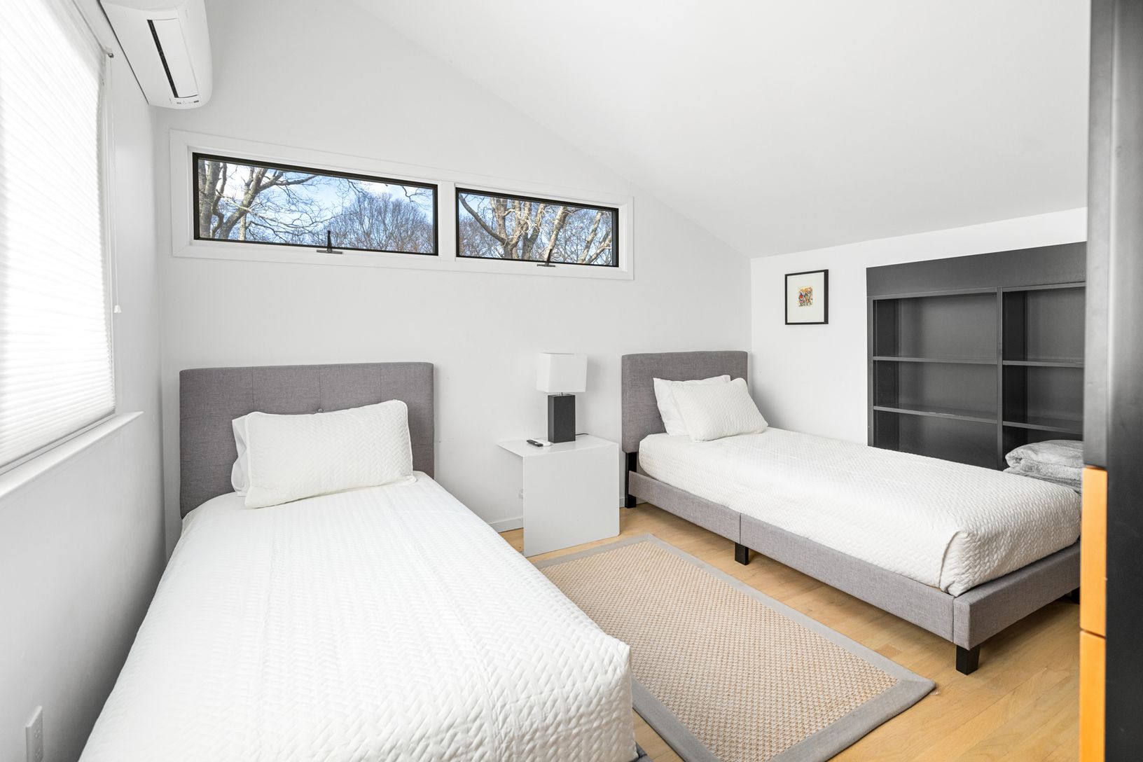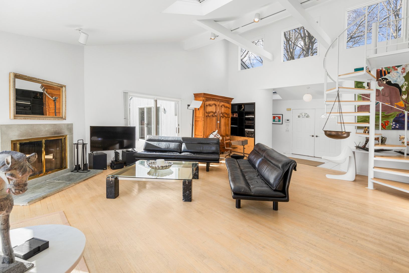 Nestled on a quiet acre, this contemporary home emanates a cheerful, relaxed vibe—perfect for unwinding after a busy day. The open kitchen and separate dining area are designed for easy entertaining, complemented by the living room's cozy fireplace and cathedral ceiling. The first-floor primary bedroom features a spacious ensuite with a spa bath, separate shower, and bidet. Two additional bedrooms share a bath on the same floor, with the fourt