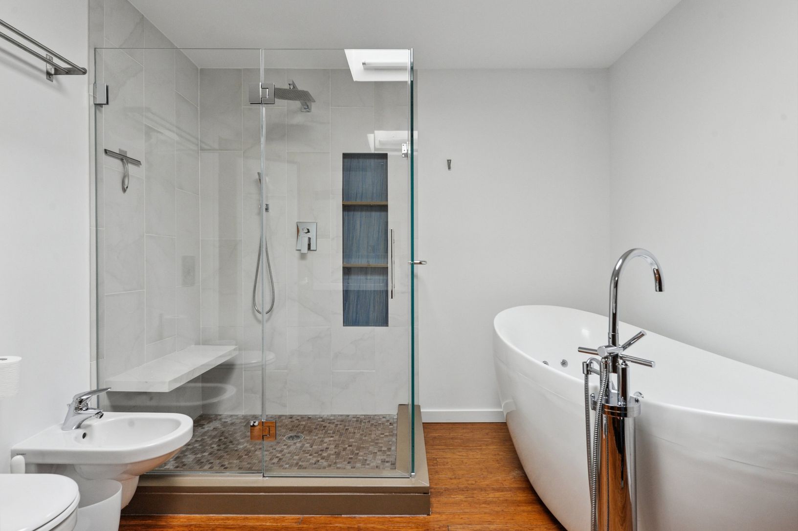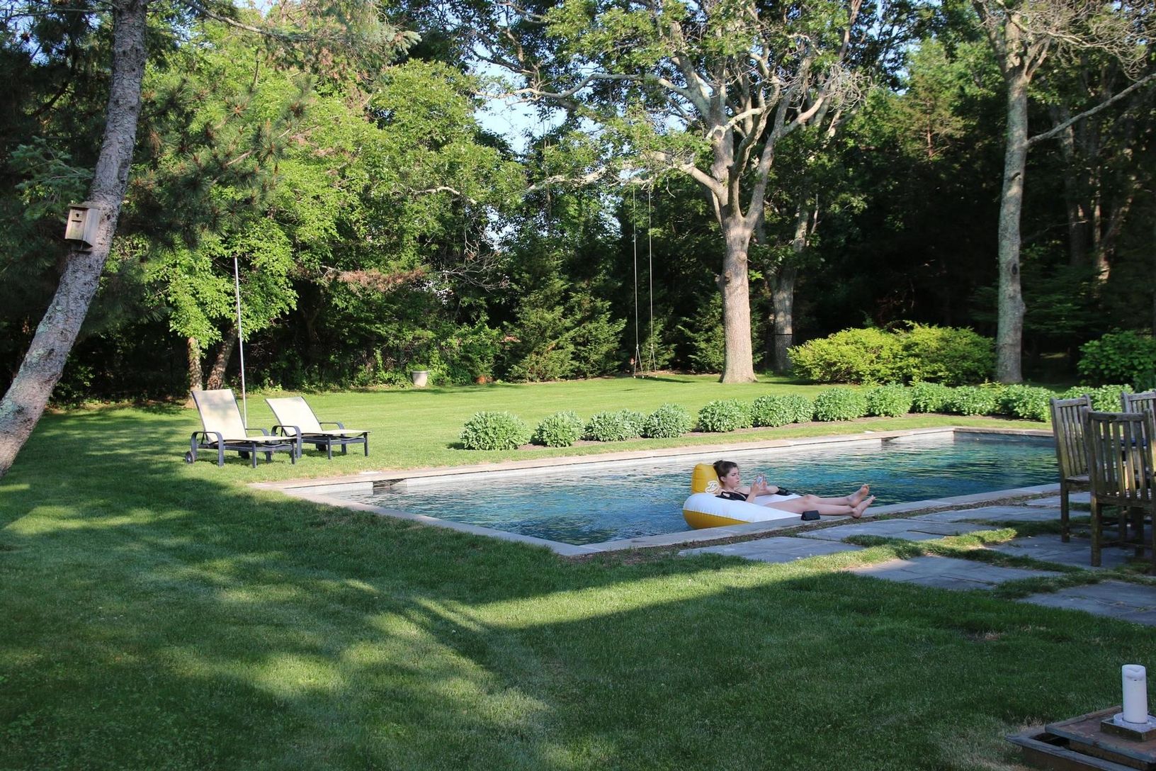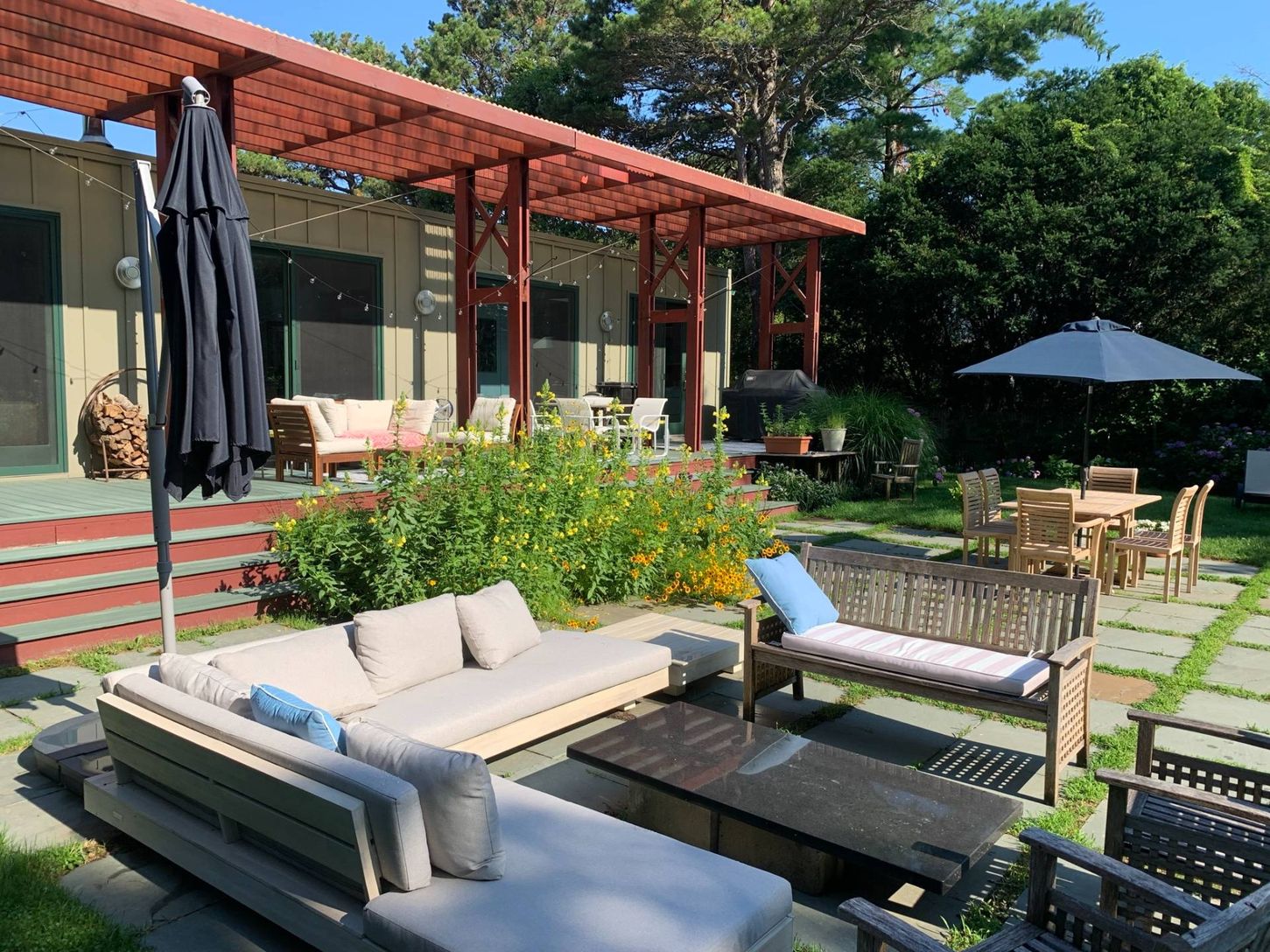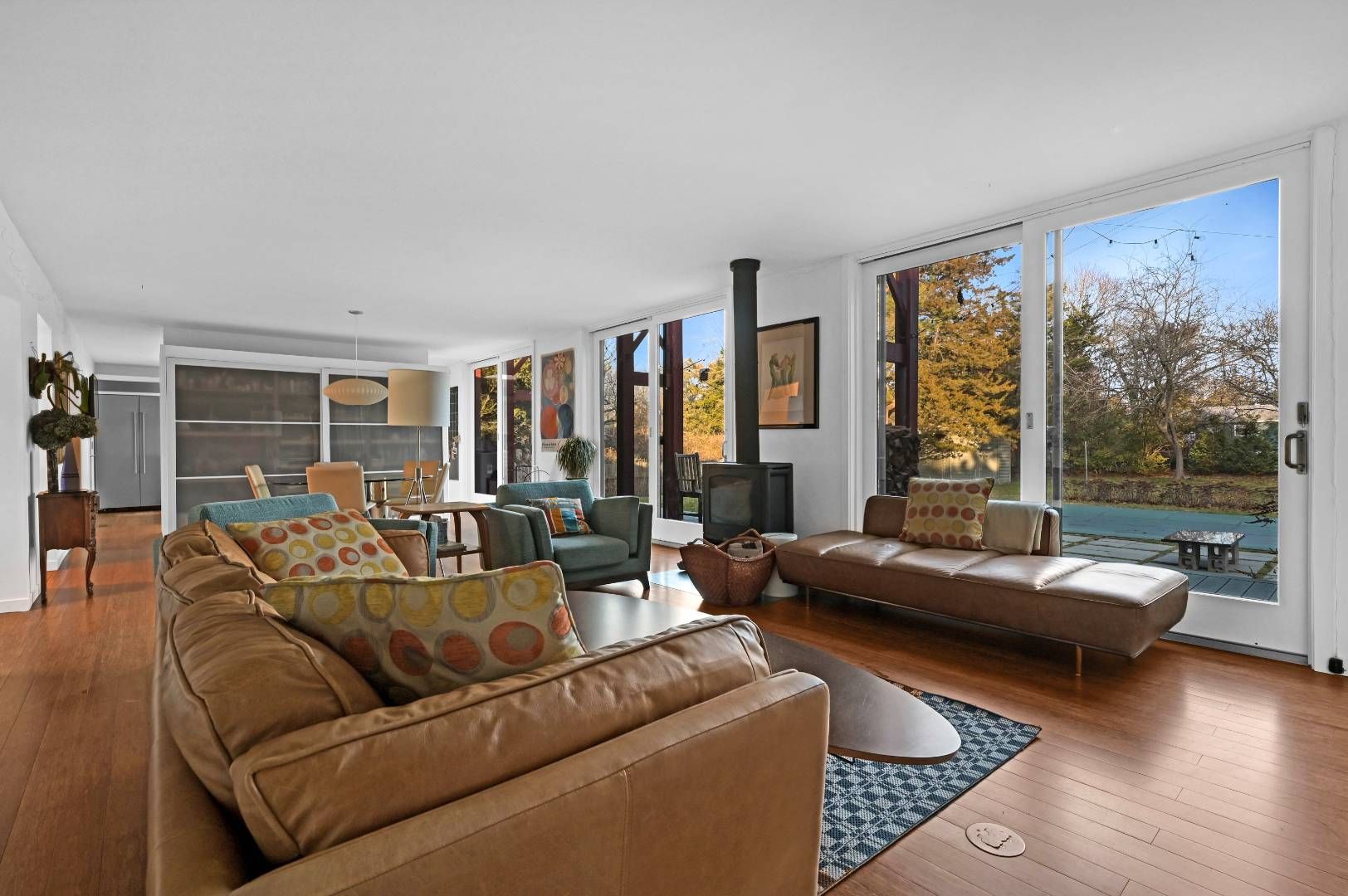 This 4-bedroom Sag Harbor cool contemporary is perfectly located with water access down the street, under 1 mile to Long Beach, and a few short minutes to Sag Harbor Village. Enjoy the light-filled open floor plan with modern furnishings, which includes a sleek cook's kitchen, dining and living areas made for relaxing, new spa like bathrooms, a double office and reading library, all with oversized windows looking out to the beautiful backyard.