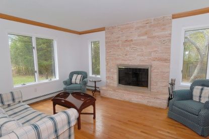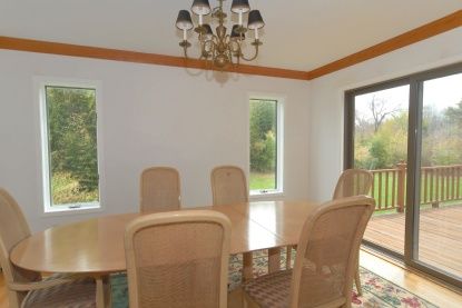 This three-bedroom, two and 1-half bath Contemporary is immediately distinguished by the abundance of natural light it lets in. The living room's cathedral ceiling, skylights and picture windows allow for ample sun all year long. The dining room and den with fireplace sit on either side of the kitchen, which boasts granite countertops, cherry cabinetry, a walk-in pantry, laundry area, dining nook and outdoor deck. The second floor master suite