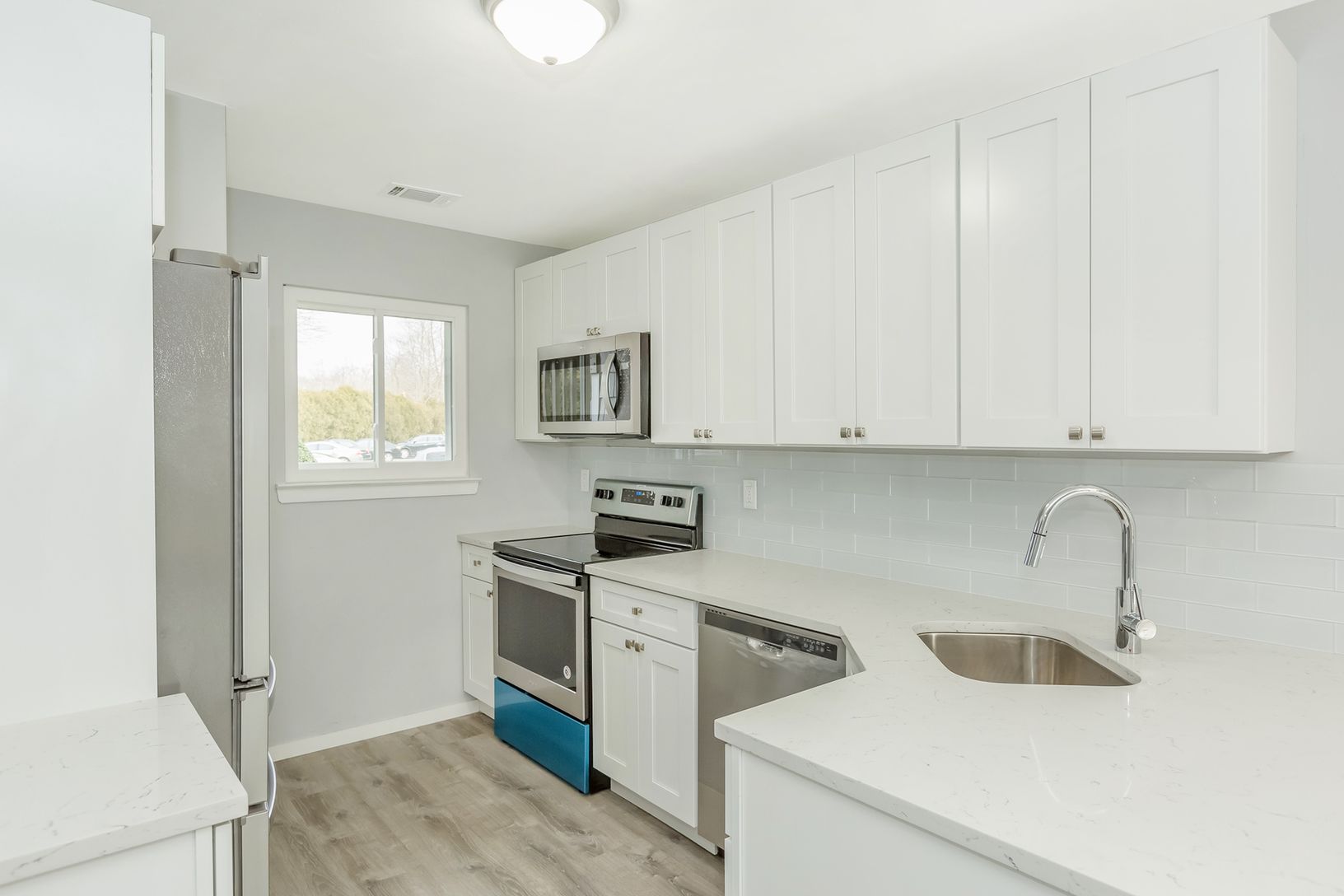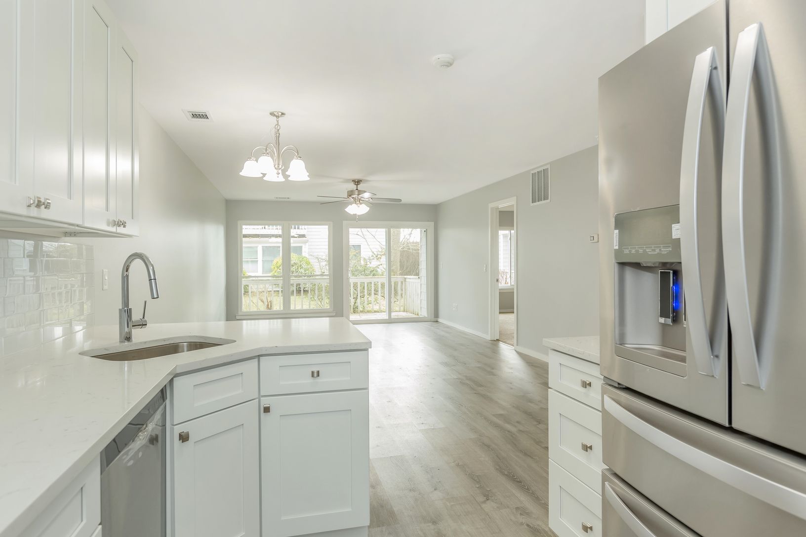 Newly renovated condo; open kitchen, dining room and living room. The condo has quartz countertops, new stainless steel appliances, and all new windows. Two bedrooms and two full baths. Light and airy living space all on the first floor; ground level.