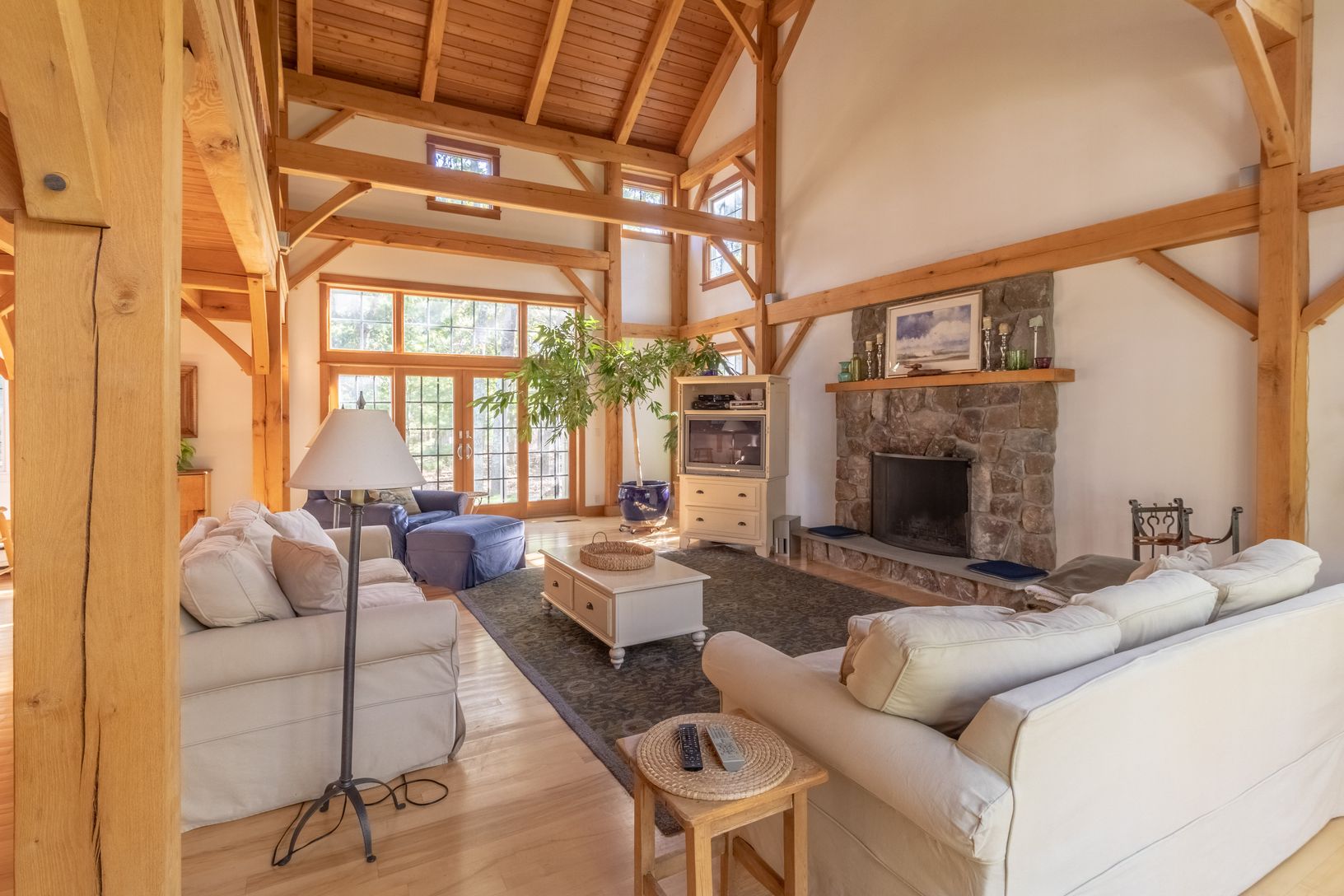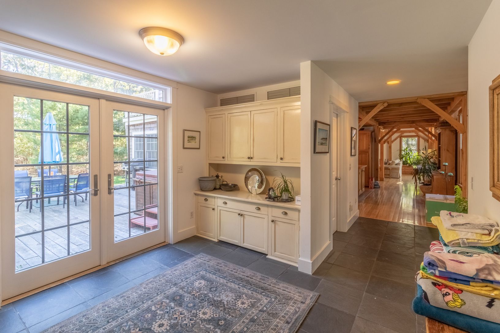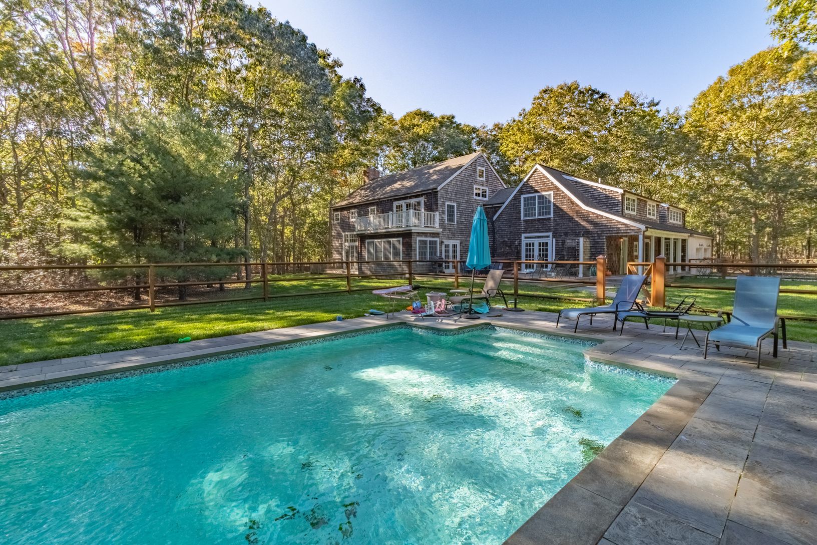 This light and bright family home of 4300 sq. ft. sits on nearly 3 acres of land and was designed by Architect James Merrill of Sag Harbor. It's a unique combination of oak post and beam and contemporary spaces.