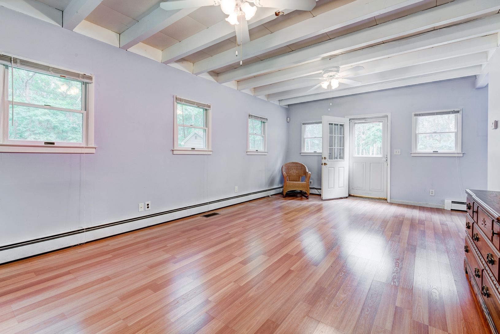 This 3 bedroom, 2 full bath ranch located in Sagaponack Village is situated on shy 2/3 of an acre (fully cleared) w/ ability for big expansion and pool or start from scratch. House comprises approx. 1,740sq.ft with an open floor plan, one car garage and full basement. Backs up to greenbelt reserve. Less than 2 miles to famed Sagaponack beaches, across the street from Poxabogue Golf Course and very convenient to East Hampton, Bridgehampton and