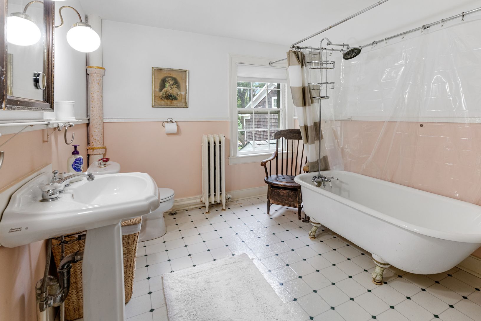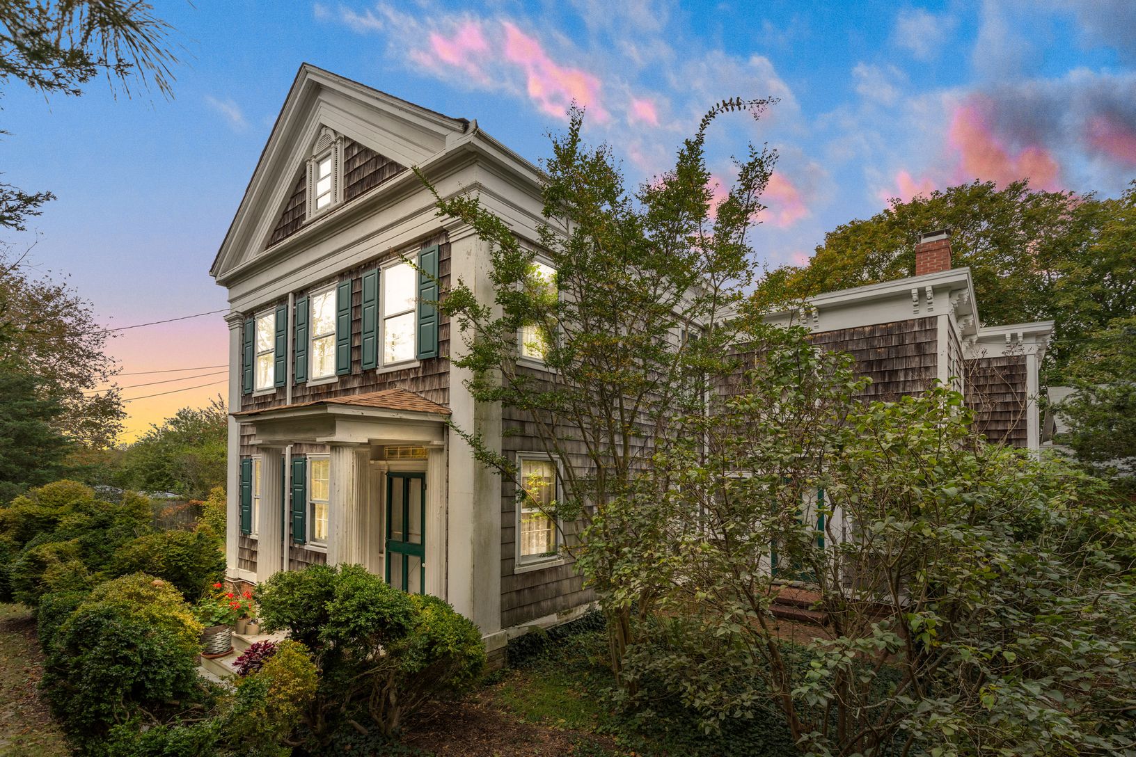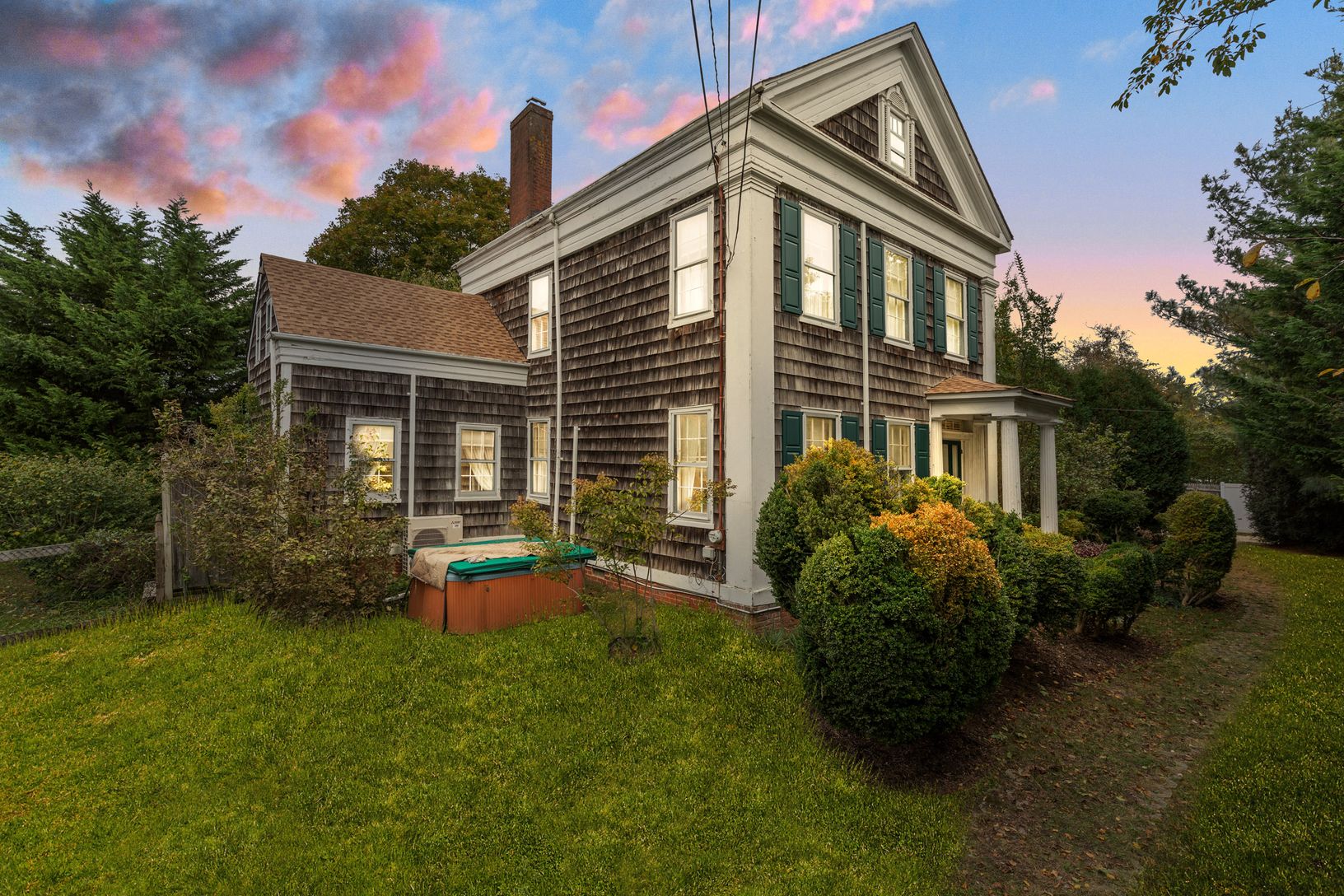Historic 1840 Greek Revival Halsey Family House in Bridgehampton Village. Antiques throughout. An acre of lawns/gardens, private/gated, with two kitchens, two laundry rooms. Chef's kitchen. All amenities, tennis court, heated pool, and hot tub. Can also make the Tennis Court into a Pickle Ball Court.