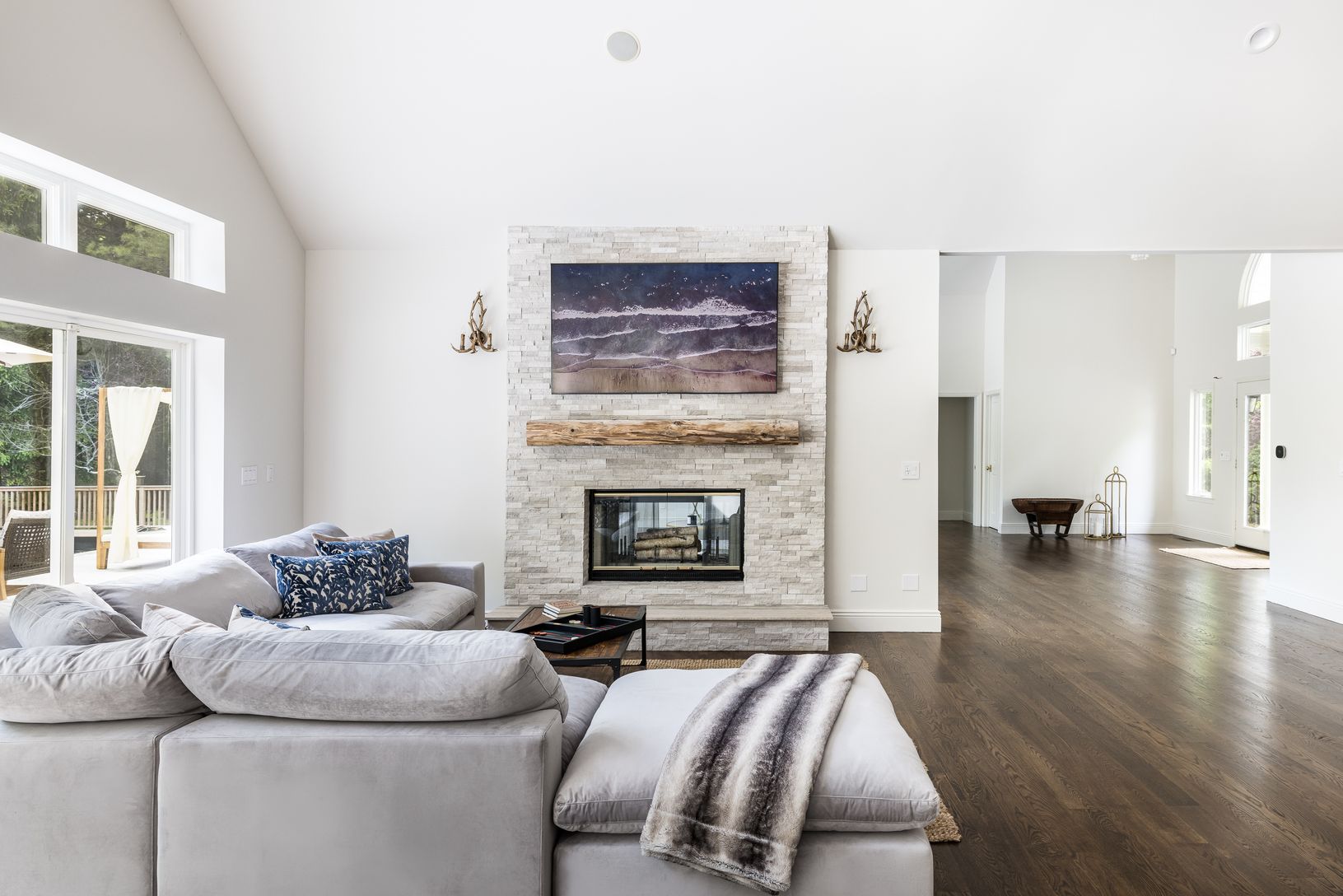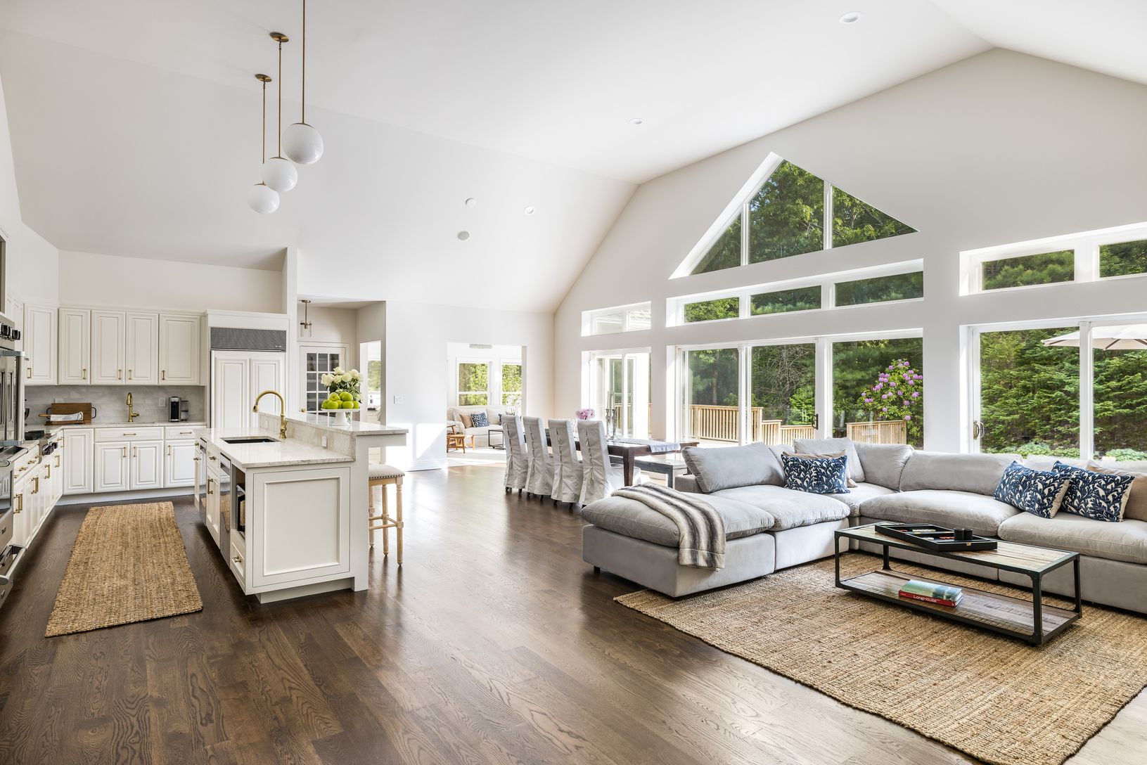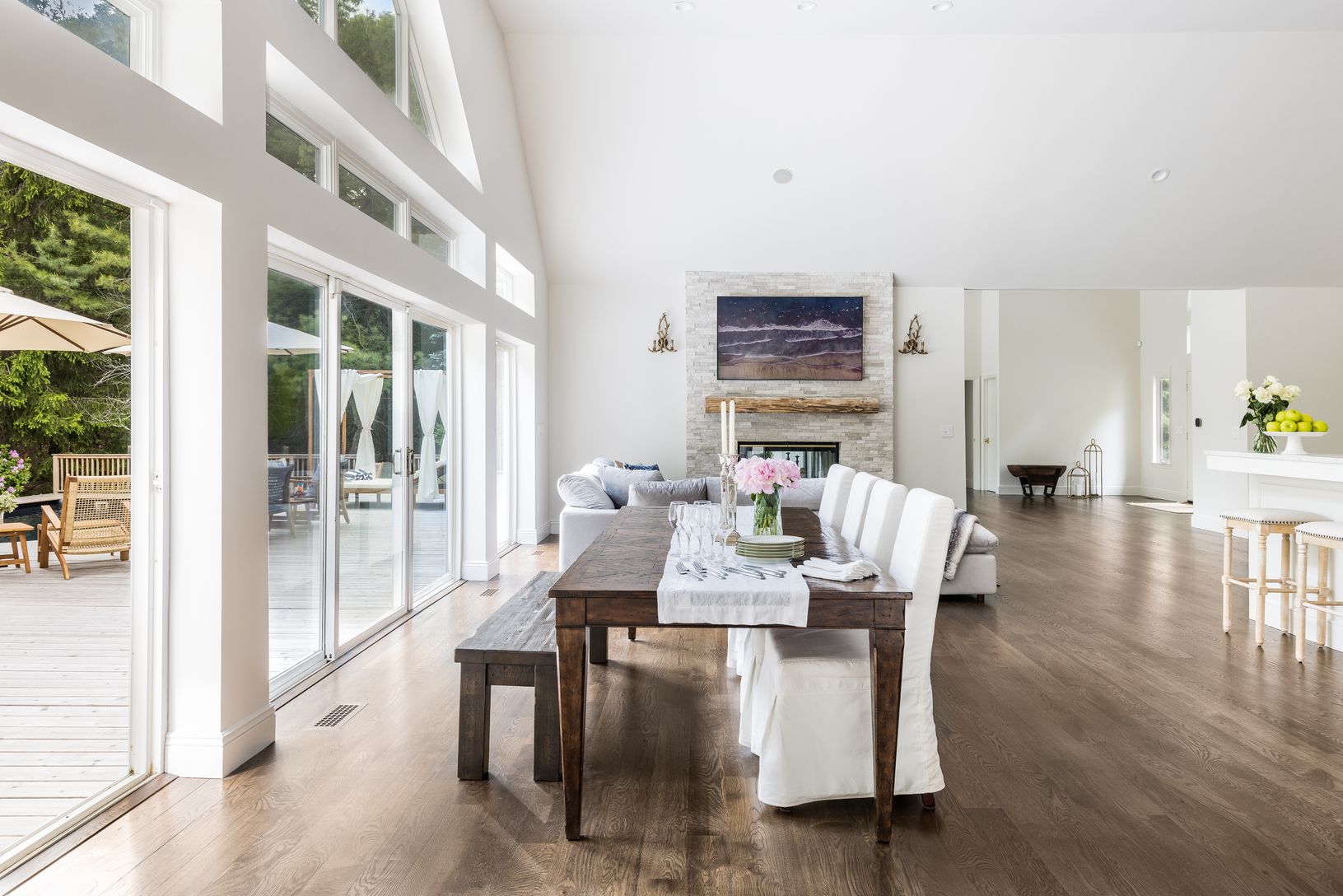 Hidden down a picturesque drive lined with majestic pines, you'll find a splendid custom-built home situated on a private 4-acre estate in the sought-after East Hampton area. This 6,500 (including lower level) square foot residence has recently undergone a comprehensive renovation, from the interior details to the mechanical systems, creating a luxurious oasis for your enjoyment. As you enter, you'll be greeted by a grand foyer with a vaulted