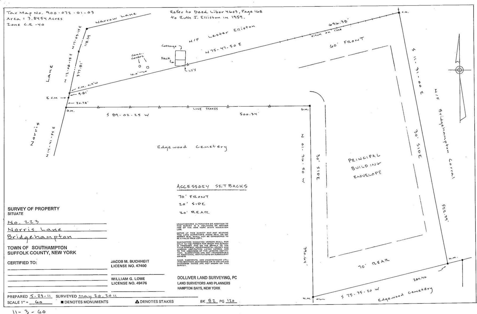 Bridge North- Rare Opportunity, approx. 3.4 +/- in Heart of Village. Flexible building alternatives for large house, pool and court. Building envelope setback more than 500ft from Norris Lane.