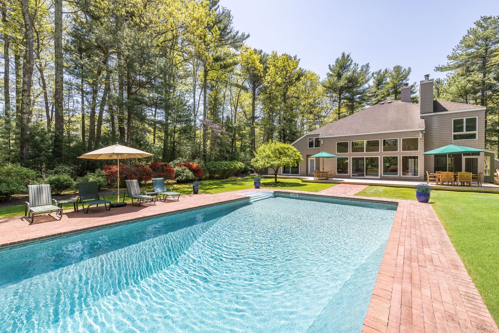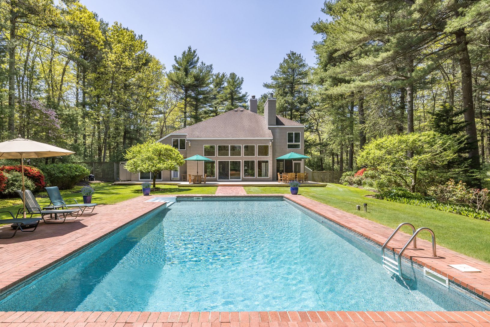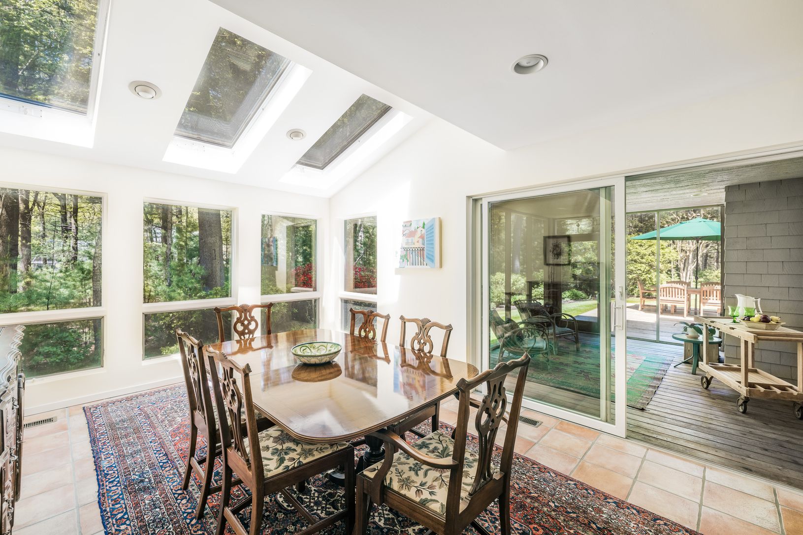 Down a long winding driveway and sited on nearly two meticulously landscaped acres lies this pristine contemporary home. Offering 4 bedrooms and 3.5 bathrooms, the home is flooded with natural light and showcases soaring ceilings and an open concept living space. The spacious kitchen showcases Sub-Zero, Thermador, and Bosch appliances, and opens to the sun lit dining space with glass sliders to the screened in porch. The ensuite junior primary