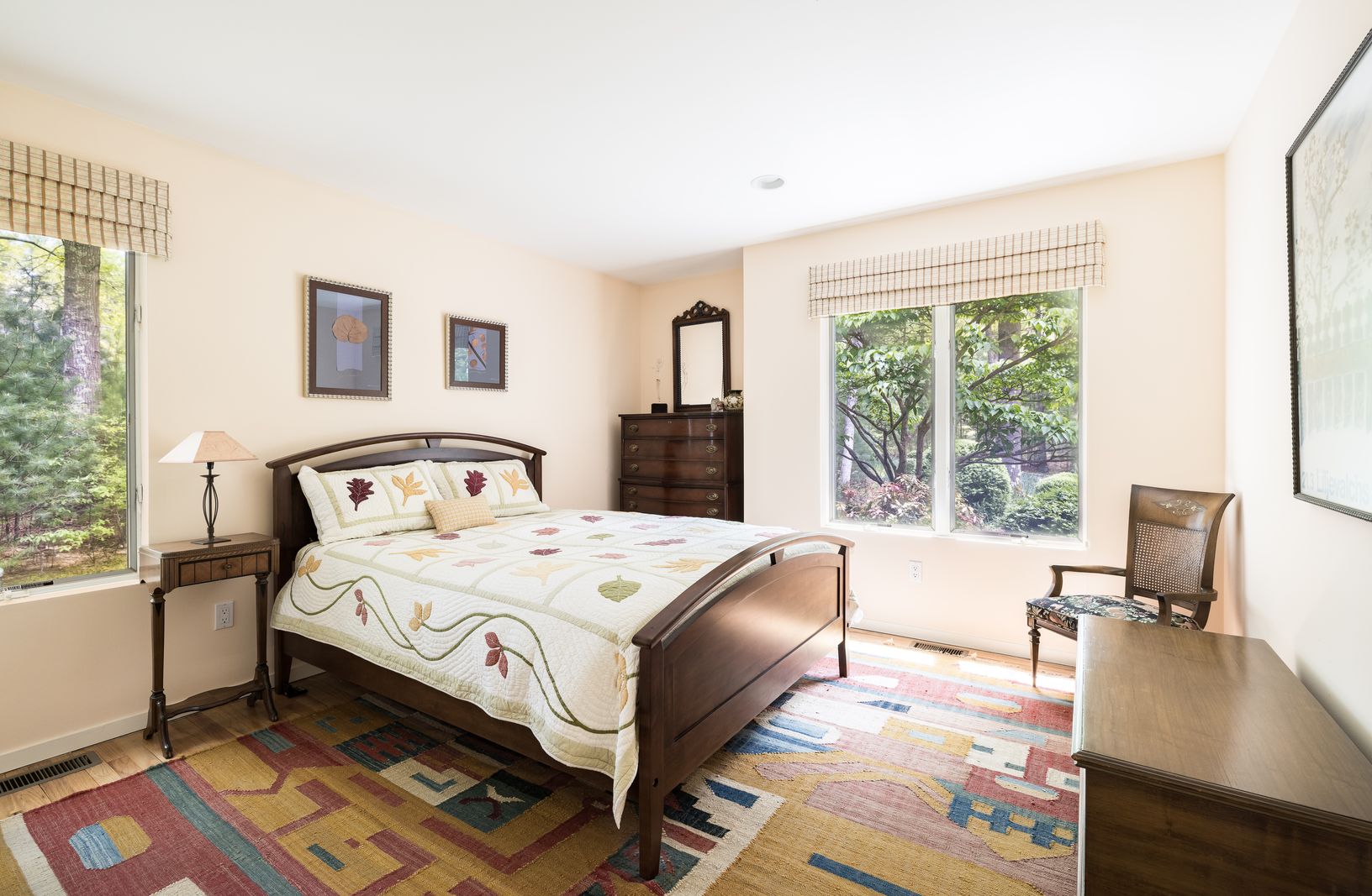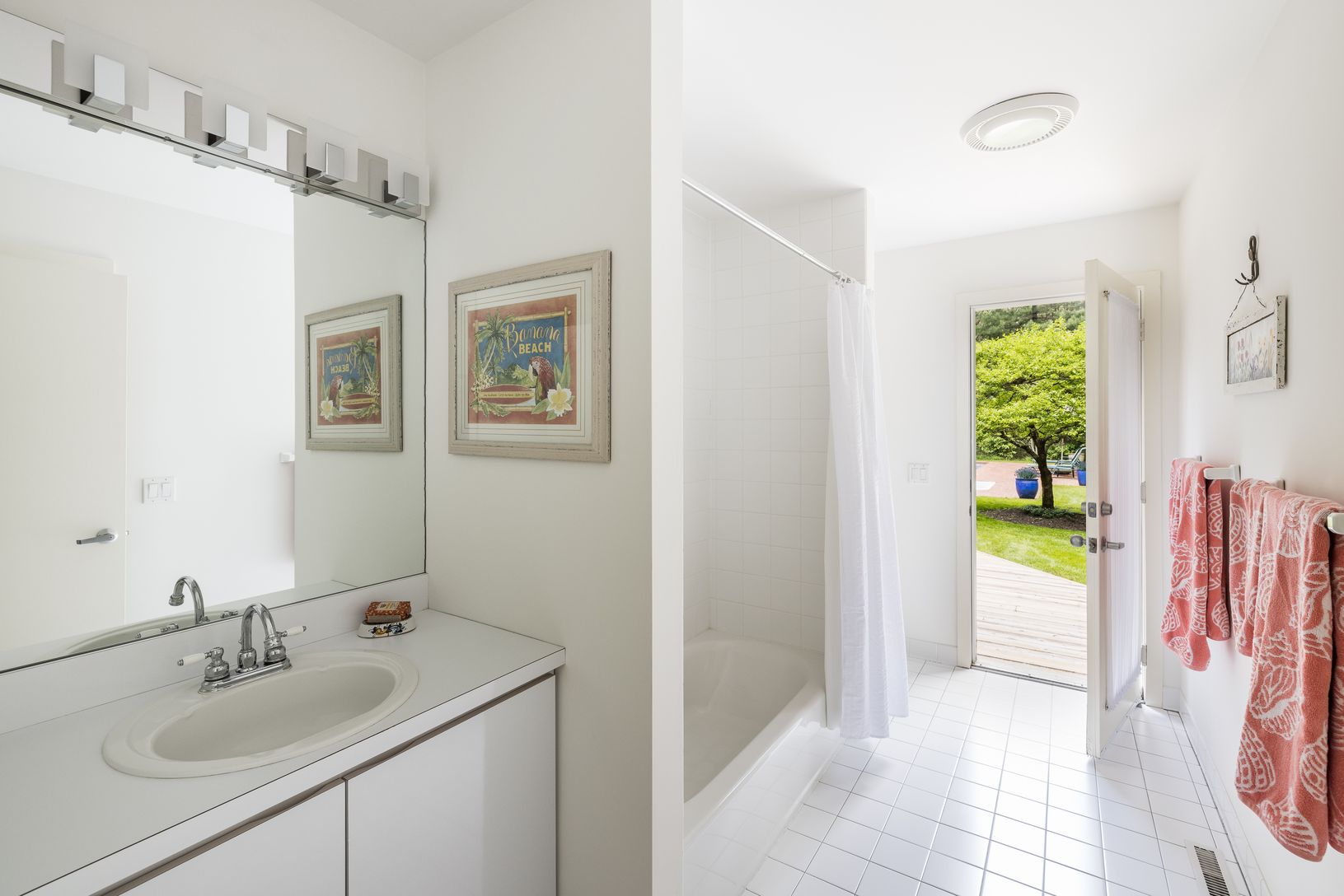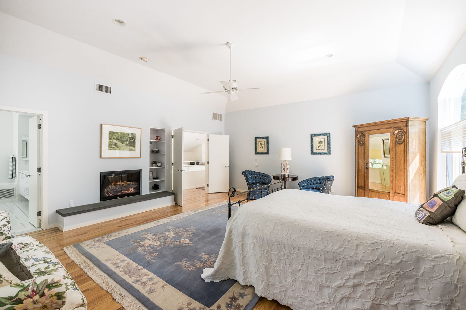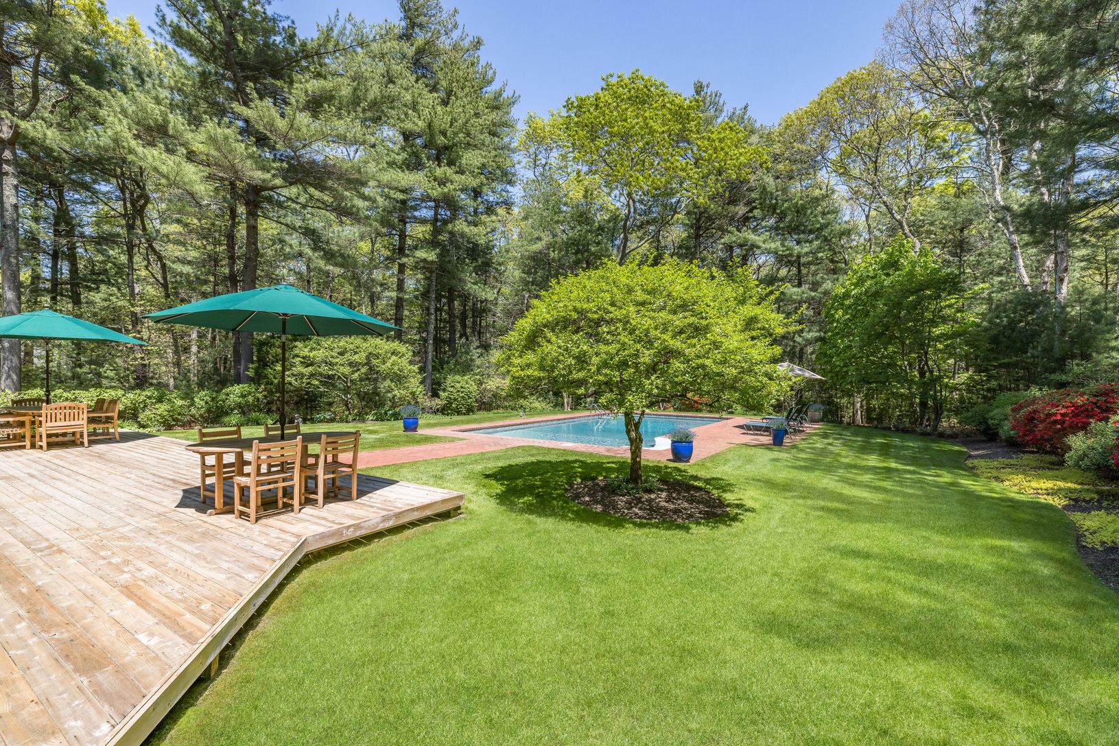 Down a long winding driveway and sited on nearly two meticulously landscaped acres lies this pristine contemporary home. Offering 4 bedrooms and 3.5 bathrooms, the home is flooded with natural light and showcases soaring ceilings and an open concept living space. The spacious kitchen showcases Sub-Zero, Thermador, and Bosch appliances, and opens to the sun lit dining space with glass sliders to the screened in porch. The ensuite junior primary