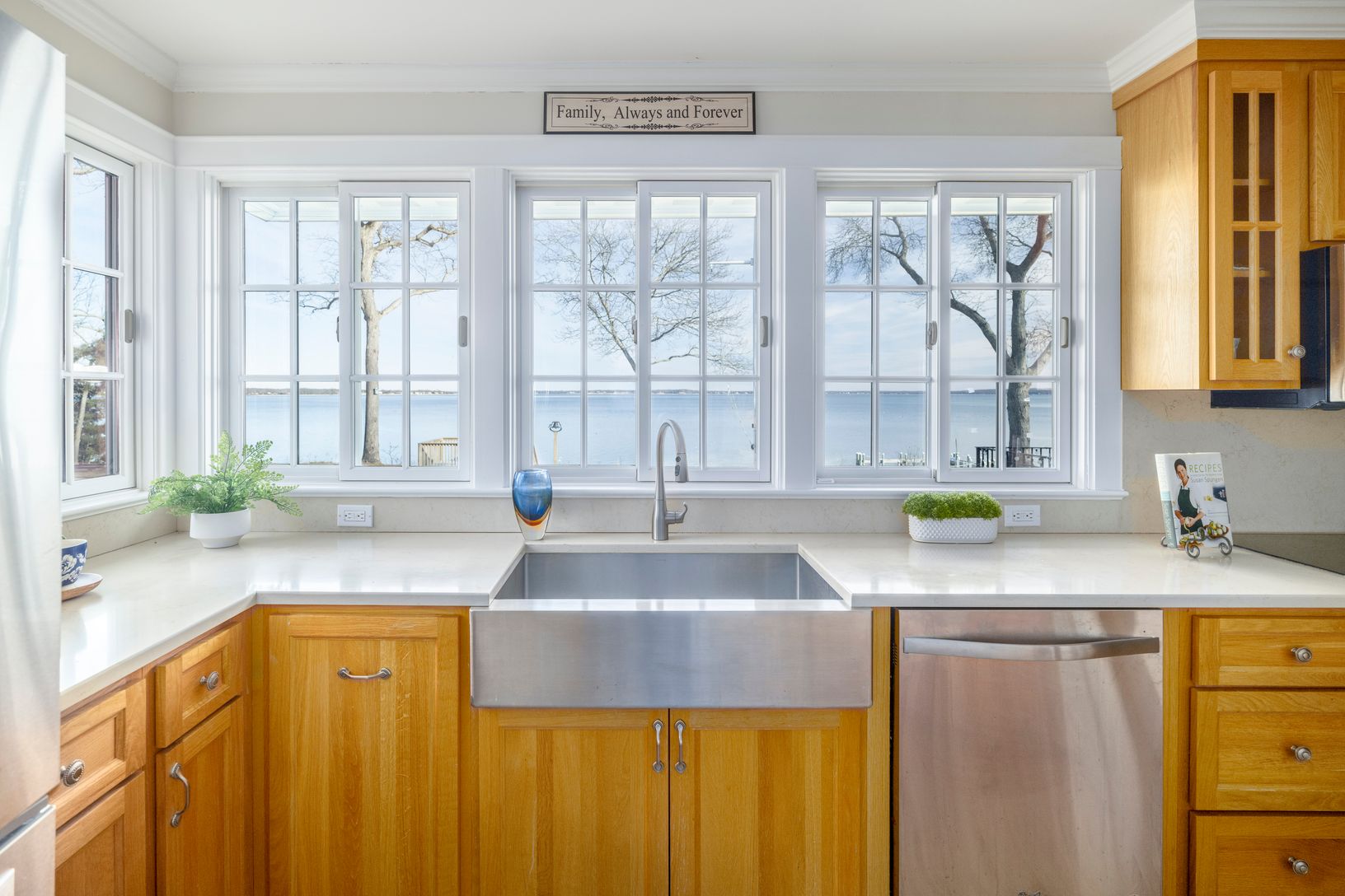 Welcome to 2240 Paradise Point Rd, Southold, a waterfront gem that seamlessly blends luxury and comfort in one of the most sought after waterfront neighborhoods of the North Fork on 3.7 acres. This charming, custom brick ranch offers an array of features designed to enhance your living experience. The home is situated perfectly overlooking it’s own private, sandy beach, cocktail platform at the water’s edge and boasts three bedrooms, each with