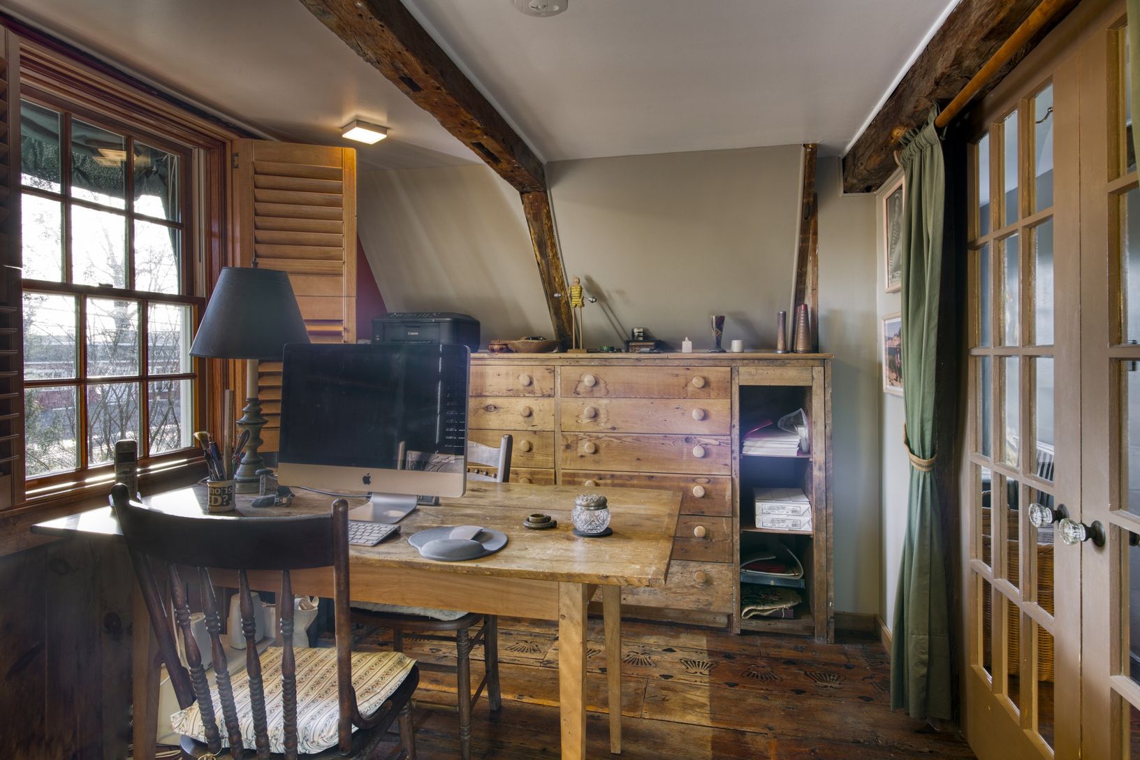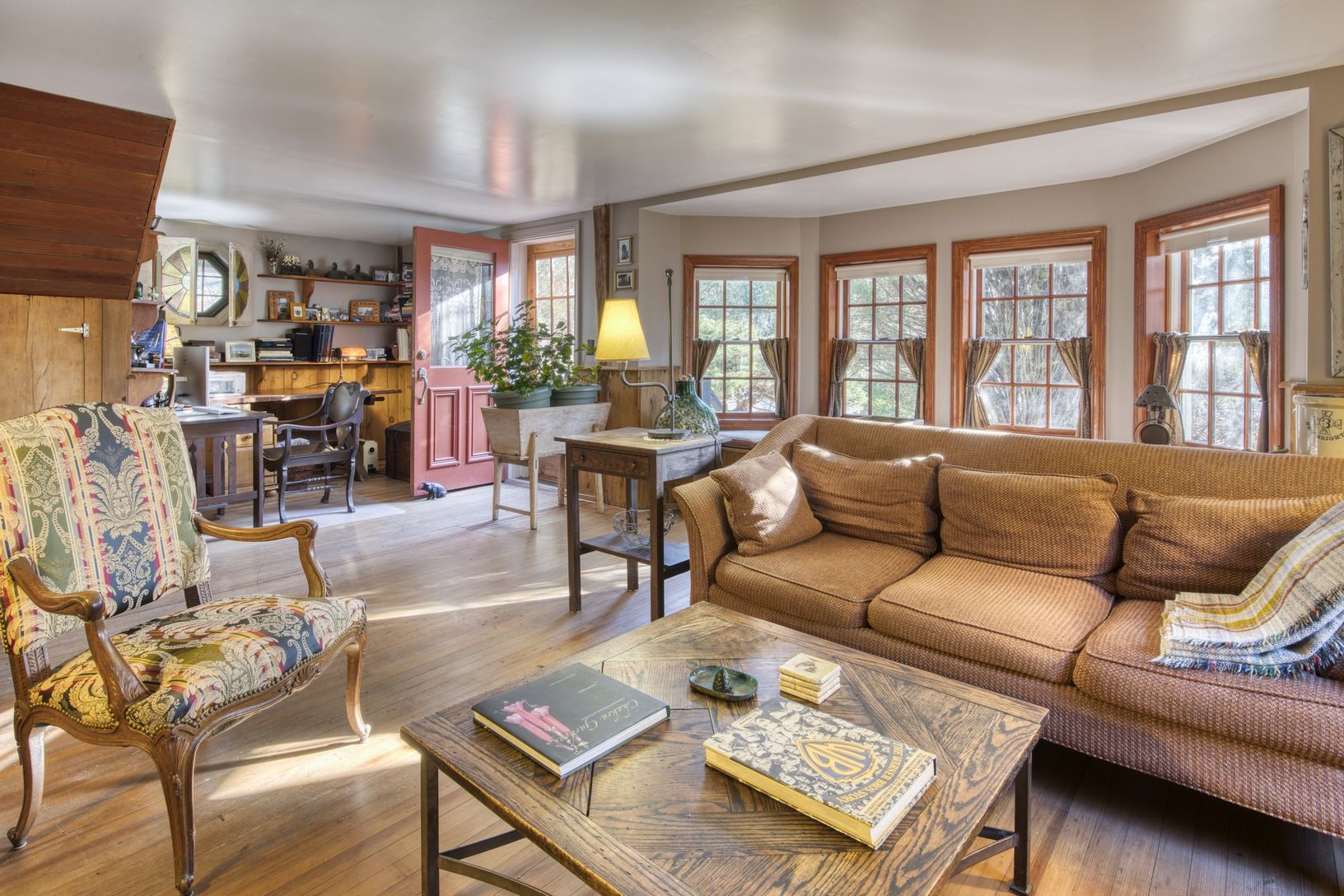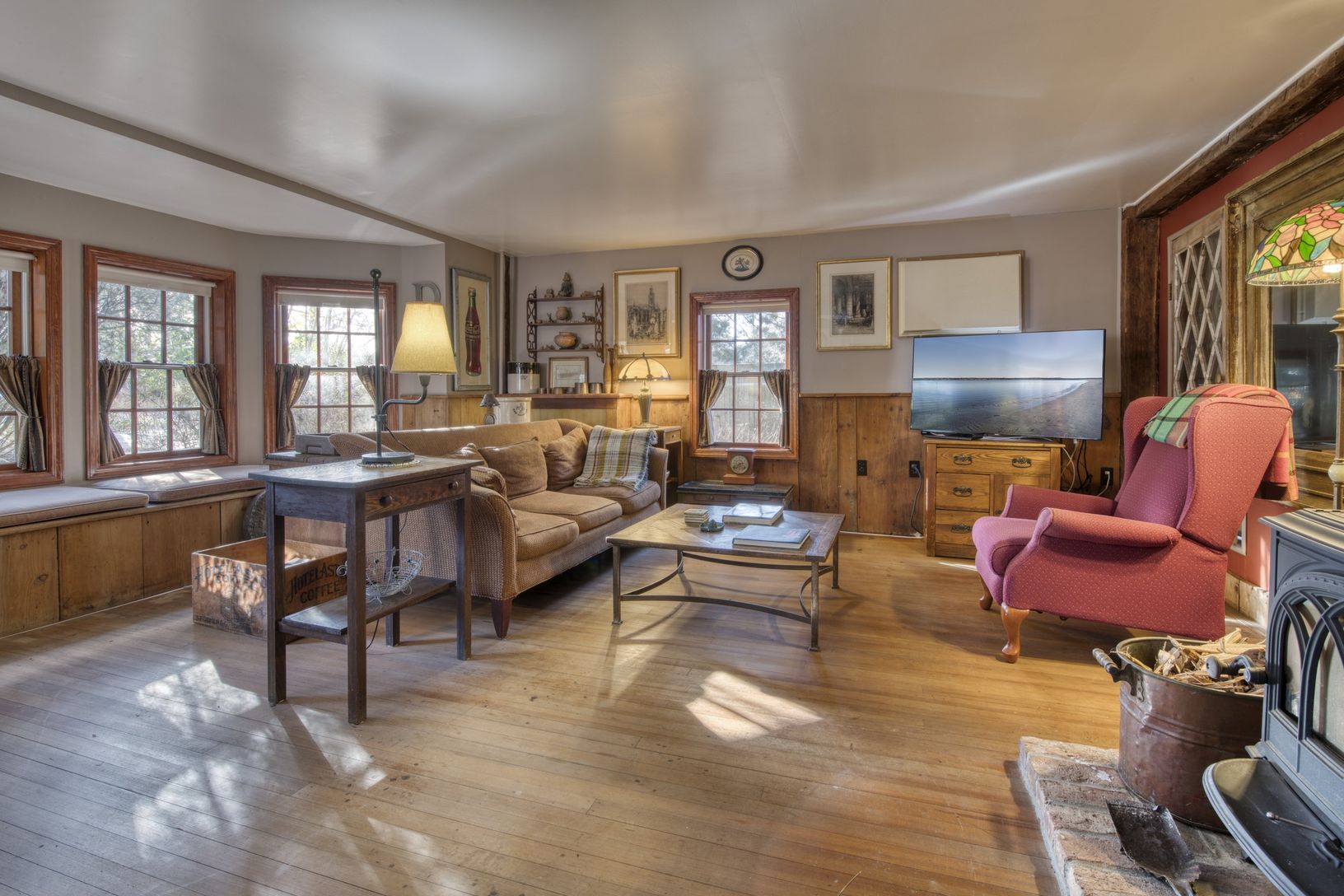 Architecturally unique, gambrel roof 18th century gem, the "Petty Homestead" has been beautifully restored and maintained with attention to every detail. Original hardwood floors, beadboard and doors, with many preserved architectural details that include 44 windows, wood burning stove, breakfast sunroom, screened porch, walk-in kitchen pantry, skylights, large gardener's shed with electric, and home office. Decades old, manicured gardens and