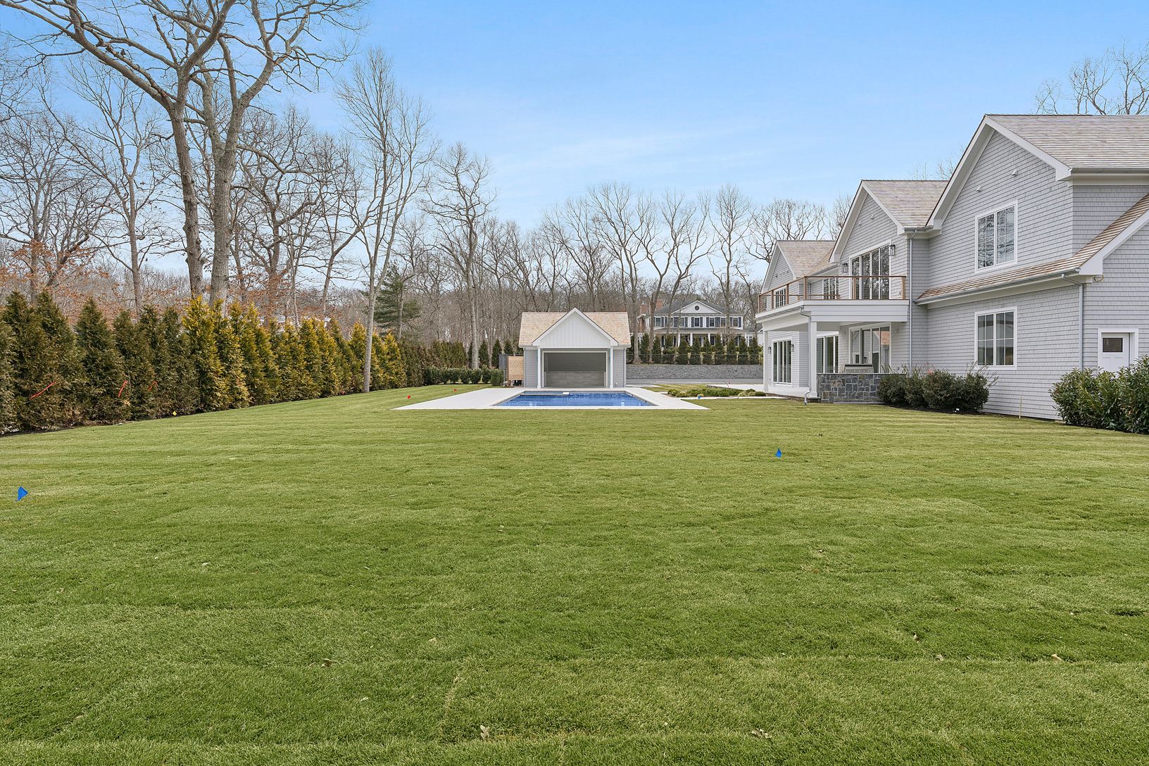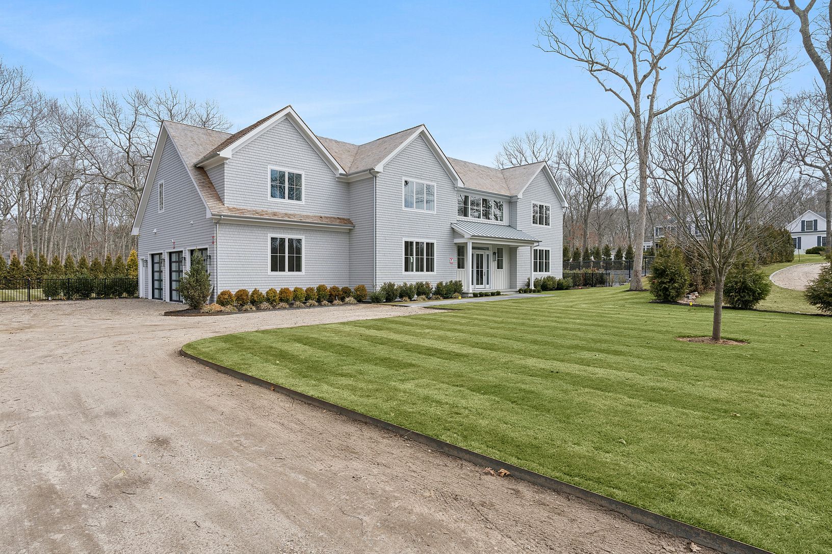 A long, private approach opens to a classic yet refined exterior, wrapped in cedar shingles and framed by manicured grounds. Inside, soaring ceilings and walls of