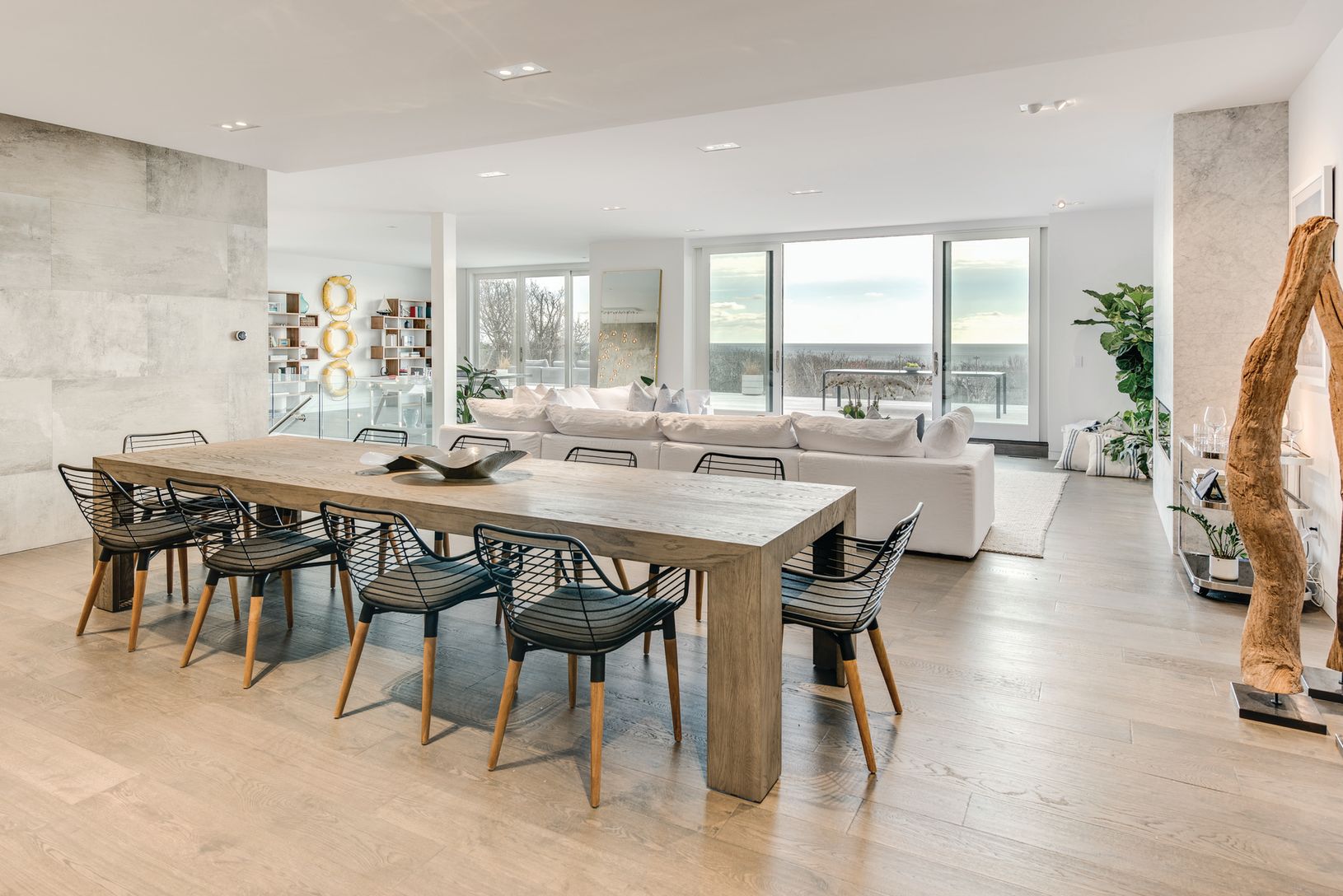 This stunning new modern offers panoramic ocean views from nearly every room. Perched privately atop a hill on a full acre and offering three levels of impeccably designed living space with walls of glass, the seamless floor plan has nearly 6,000 +/- sq. ft. of interior living space accompanied by over 4,000 +/- sq. ft. of outdoor lounge and living areas, including a 12' x 28' rooftop pool. Four en suite guest bedrooms, three with ocean views