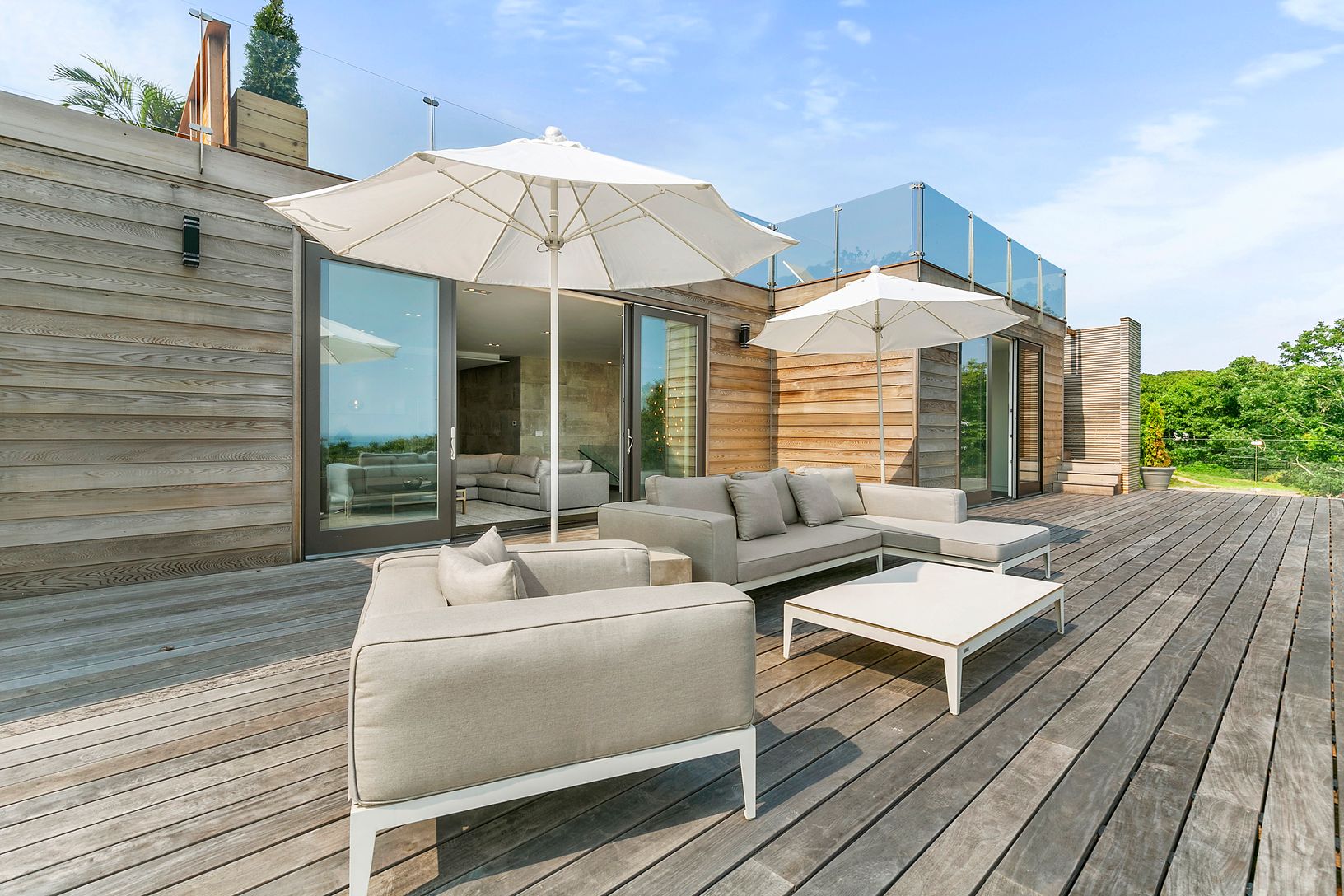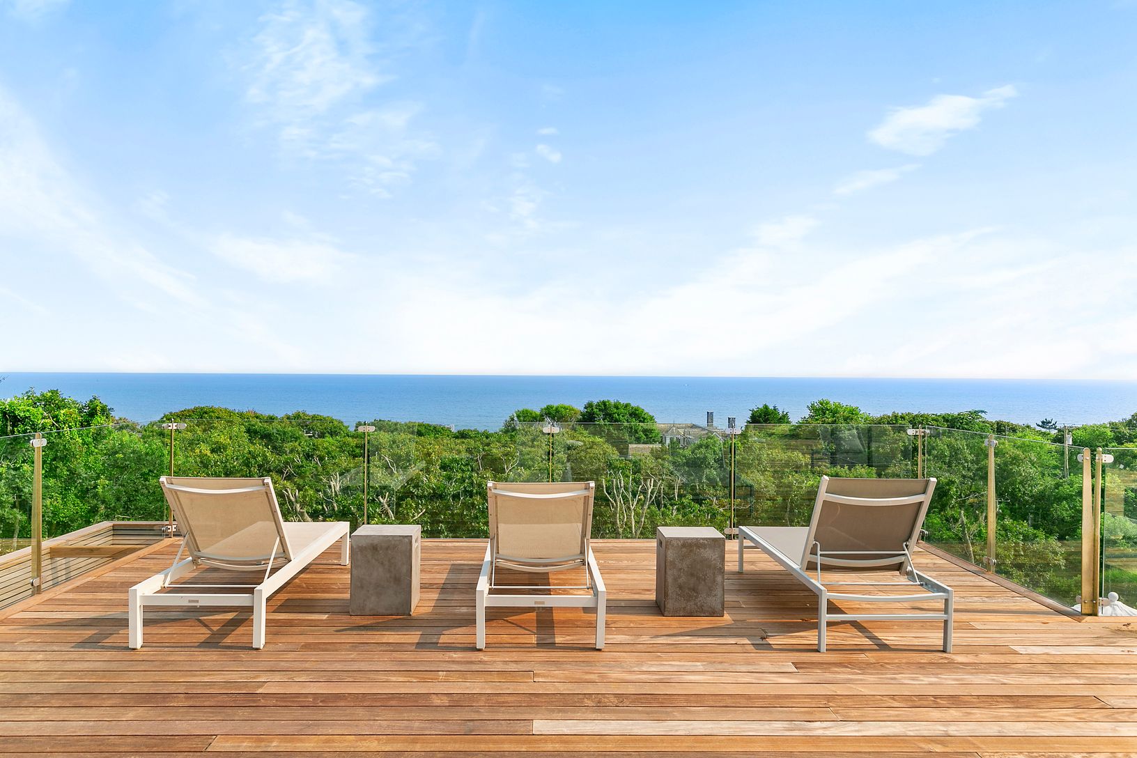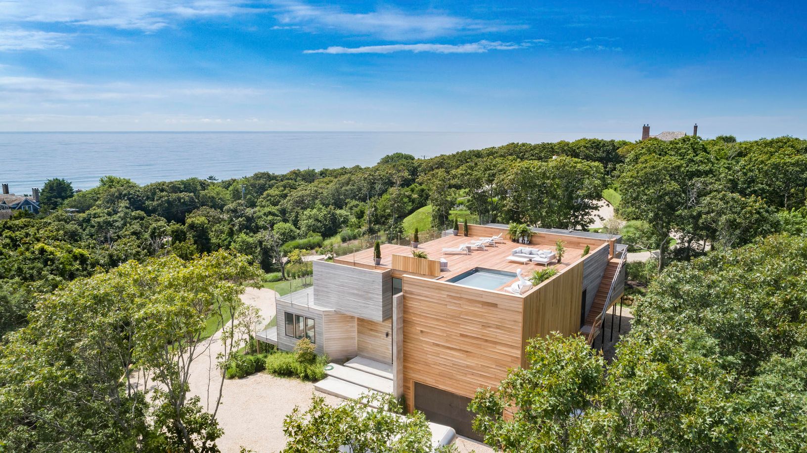 This new modern home set on top of a hill in Montauk boasts incredible ocean views form a rooftop pool.