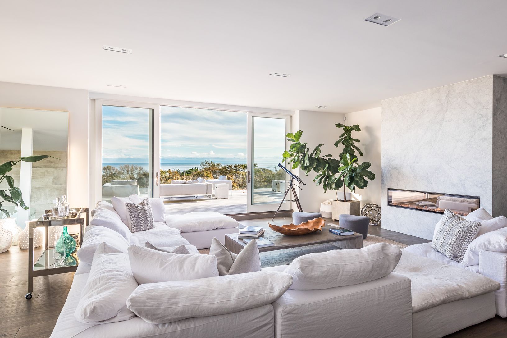 This stunning new modern residence offers phenomenal panoramic ocean views. Set on a high bluff on a full acre, the home includes 3 full levels of impeccably designed living space with walls of glass, open floor plan, and close to 6,000 square feet of interior living space accompanied by 4,000 square feet of outdoor lounge and living areas, including a including a 12' x 28' rooftop pool. The interior includes 3 gracious bedrooms with ocean vie