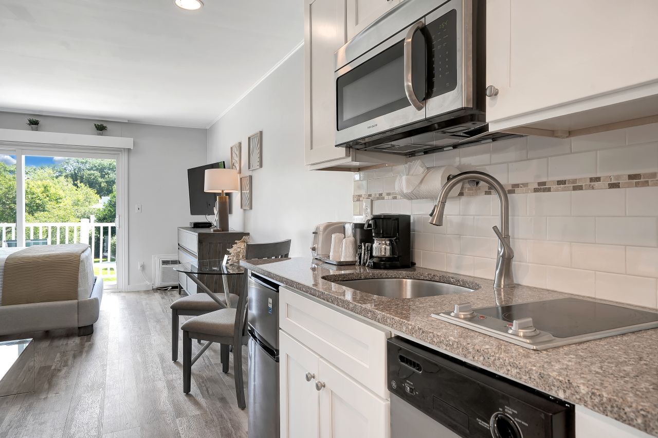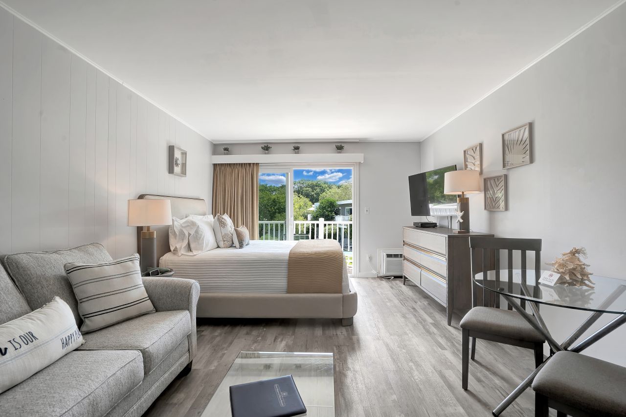 Every once in a while, this island of relaxation located just outside of East Hampton Village on Pantigo Road and a leisurely walk or bike ride to the Atlantic Ocean offers an apartment for re-sale. Open year round, this beautifully renovated "Studio Efficiency" unit includes full bath, kitchenette, living room and bedroom and semi-private sun deck overlooking beautifully manicured grounds. The property offers a brand new outdoor heated poo