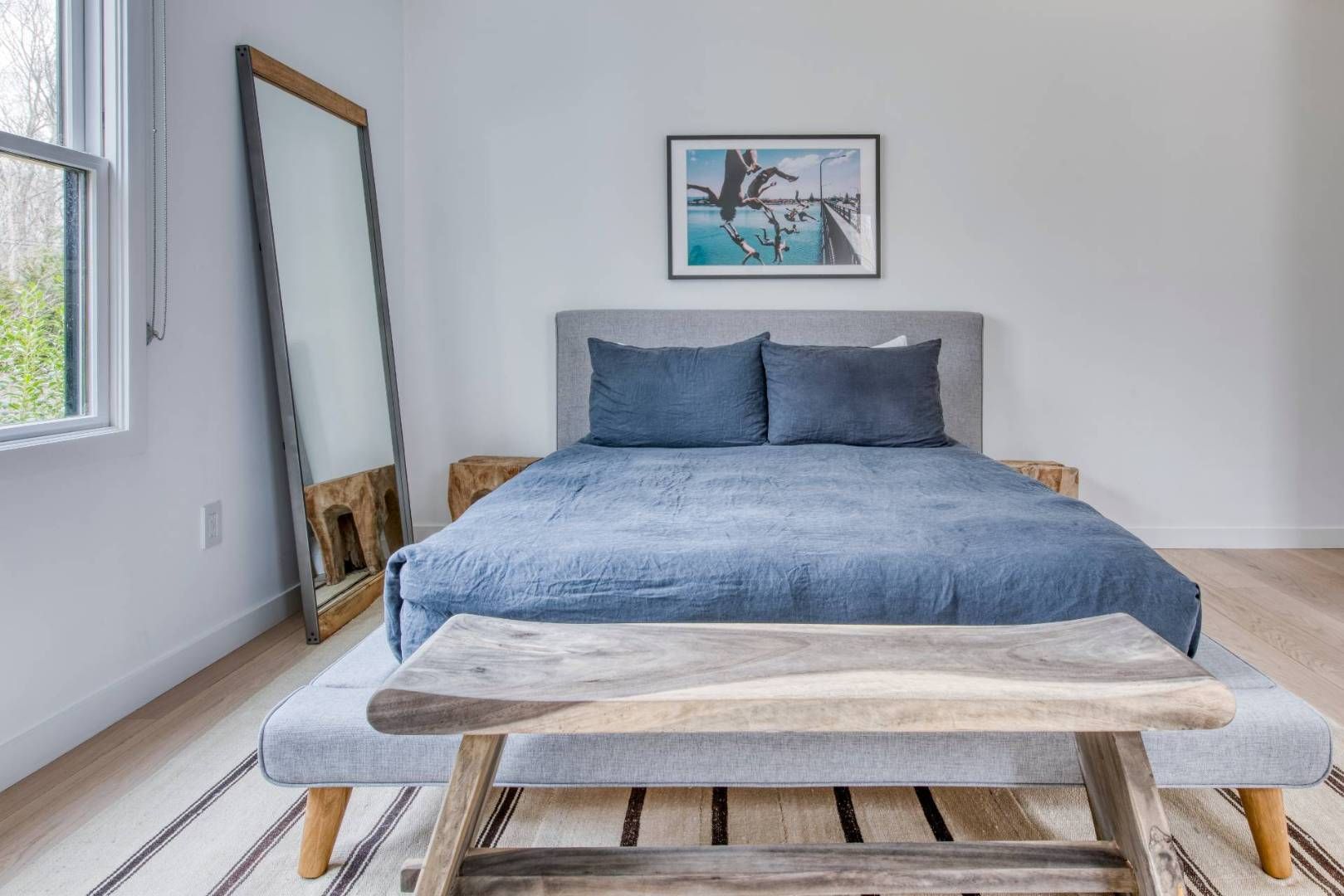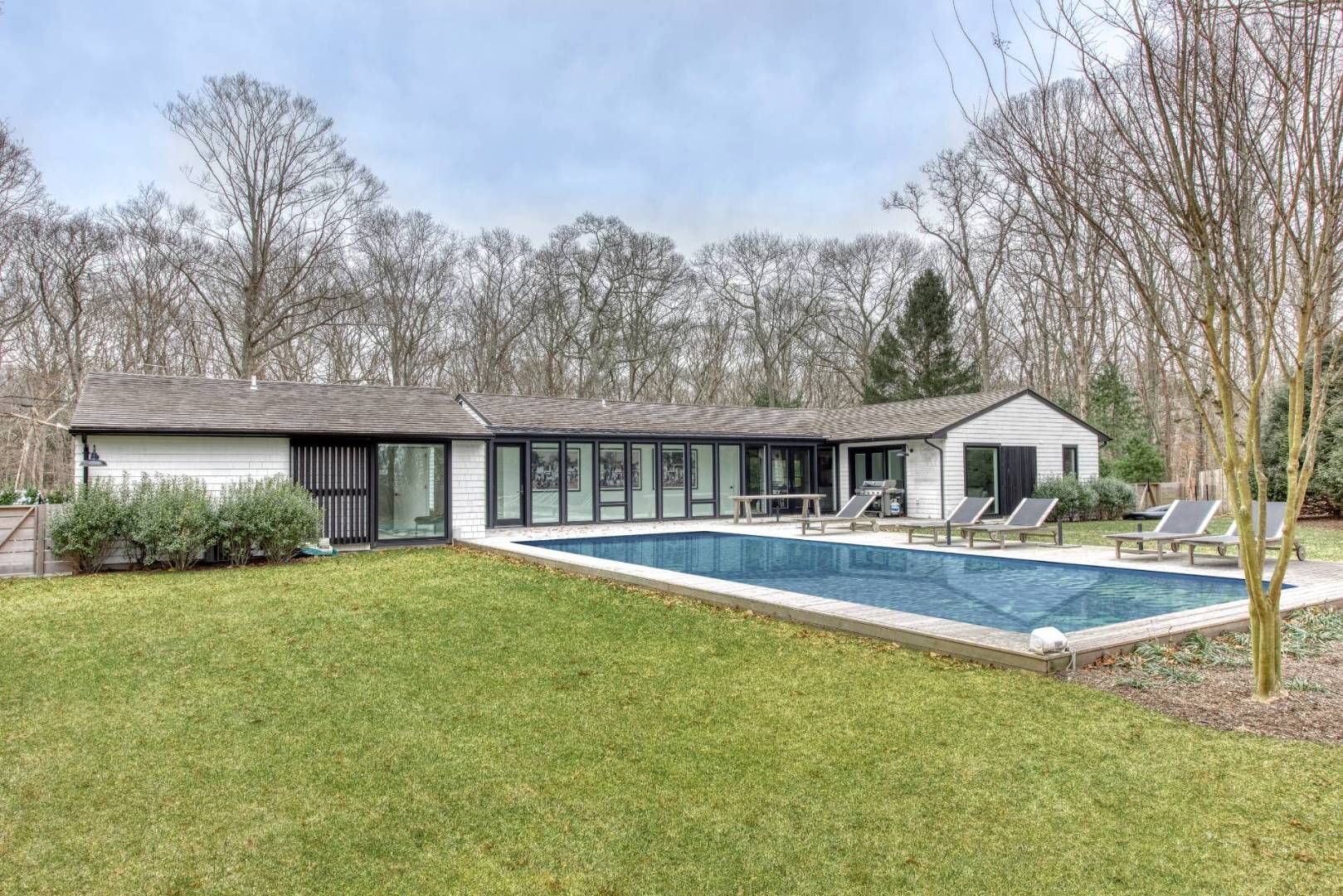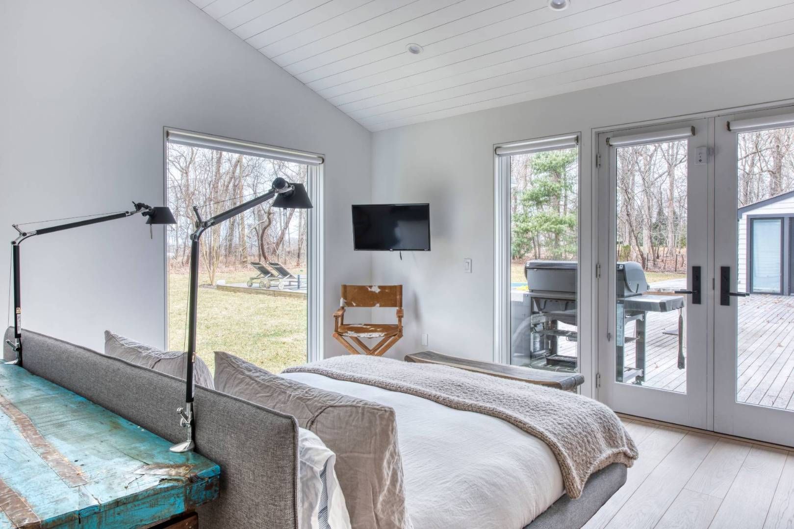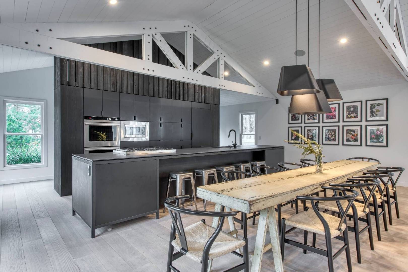 A complete renovation and rebuild has transformed this home into a sophisticated residence for 21st century living. Done in grays and white, with new 10" white oak flooring, light-filled open living areas with high cathedral ceilings flow among the living room with media wall, dining area and sleek eat-in kitchen with Caesarstone countertops and island with seating. Both the kitchen and entertainment unit are made of Custom Japanese Charred Ac